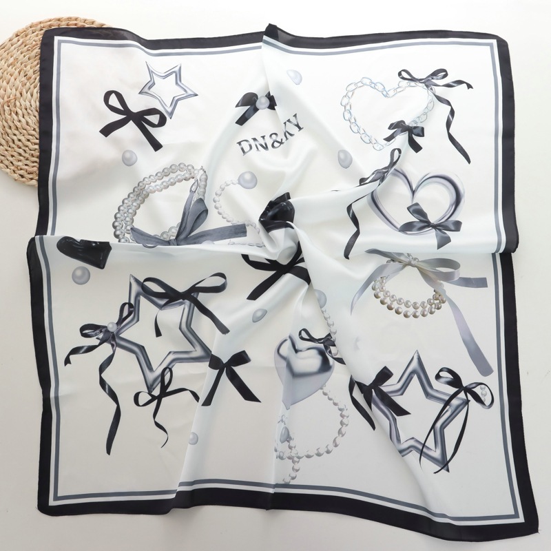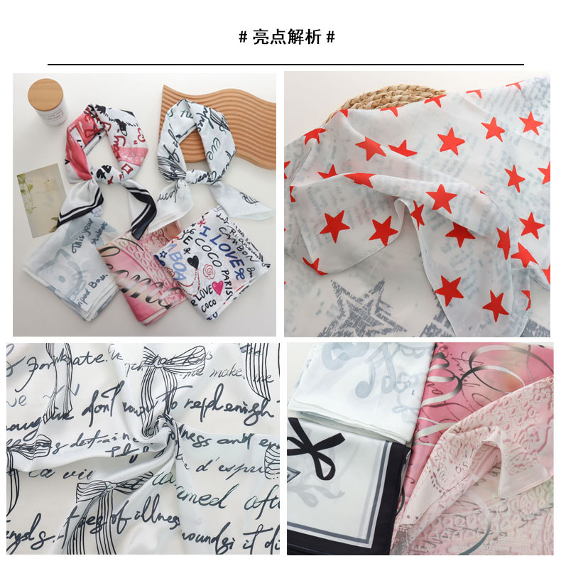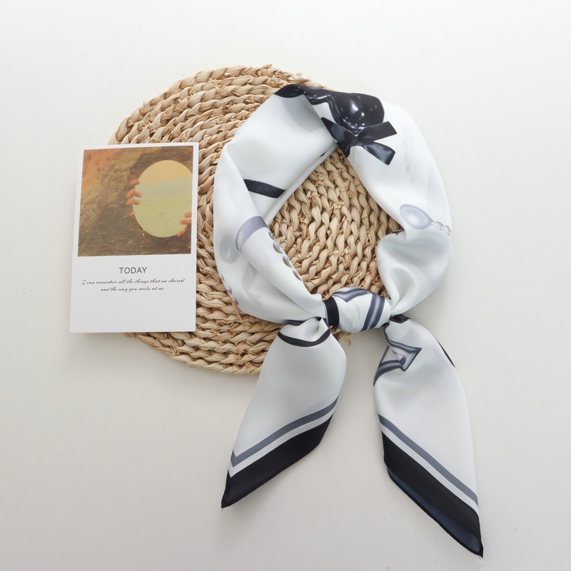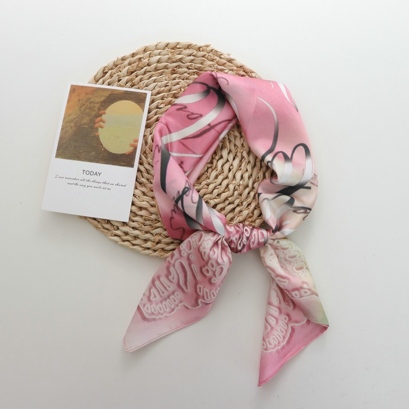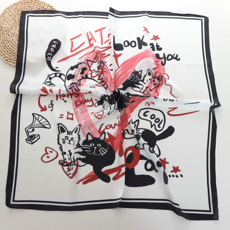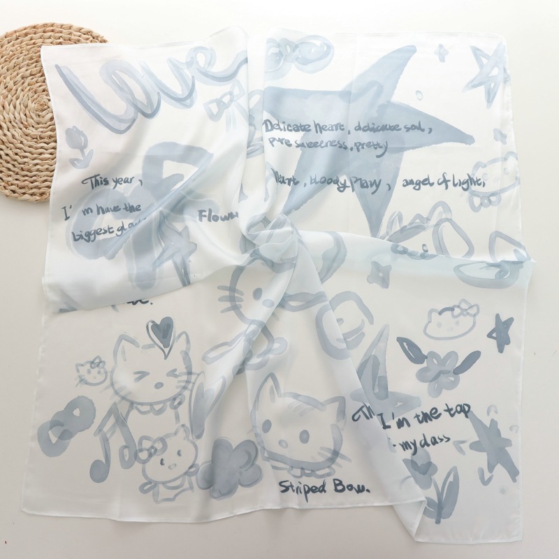 여성을위한 만화 컬러 낙서 스카프 2025 새로운 스타일 넥 타이 하이 엔드 스카프 얇은 튜브 탑 작은 사각형 스카프 장식 유행스토어 가기