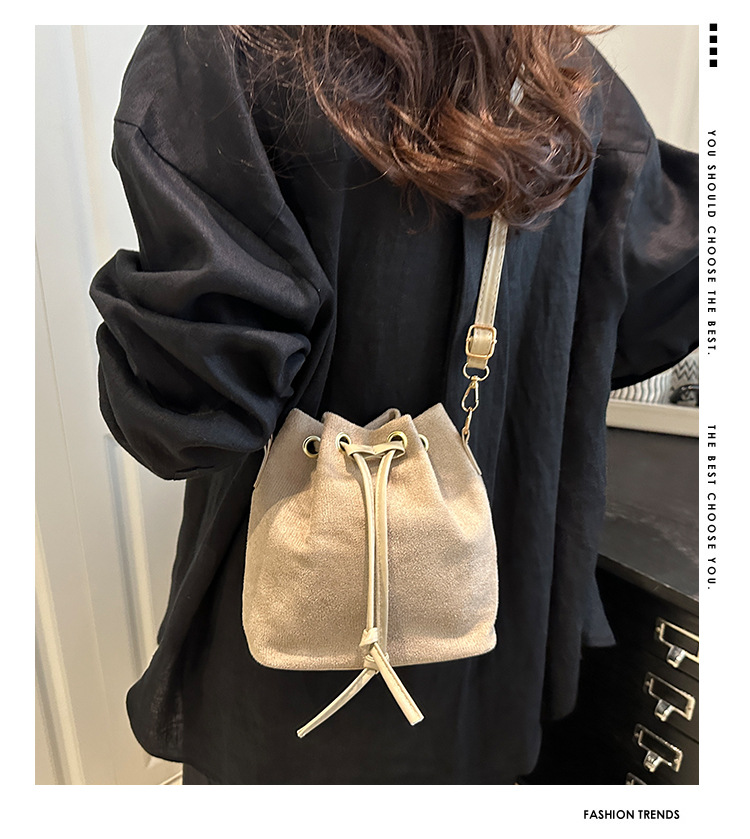 여성을위한 하이 엔드 드로스트링 가방 2025 새로운 패션 다목적 휴대용 어깨 가방 복고풍 통근 크로스 바디 버킷 백스토어 가기