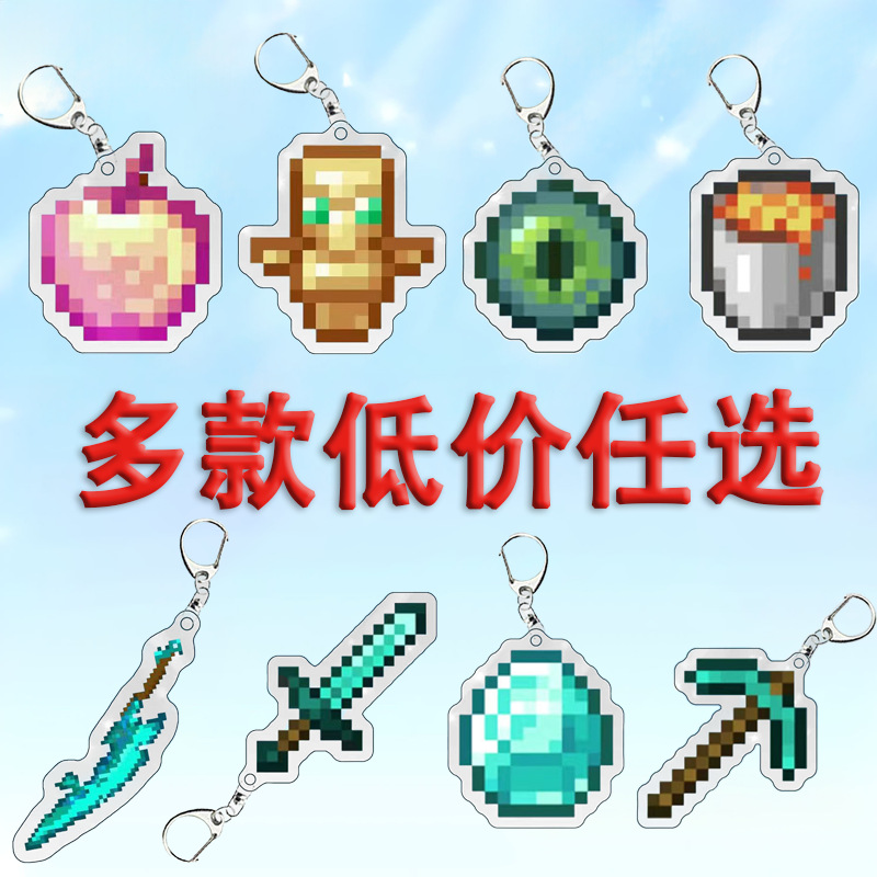 Minecraft 키체인 배낭 펜던트 게임 주변기기 다이아몬드 칼 장난감 Minecraft Enchanted Golden Apple스토어 가기