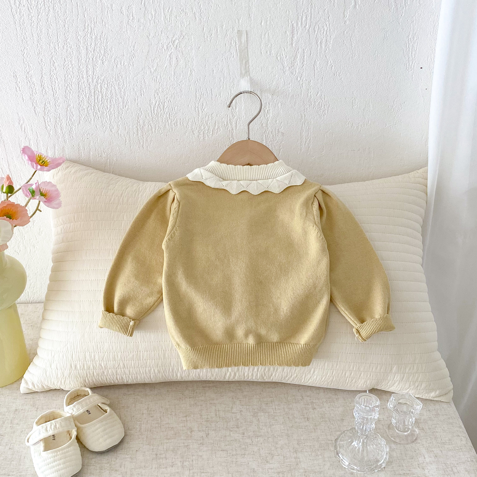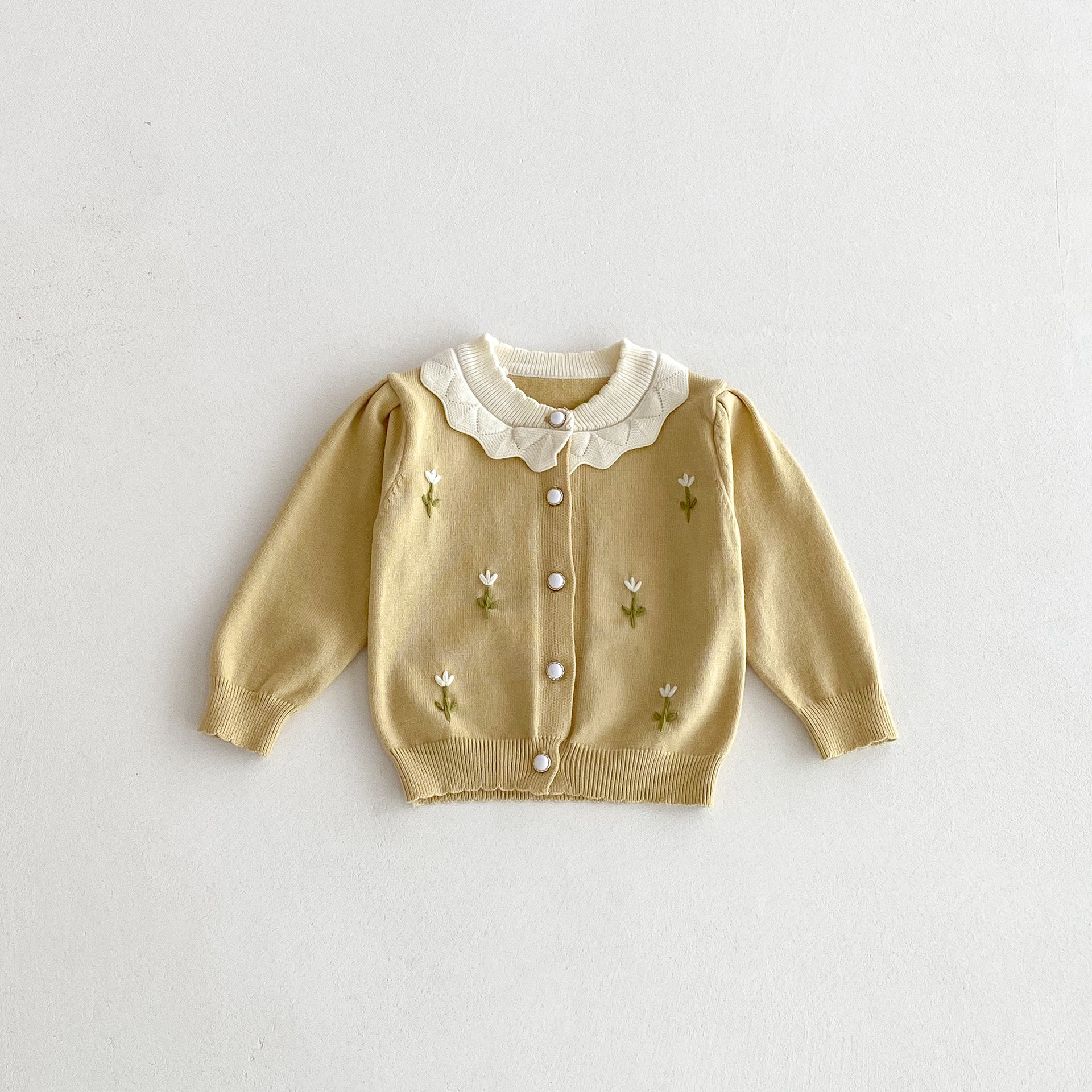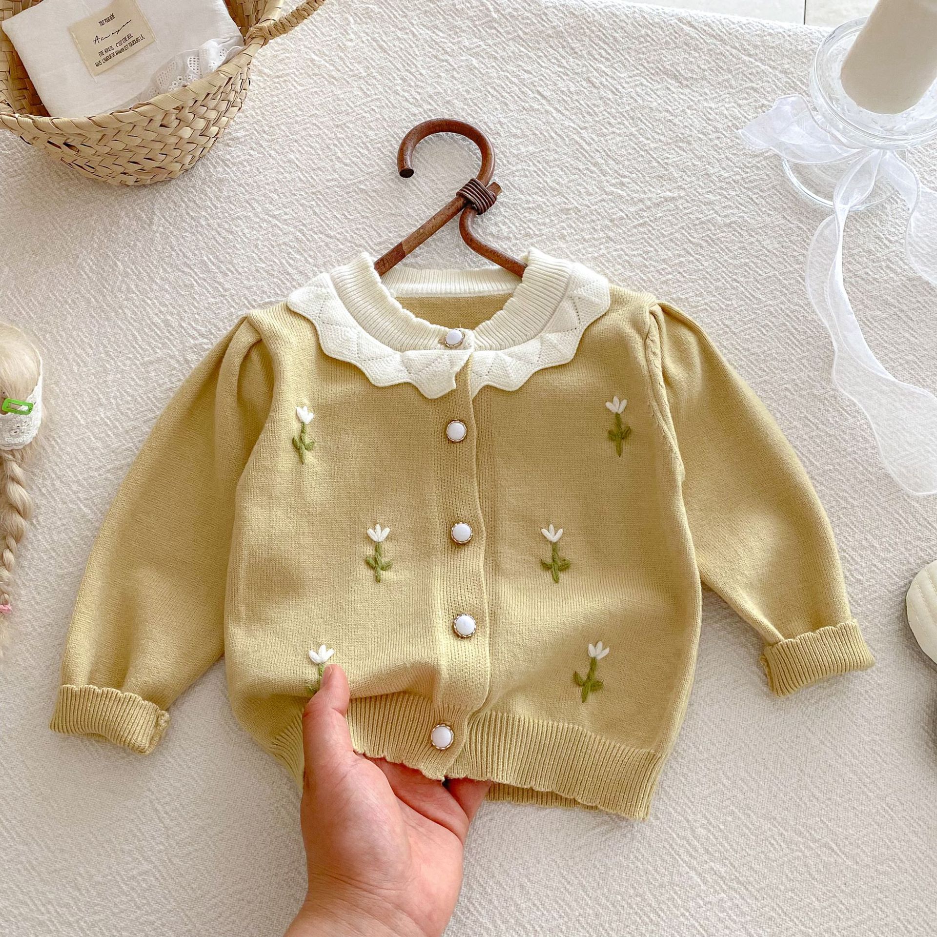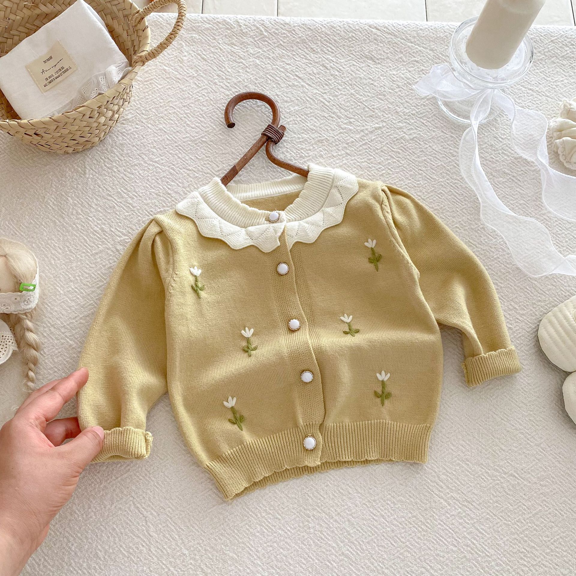 유아 스웨터 카디건 2025 가을 새로운 프릴 칼라 아기 소녀 자수 코트 스웨터 탑