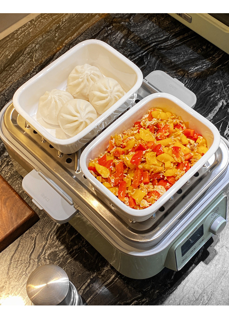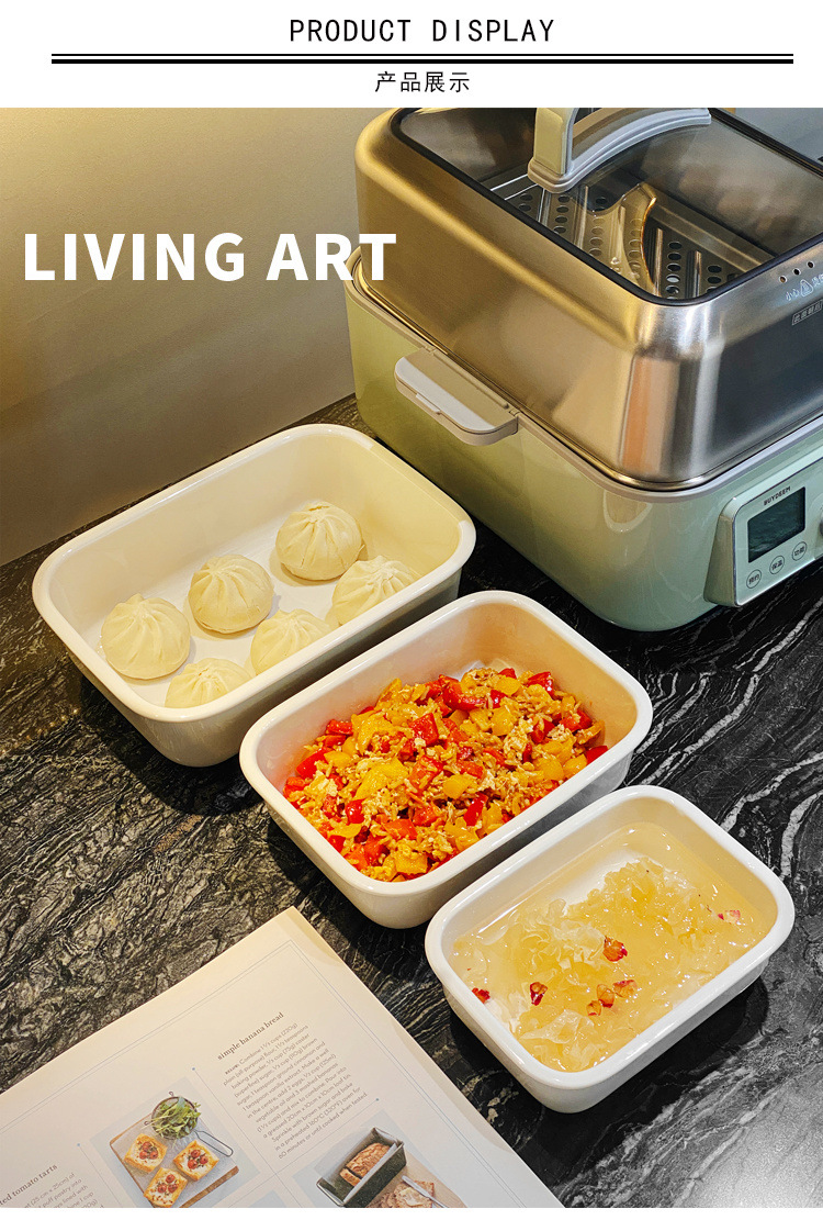 특수 사각 디저트 찜 그릇, 가정용 스낵 스낵 접시, 세라믹 직사각형 계란찜 그릇, 오븐 전기 찜통스토어 가기