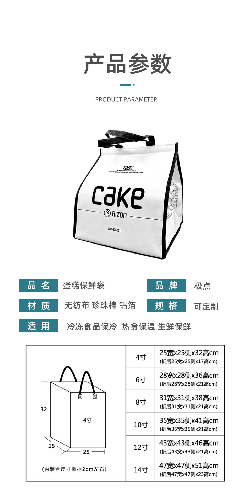 도매 케이크 절연 가방 다층 강화 휴대용 절연 가방 테이크 아웃 절연 가방 부직포 절연 가방 아이스 가방
