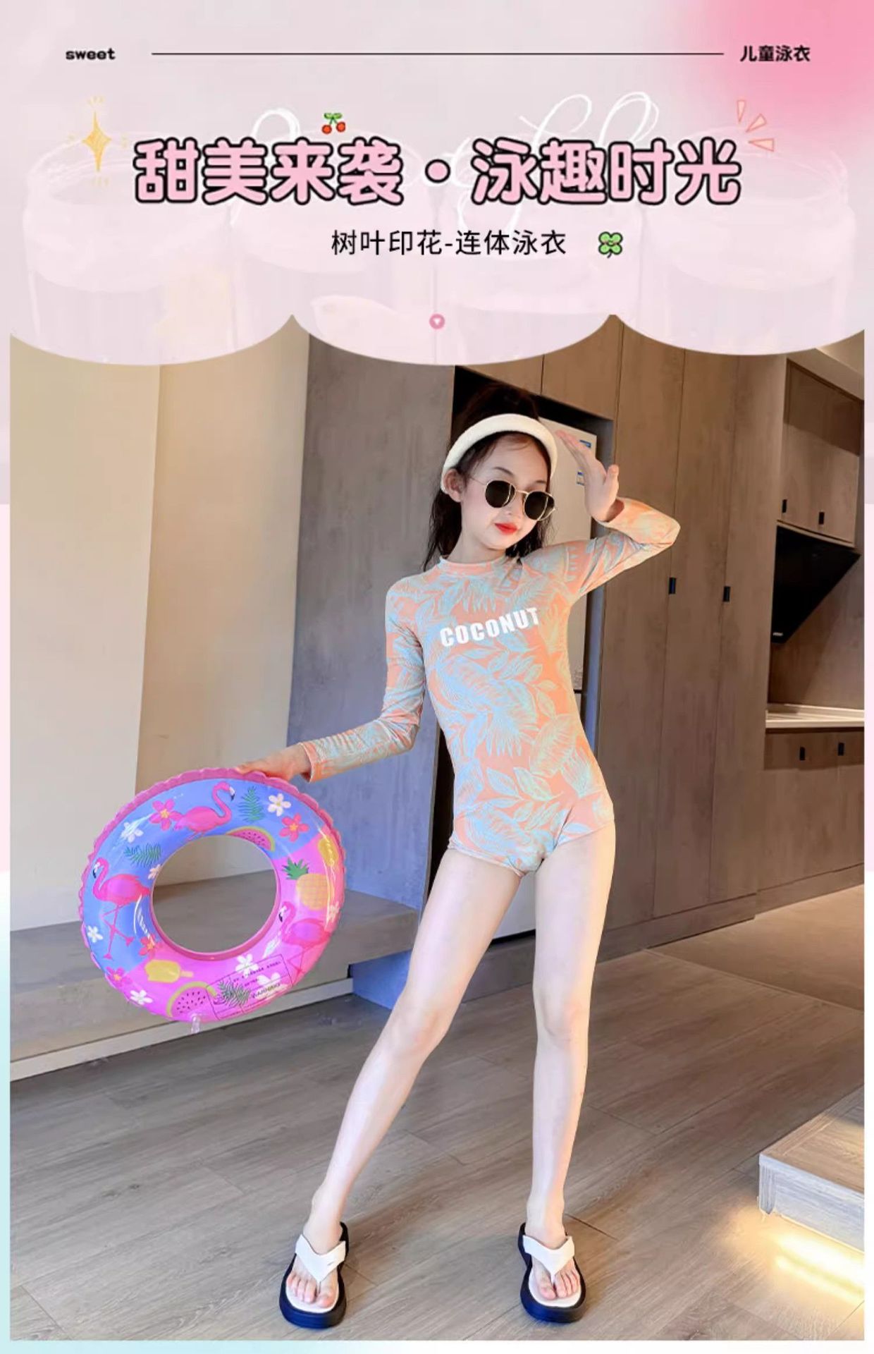 여아 2025년 신형 긴팔 수영복, 중대형 여아용 패셔너블하고 멋진 수영복, 아동용 원피스 수영복스토어 가기