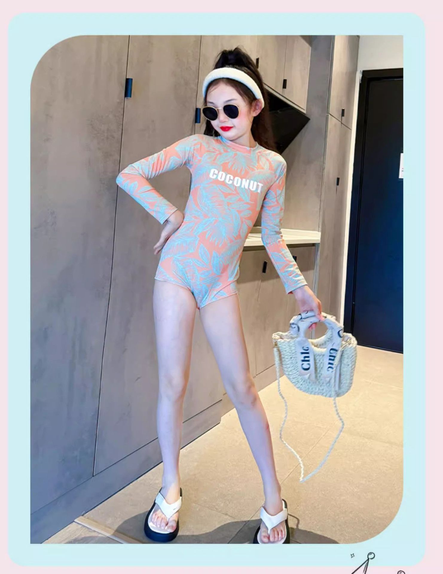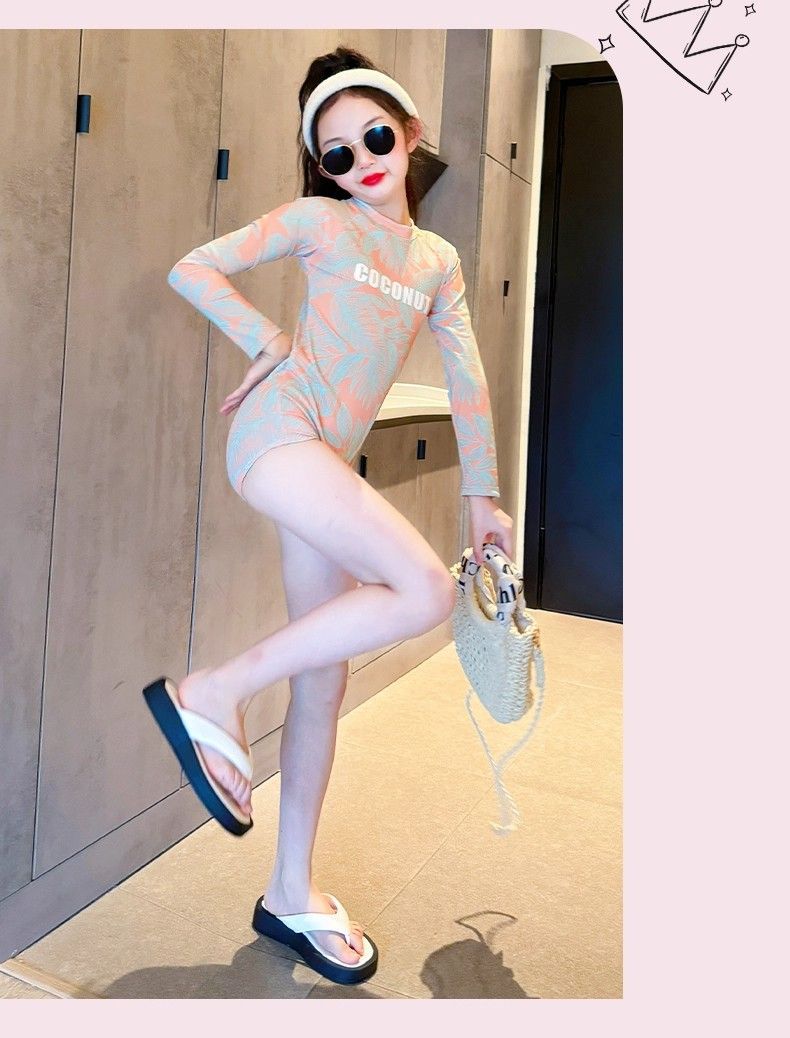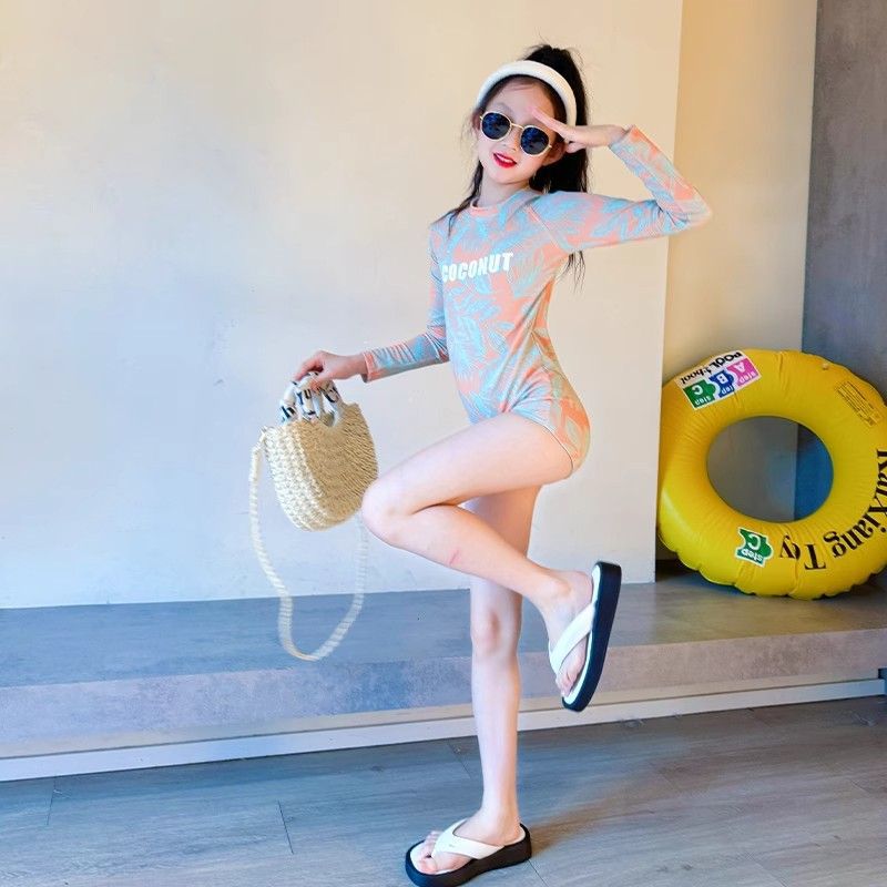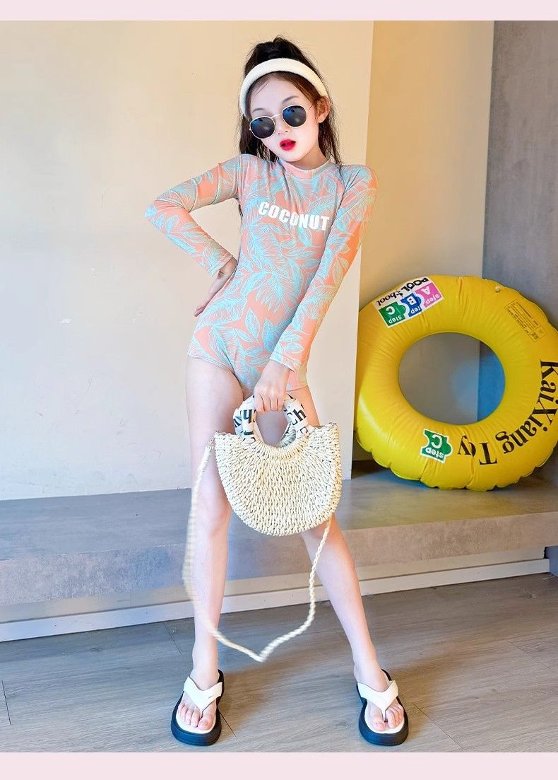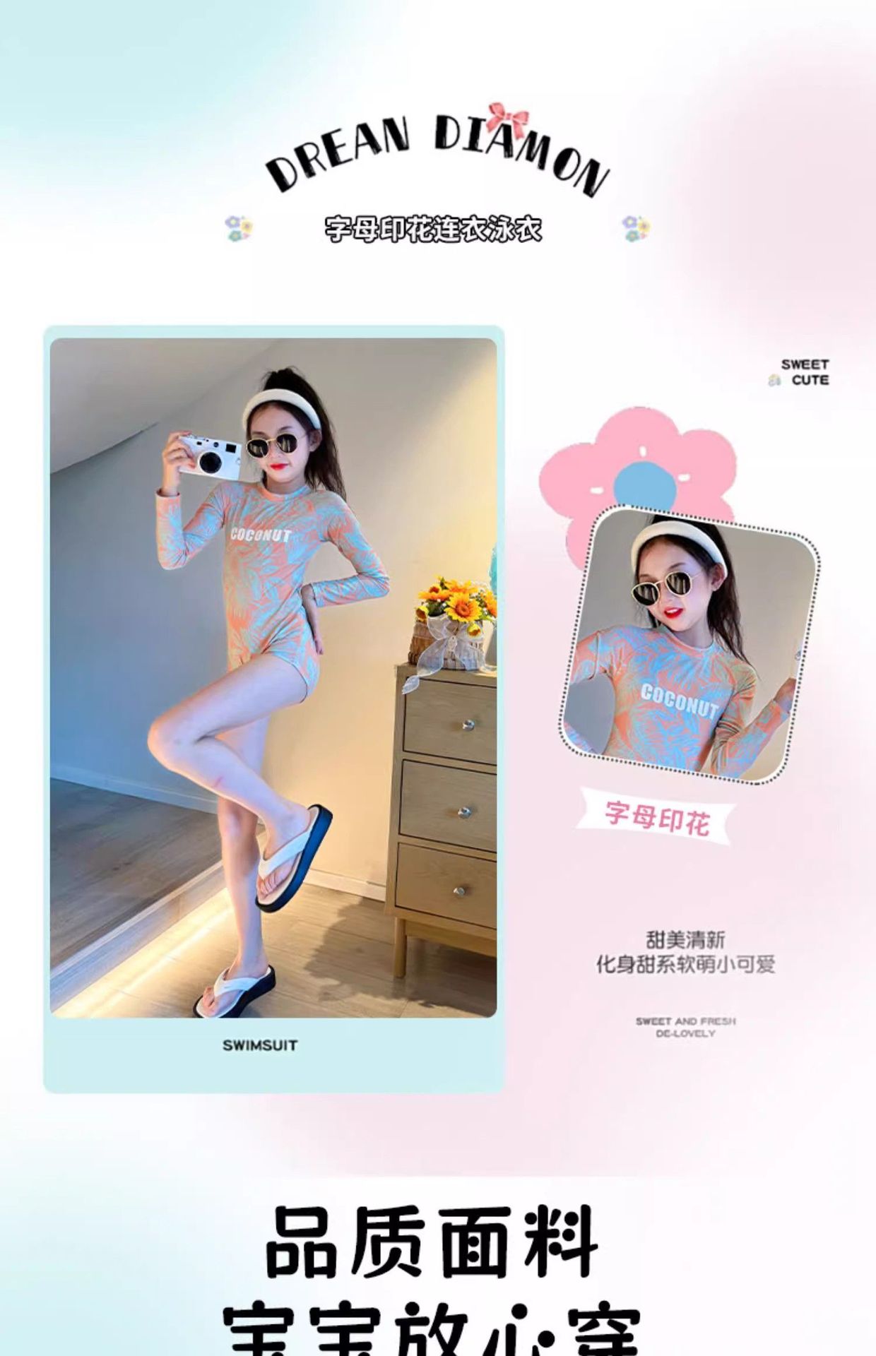 여아 2025년 신형 긴팔 수영복, 중대형 여아용 패셔너블하고 멋진 수영복, 아동용 원피스 수영복