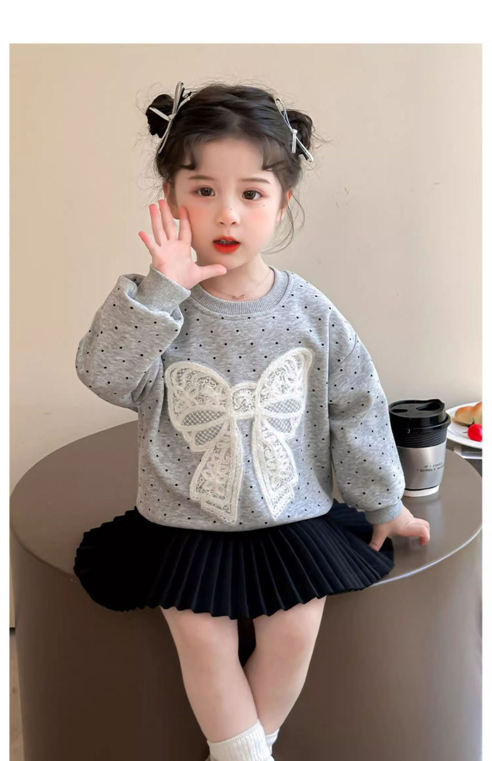 여아 스웨트셔츠 2025년 초가을 새로운 스타일 아동용 봄 패션 다재다능한 베이비 봄 의류 리본 탑