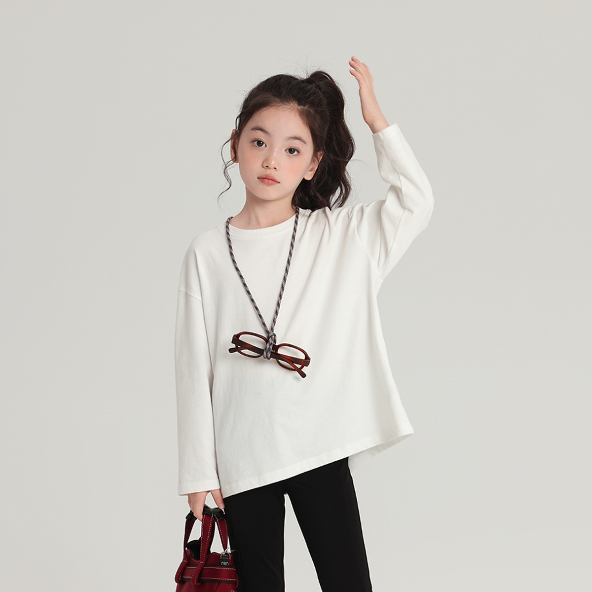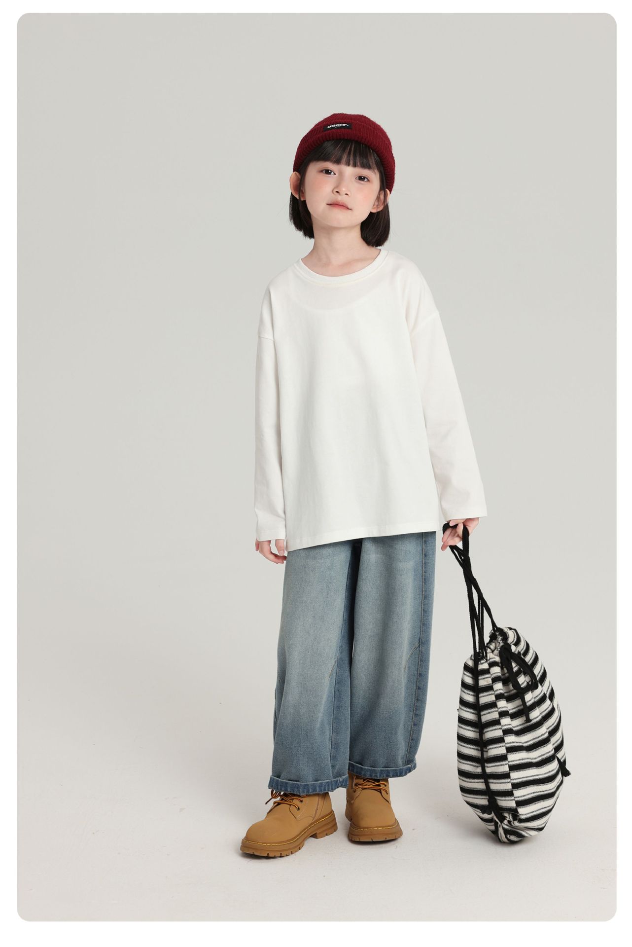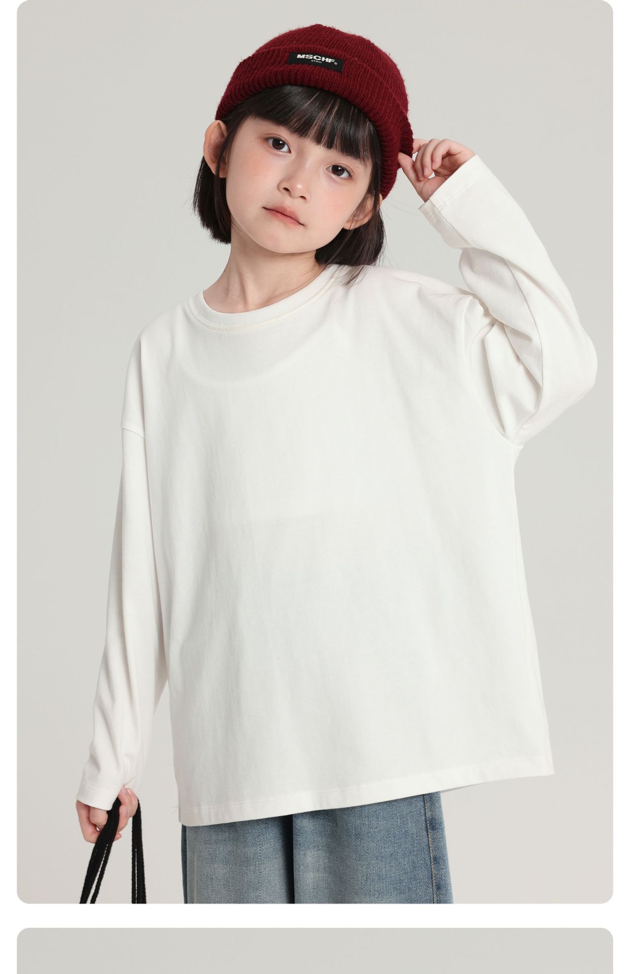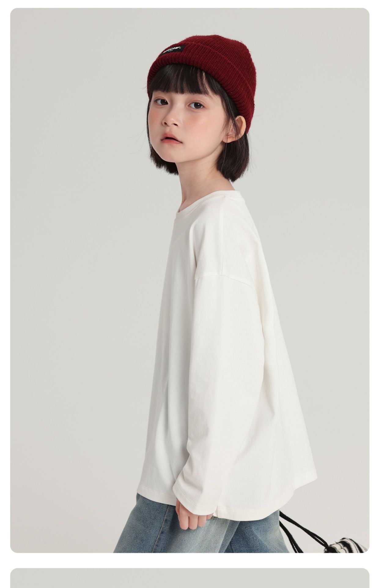 2025 새로운 가을 어린이 순수한 긴팔 티셔츠 게으른 스타일 피부 친화적인 소녀 솔리드 컬러 바닥 셔츠 긴팔스토어 가기