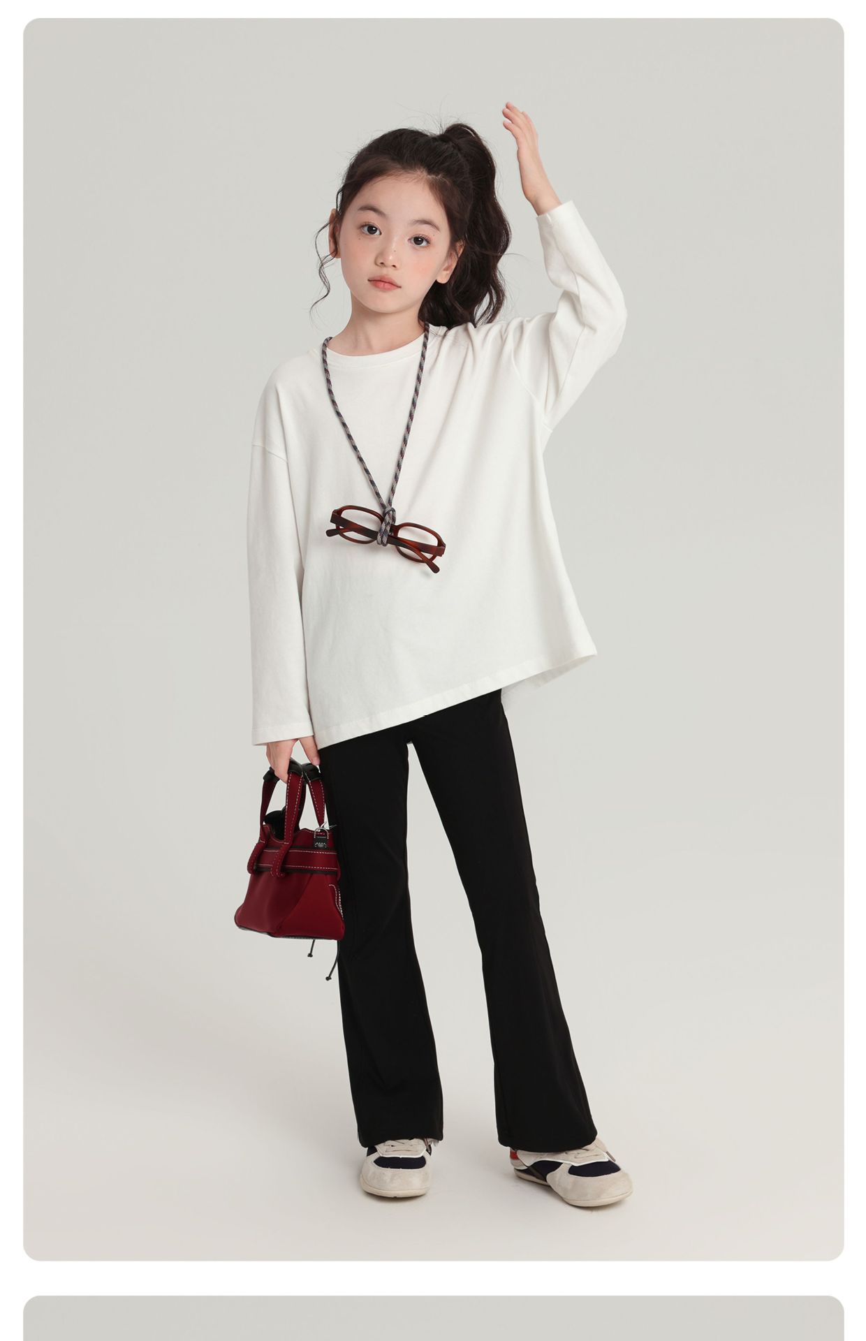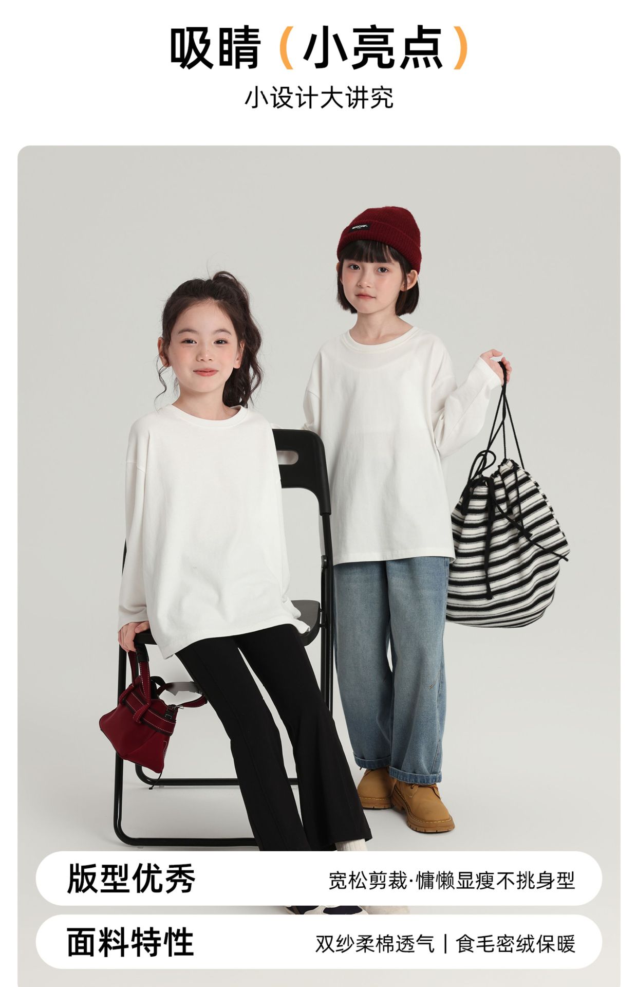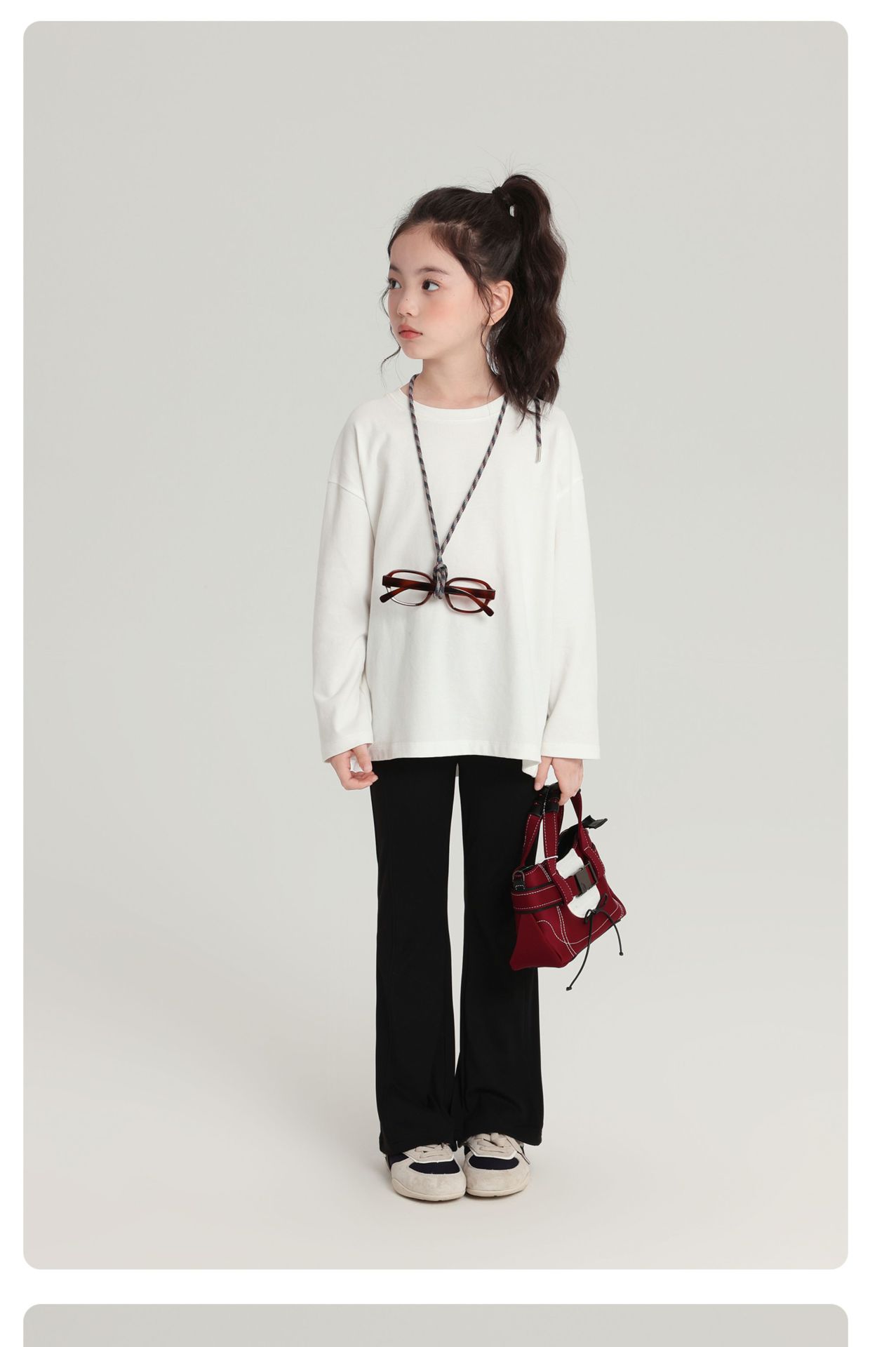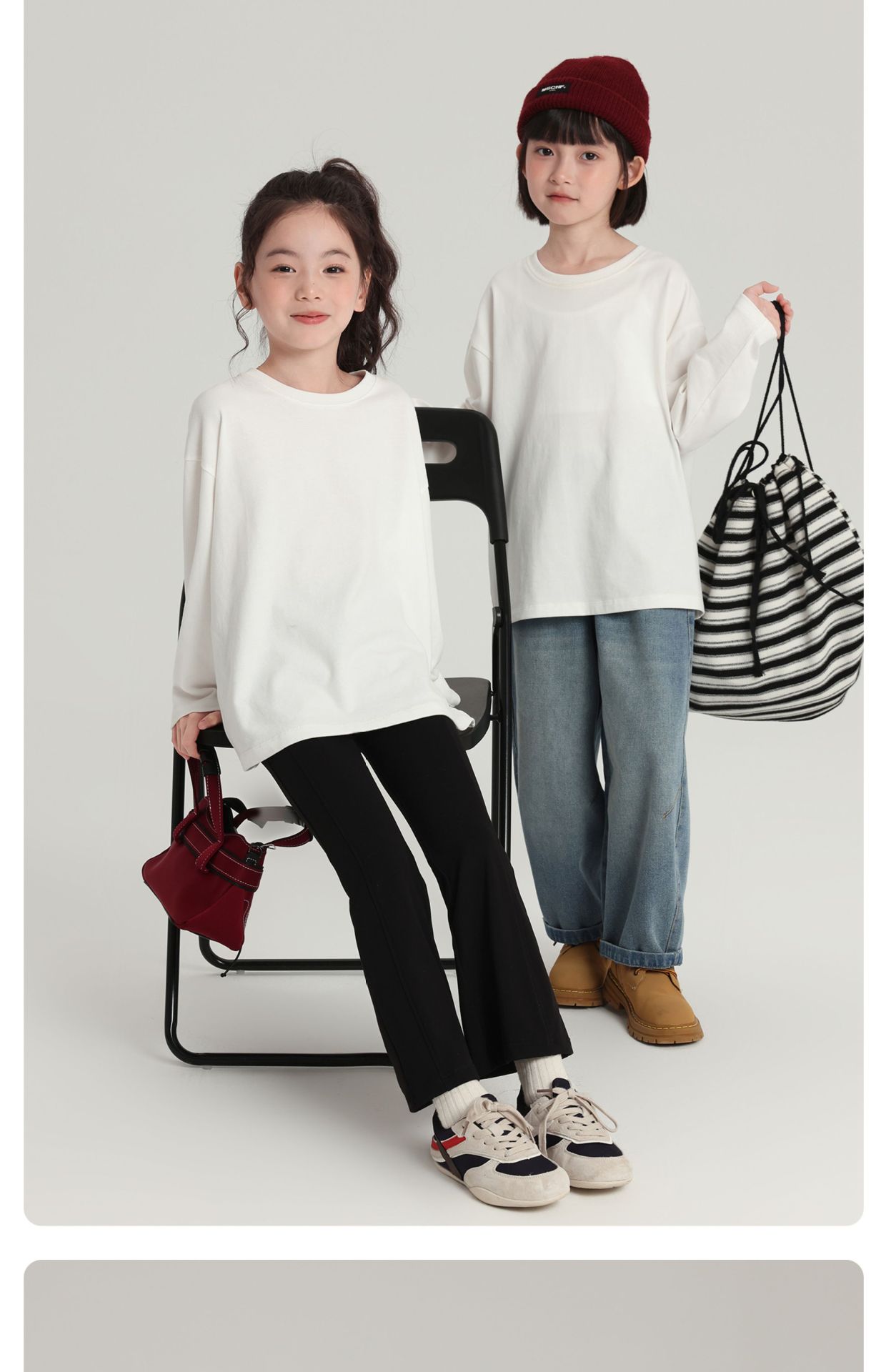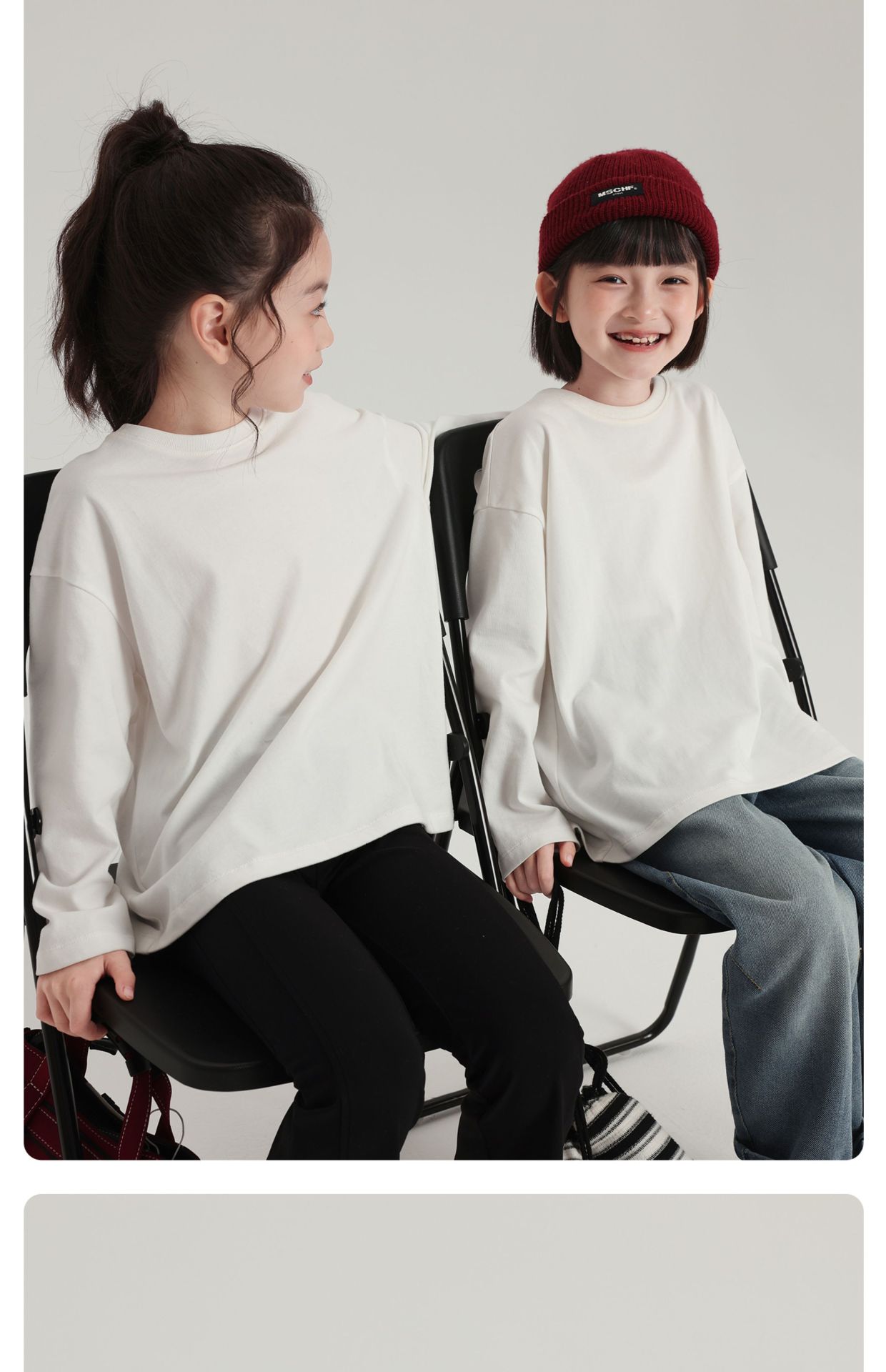 2025 새로운 가을 어린이 순수한 긴팔 티셔츠 게으른 스타일 피부 친화적인 소녀 솔리드 컬러 바닥 셔츠 긴팔스토어 가기