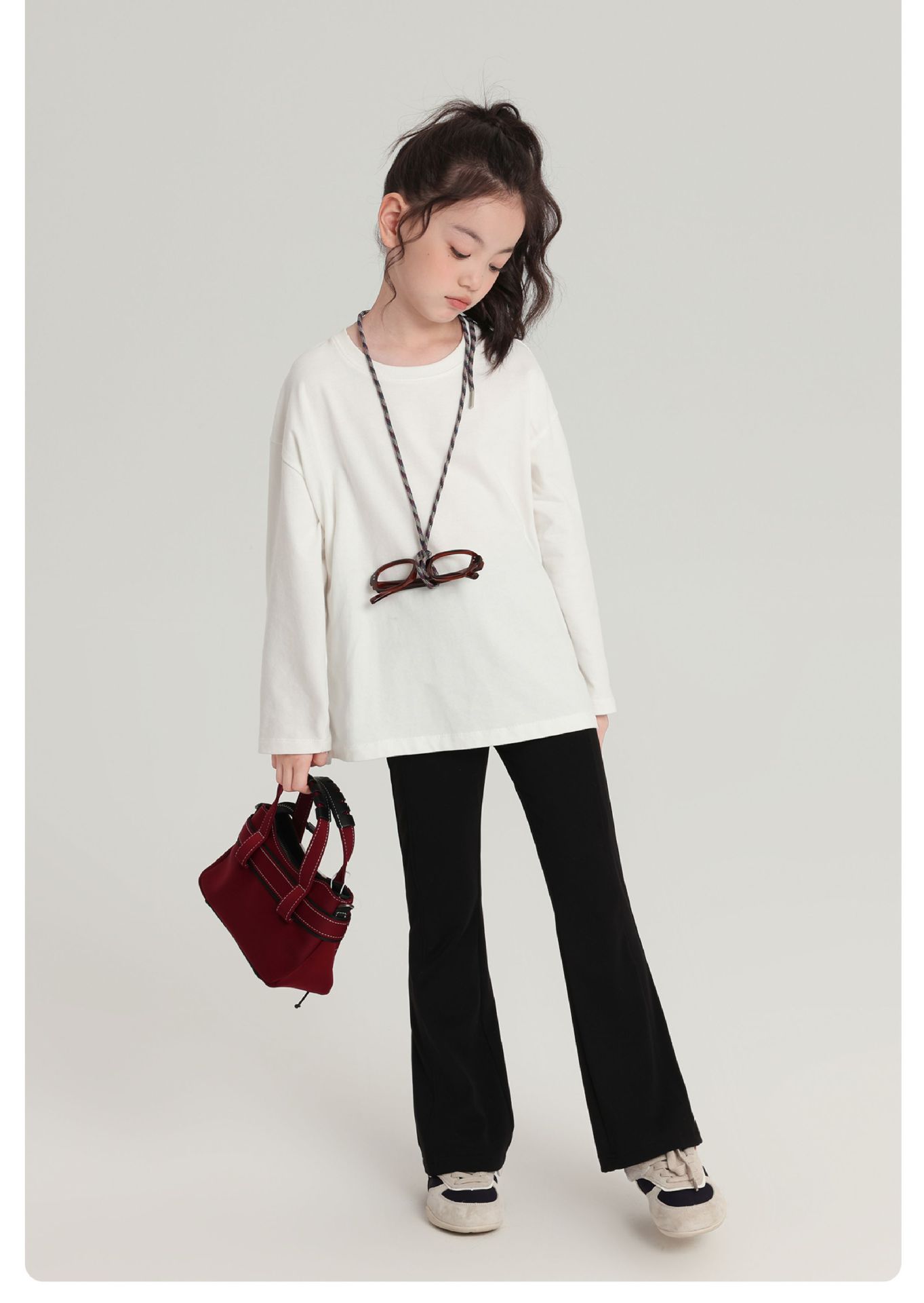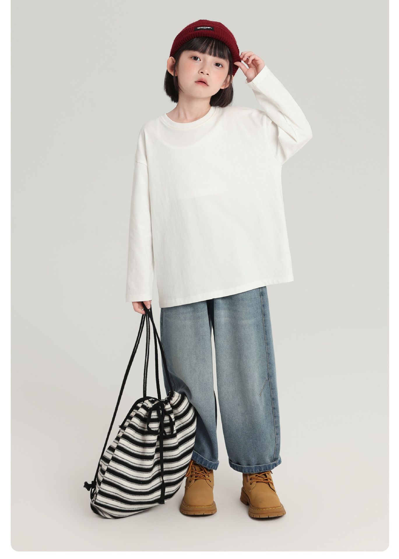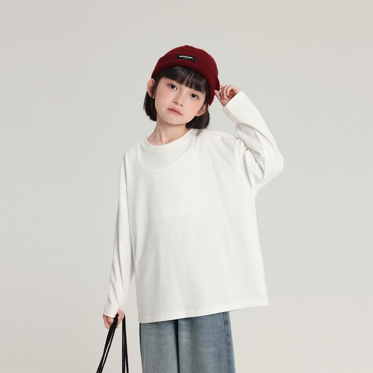 2025 새로운 가을 어린이 순수한 긴팔 티셔츠 게으른 스타일 피부 친화적인 소녀 솔리드 컬러 바닥 셔츠 긴팔