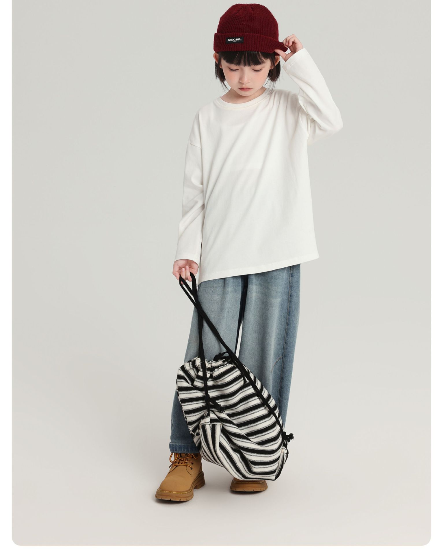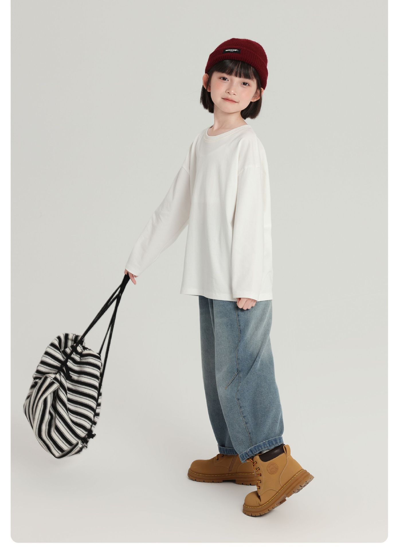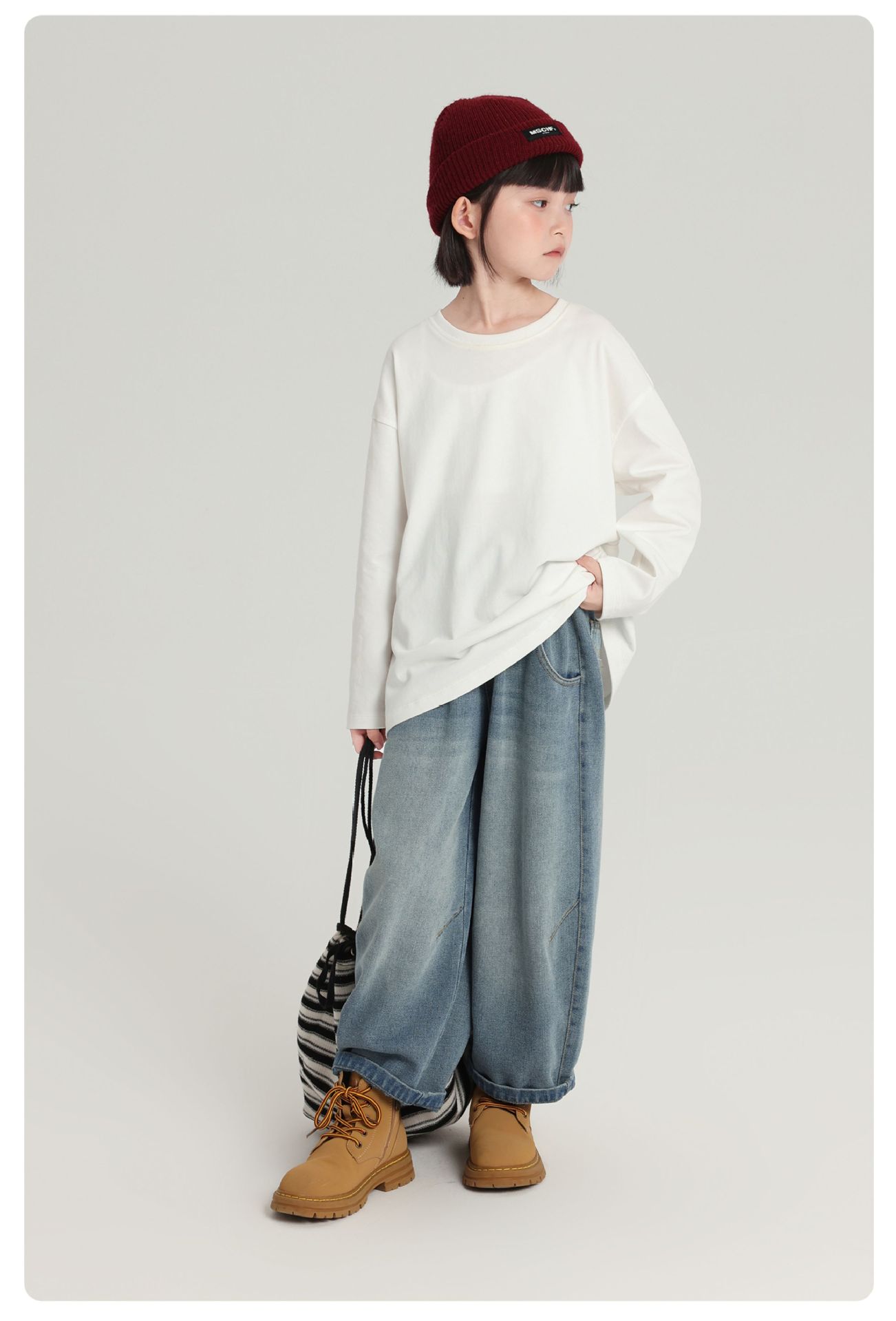 2025 새로운 가을 어린이 순수한 긴팔 티셔츠 게으른 스타일 피부 친화적인 소녀 솔리드 컬러 바닥 셔츠 긴팔
