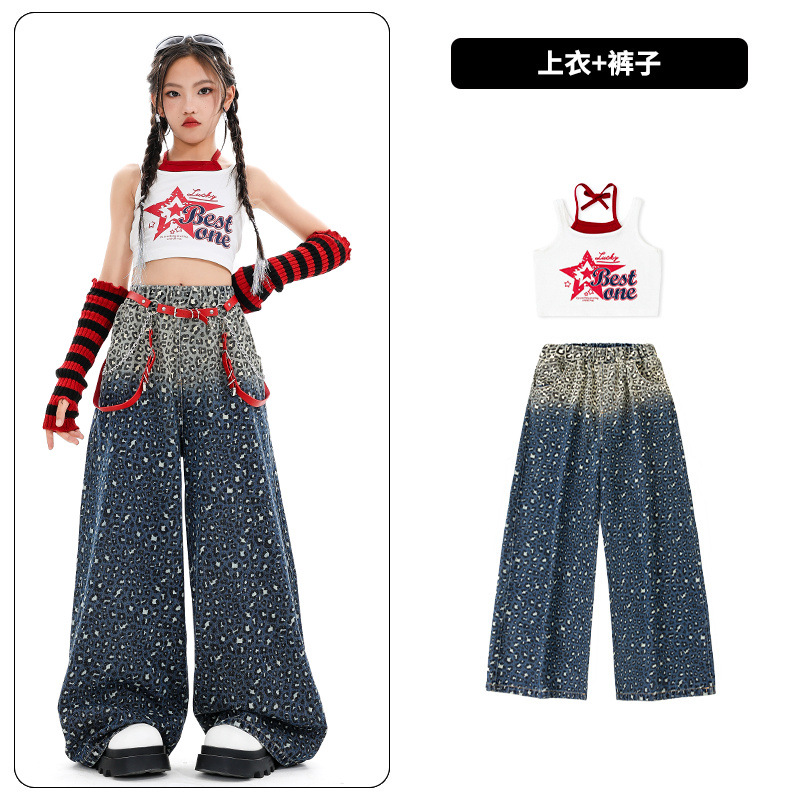 여자 재즈 댄스 의상 패션쇼 크롭 탑 레오파드 청바지 정장 스트리트 걸스 스트리트 댄스 공연 의상 여름스토어 가기