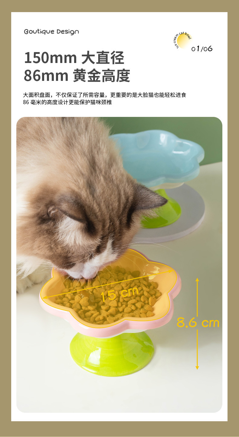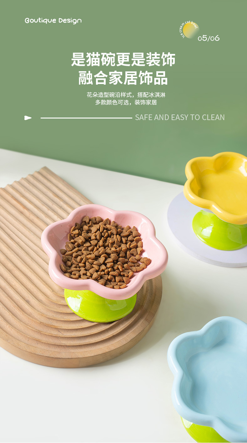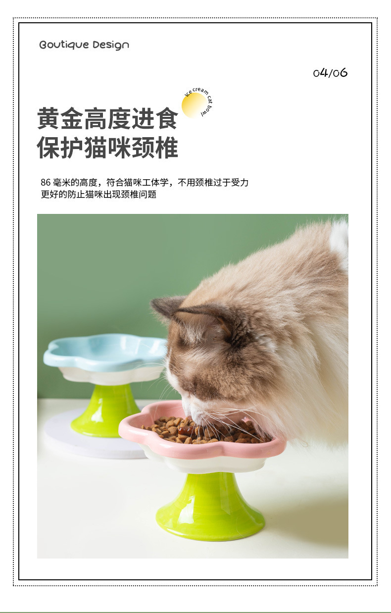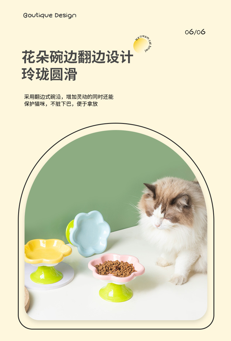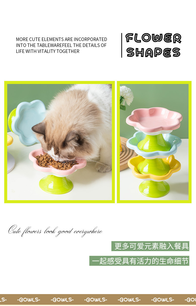 꽃무늬 고양이 그릇, 세라믹 높은 고양이 사료 그릇, 넘어짐 방지, 경추 보호, 간식 접시, 고양이 용품, 고양이 사료 통조림스토어 가기