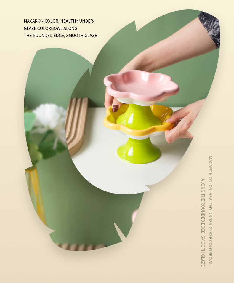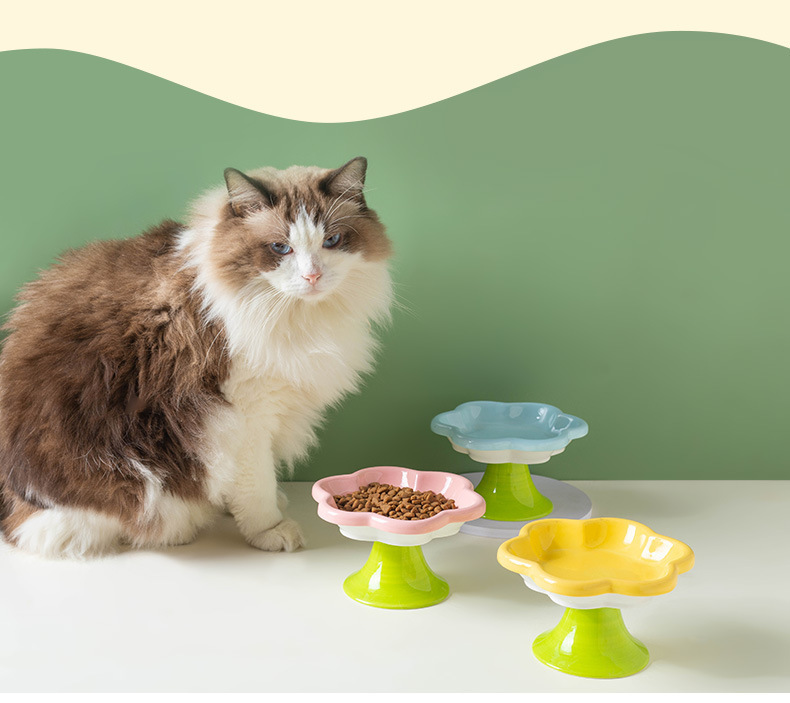 꽃무늬 고양이 그릇, 세라믹 높은 고양이 사료 그릇, 넘어짐 방지, 경추 보호, 간식 접시, 고양이 용품, 고양이 사료 통조림