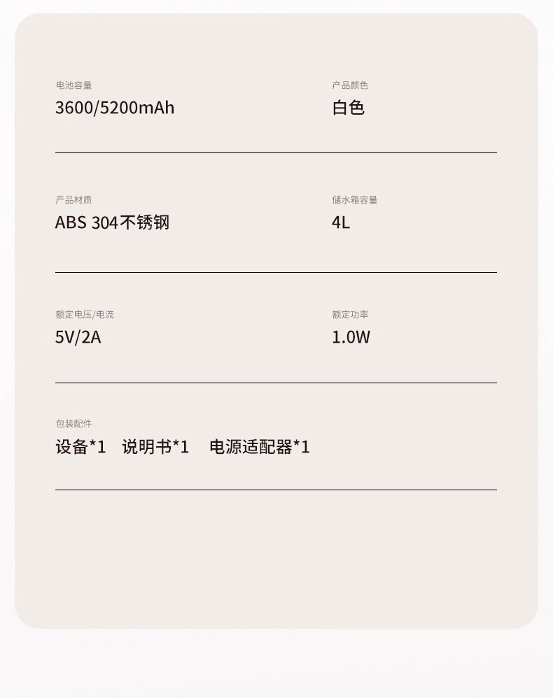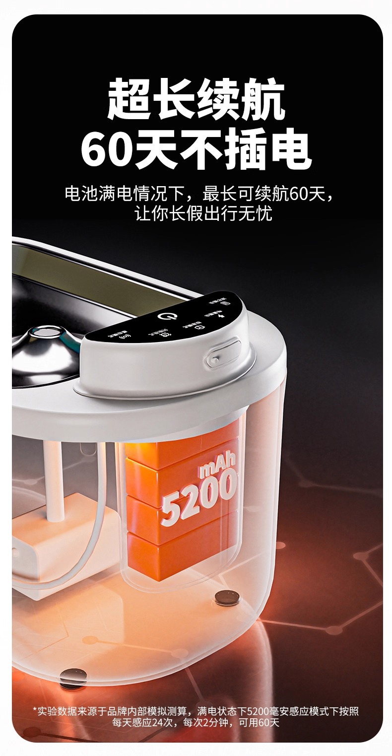 • 5200mAh[4리터] 기본 모델에는 필터 요소 1개가 포함되어 있으며 배터리 수명은 60일입니다.