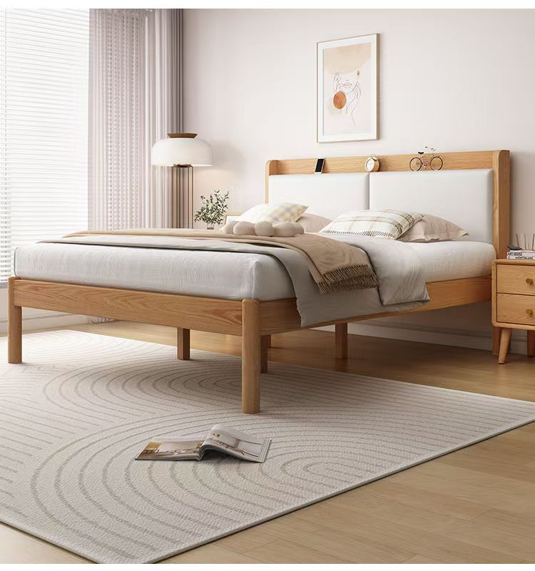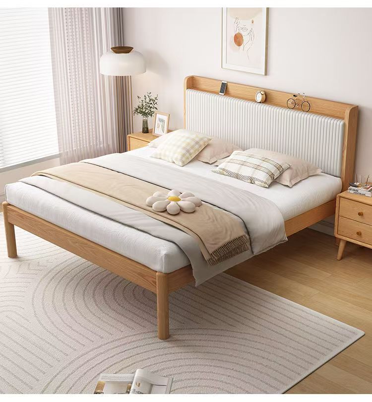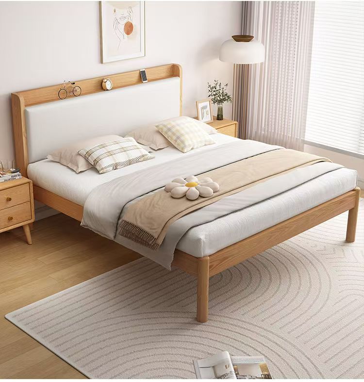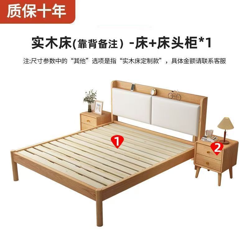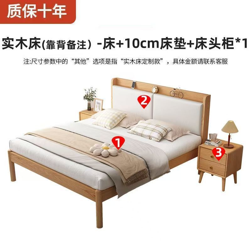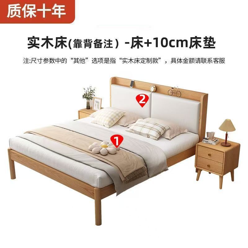 고무나무 원목 침대 1.8m 더블 침대 가정용 소프트 팩 1.5m 임대 침대 1m 싱글 침대 경제형