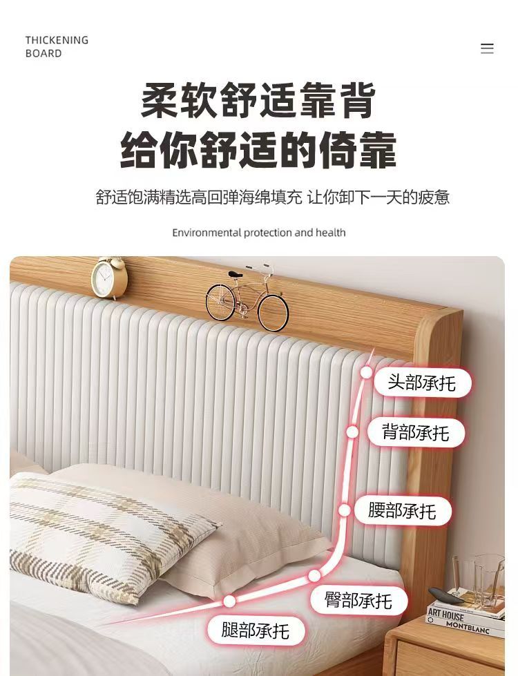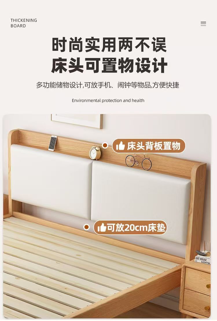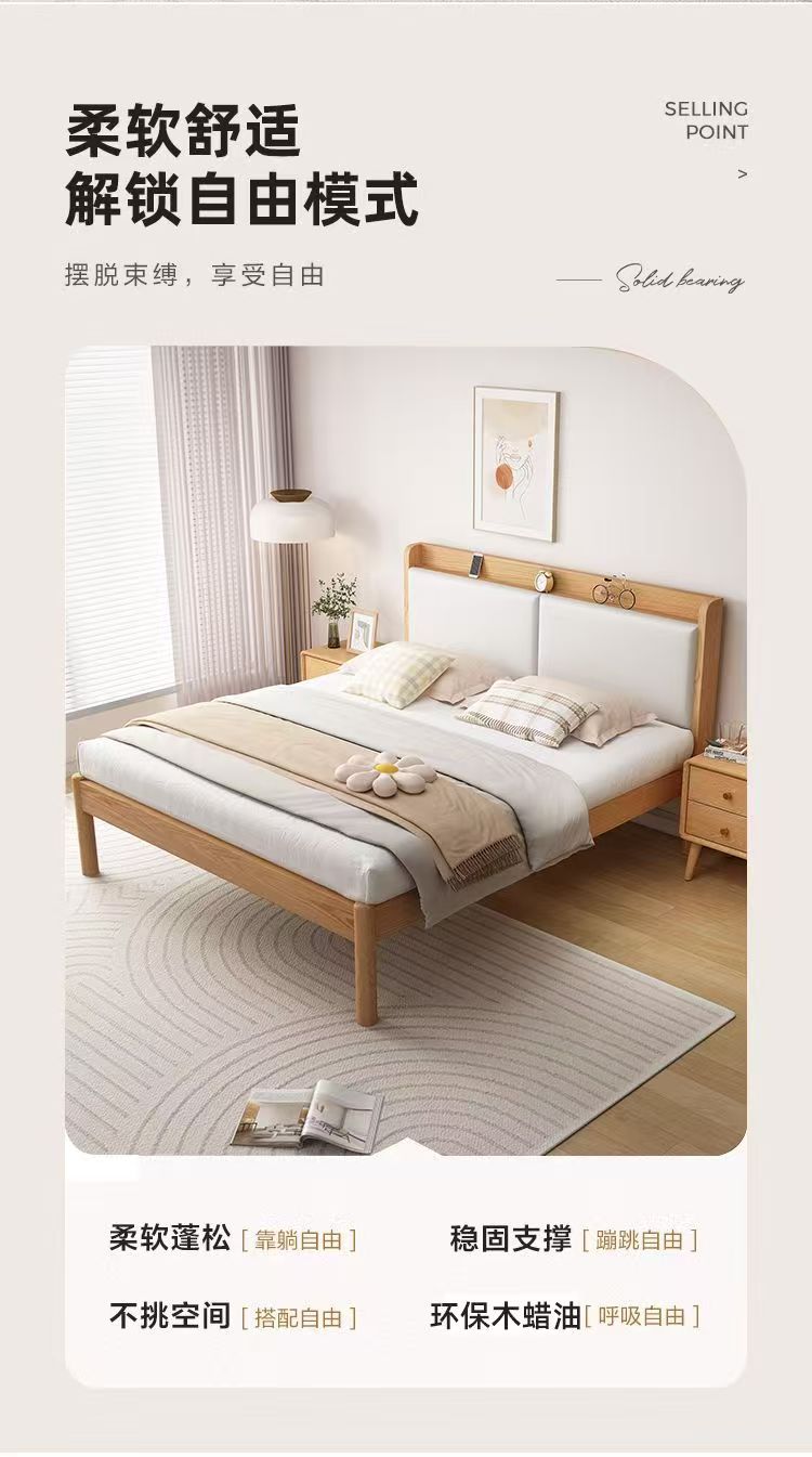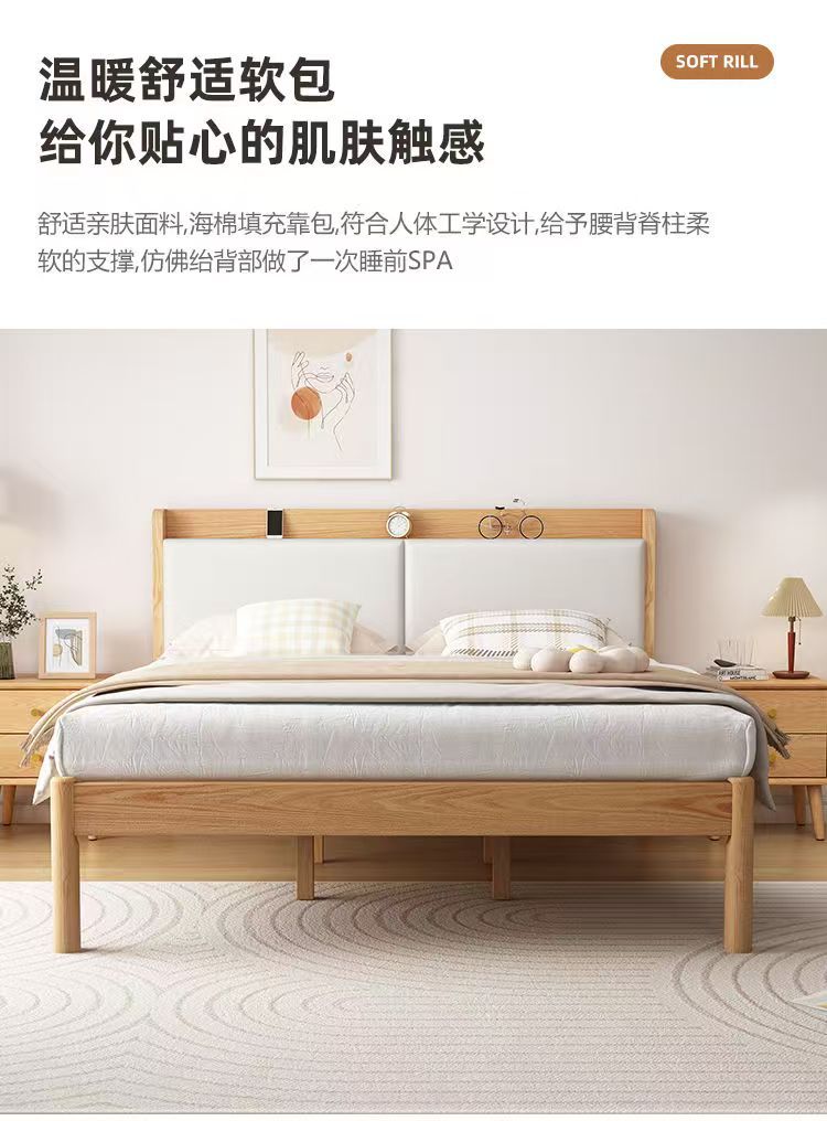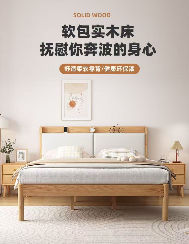 고무나무 원목 침대 1.8m 더블 침대 가정용 소프트 팩 1.5m 임대 침대 1m 싱글 침대 경제형스토어 가기