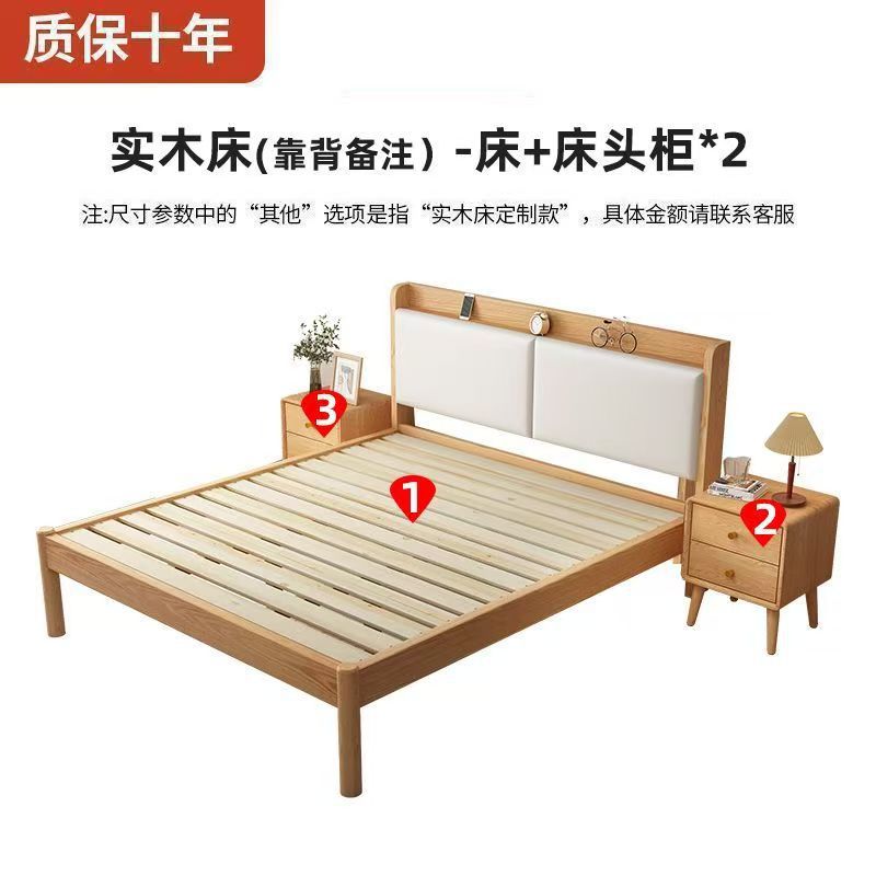 • 원목 침대 + 침대 옆 탁자*2 [홈 패키지 설치]