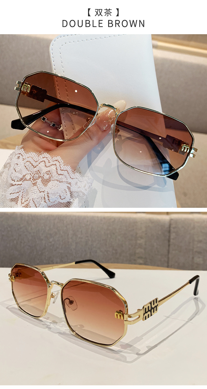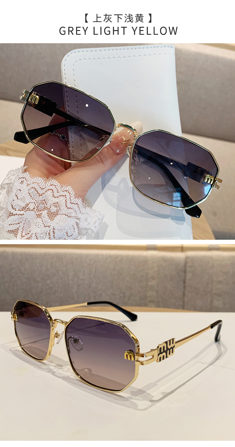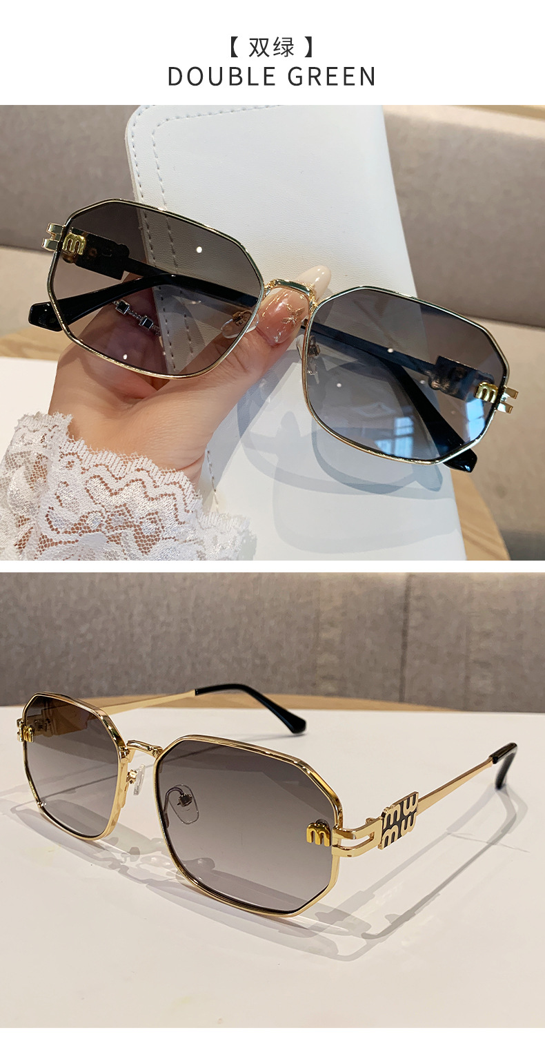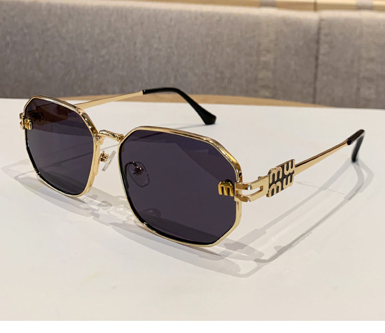 국경을 넘는 도매 신상 다각형 선글라스 여성 패션 레터 메탈 자외선 차단 안경 고급 유럽 및 미국 스타일 선글라스스토어 가기
