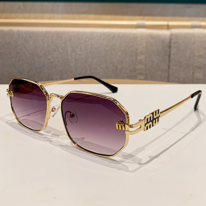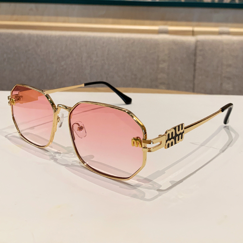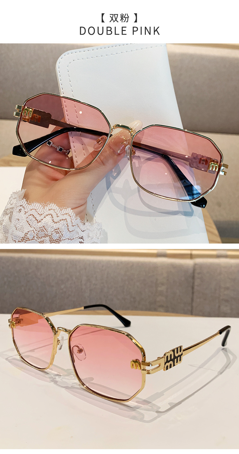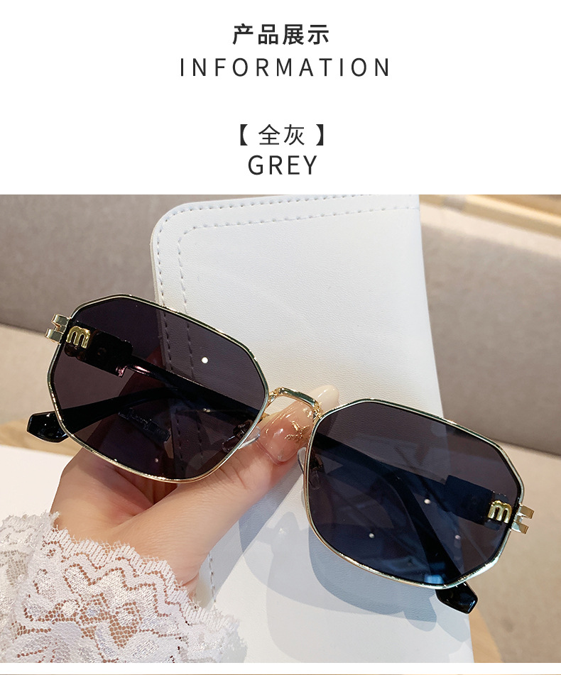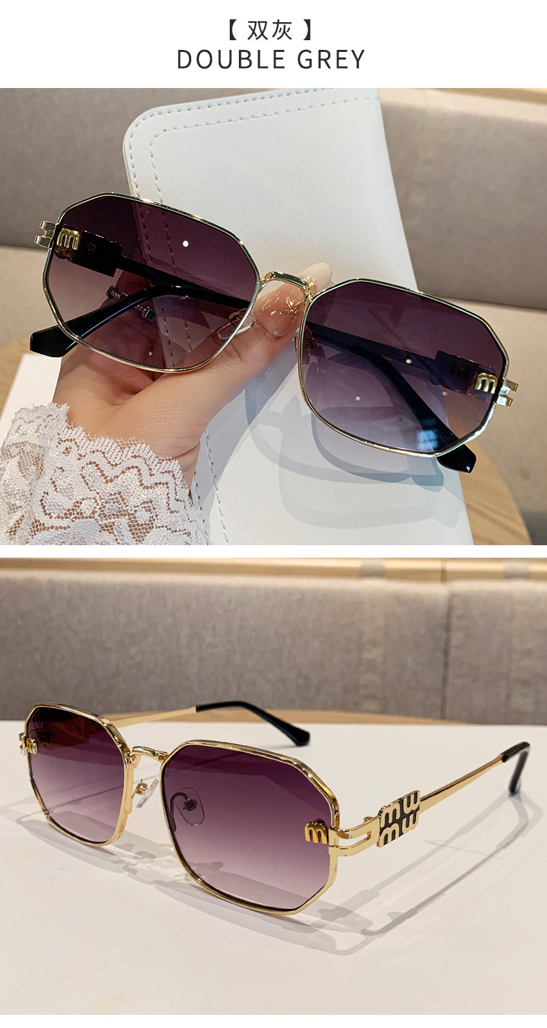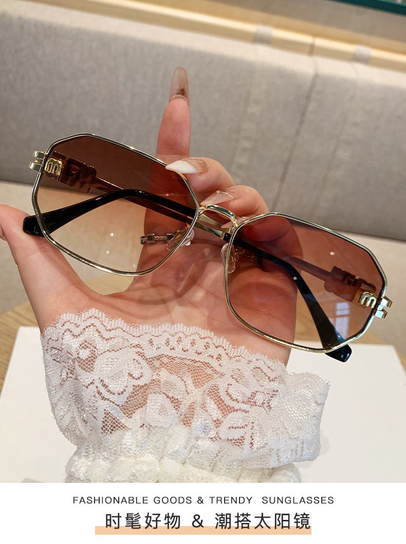 국경을 넘는 도매 신상 다각형 선글라스 여성 패션 레터 메탈 자외선 차단 안경 고급 유럽 및 미국 스타일 선글라스스토어 가기