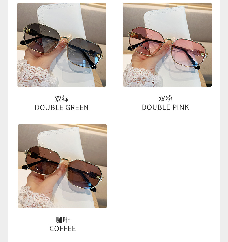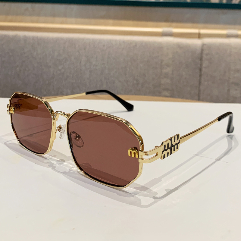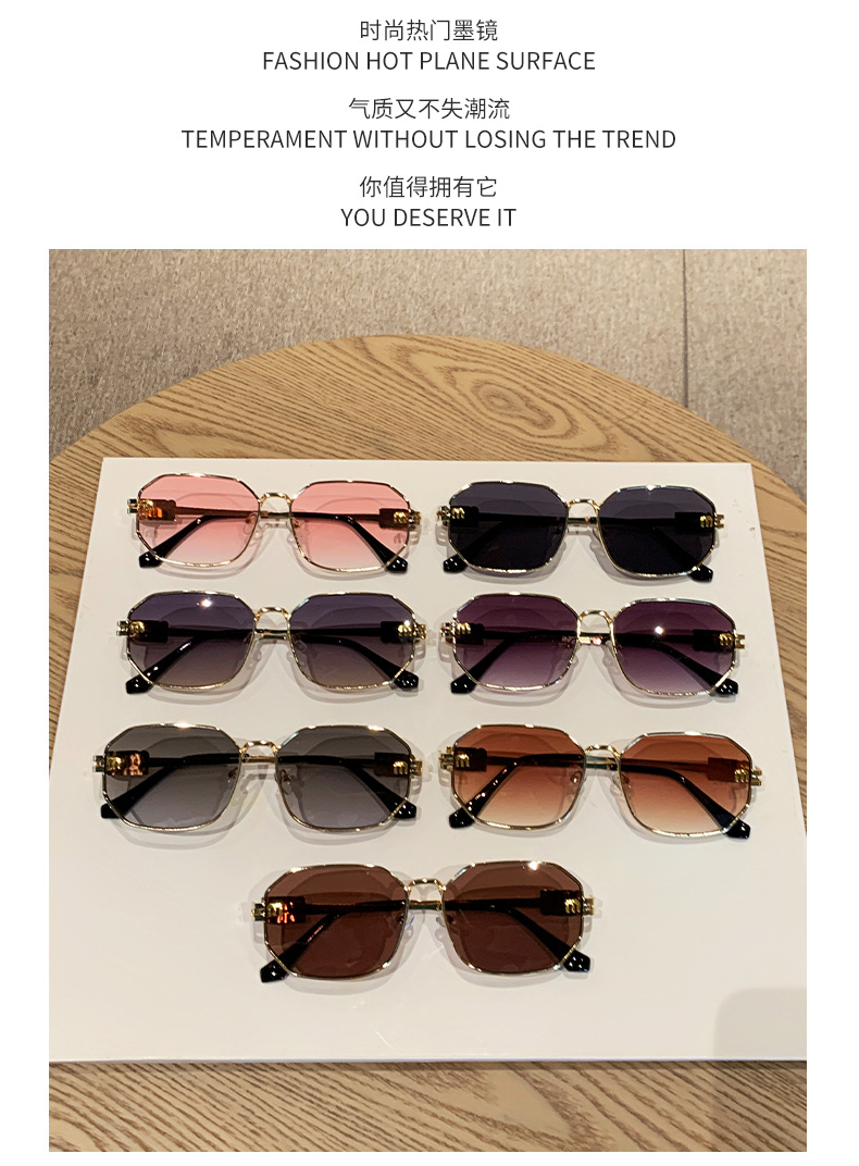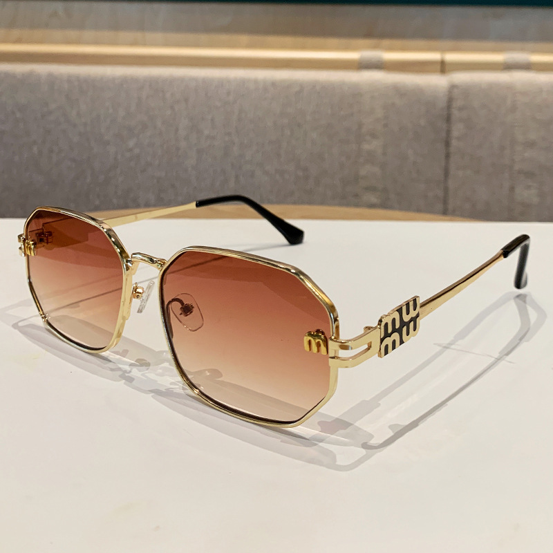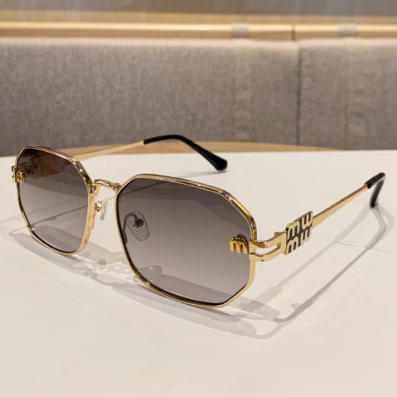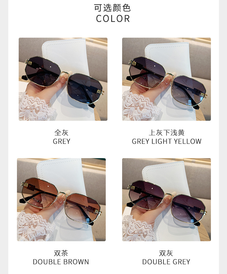 국경을 넘는 도매 신상 다각형 선글라스 여성 패션 레터 메탈 자외선 차단 안경 고급 유럽 및 미국 스타일 선글라스스토어 가기