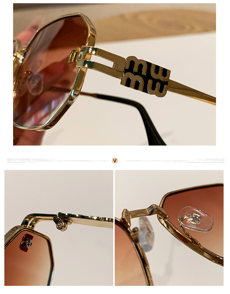 국경을 넘는 도매 신상 다각형 선글라스 여성 패션 레터 메탈 자외선 차단 안경 고급 유럽 및 미국 스타일 선글라스