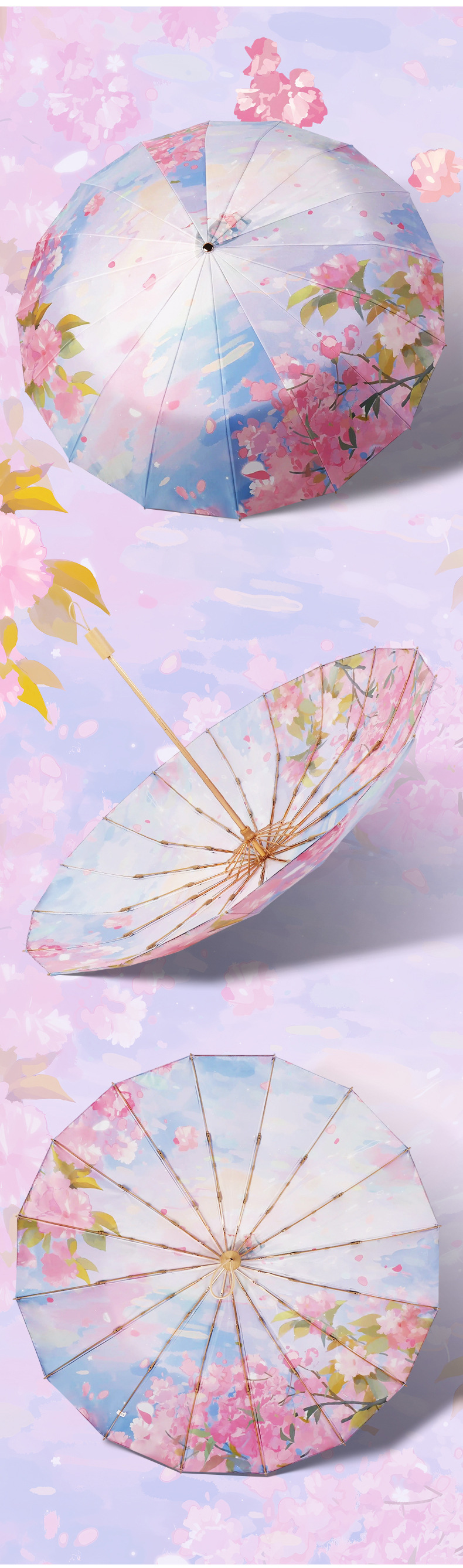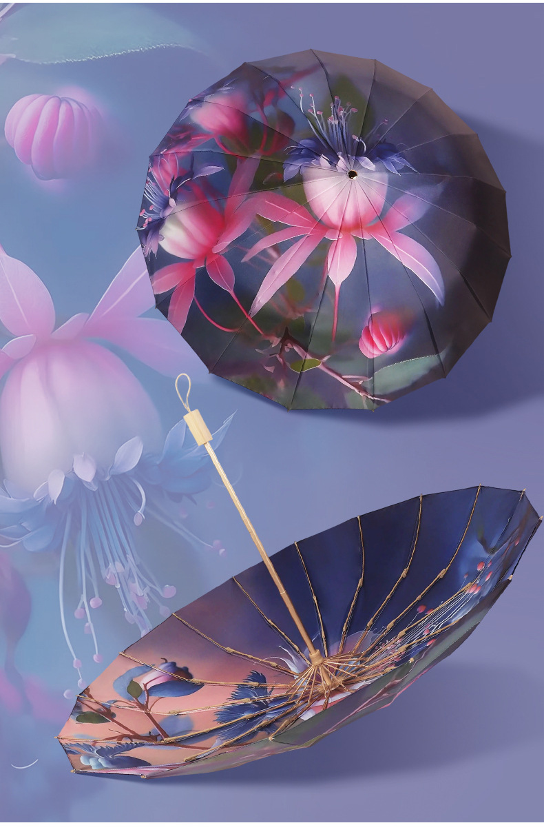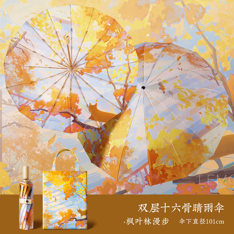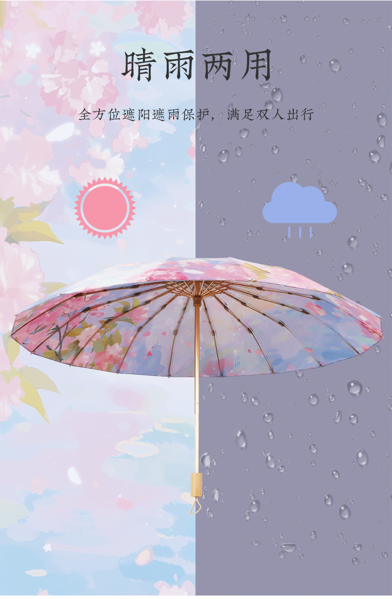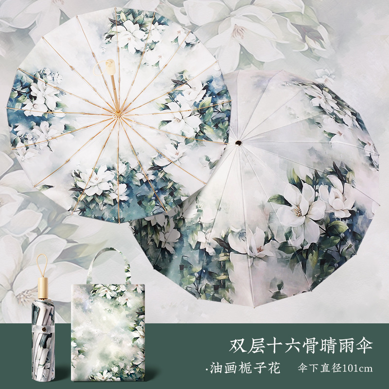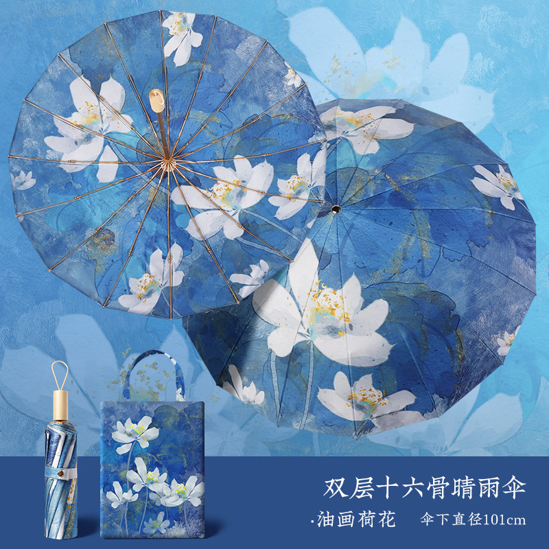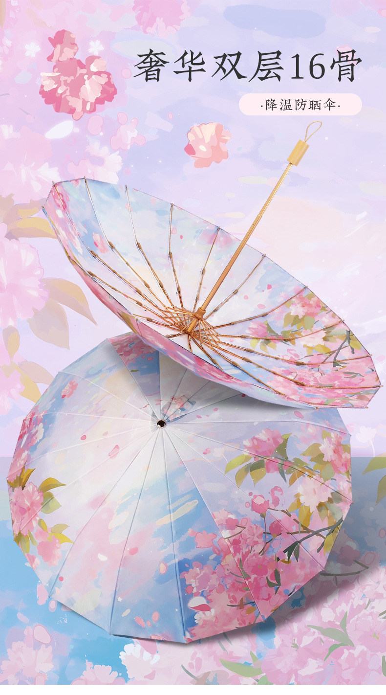 중국 복고풍 더블 레이어 16 뼈 중국 스타일 양면 태양 우산, 비 또는 빛 우산, 자외선 차단 및 자외선 차단 우산