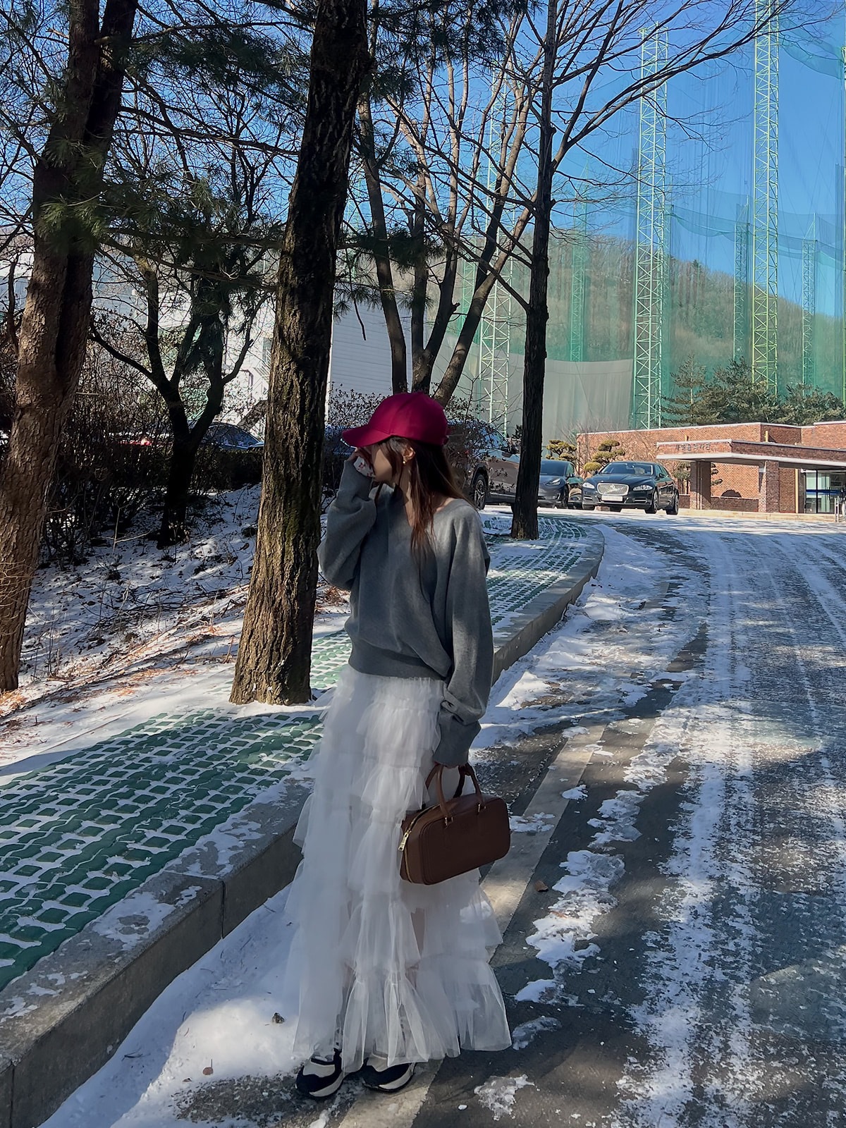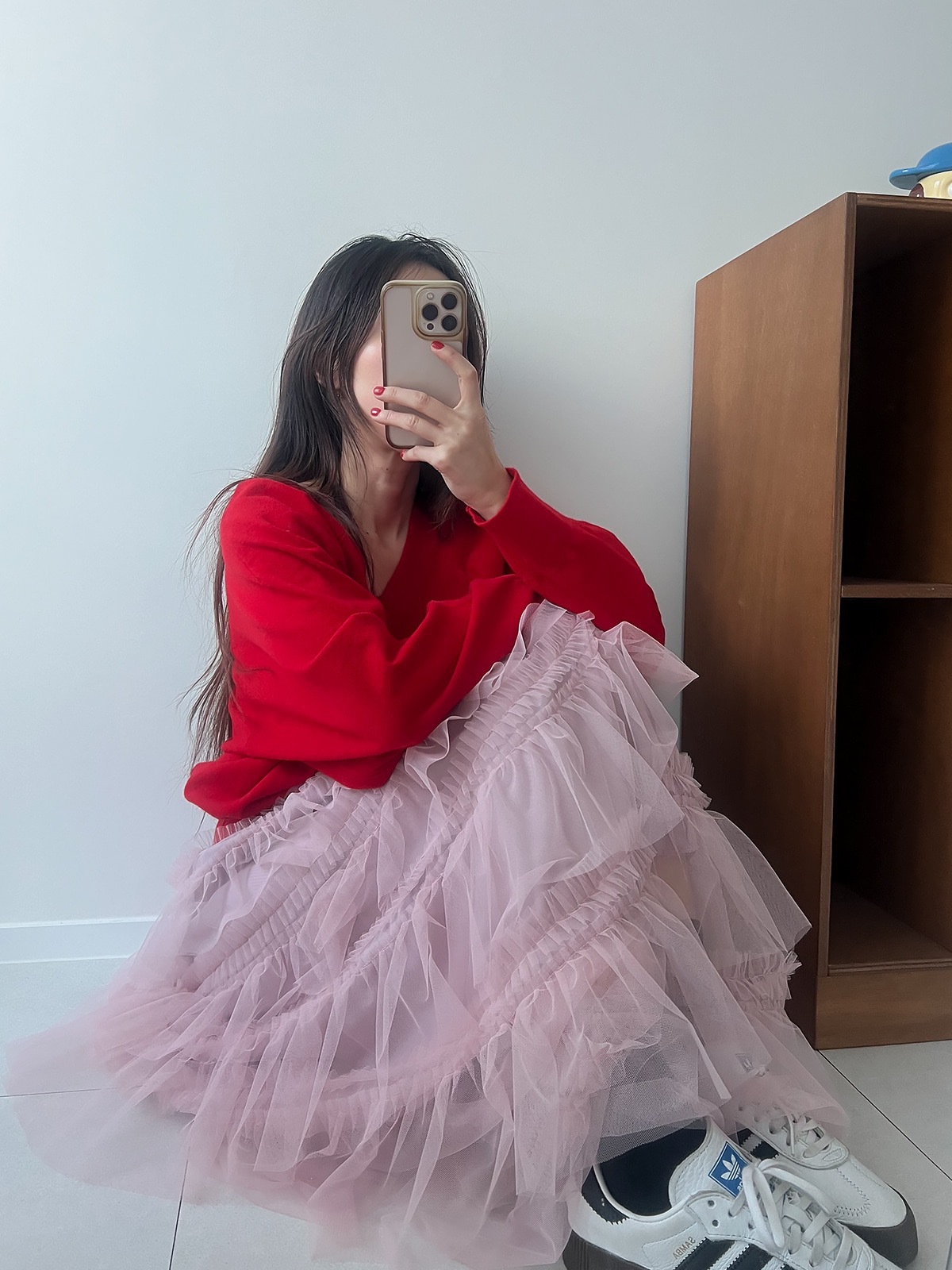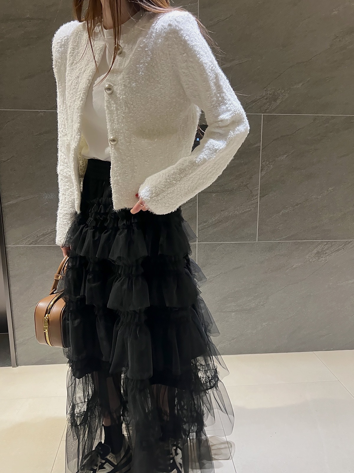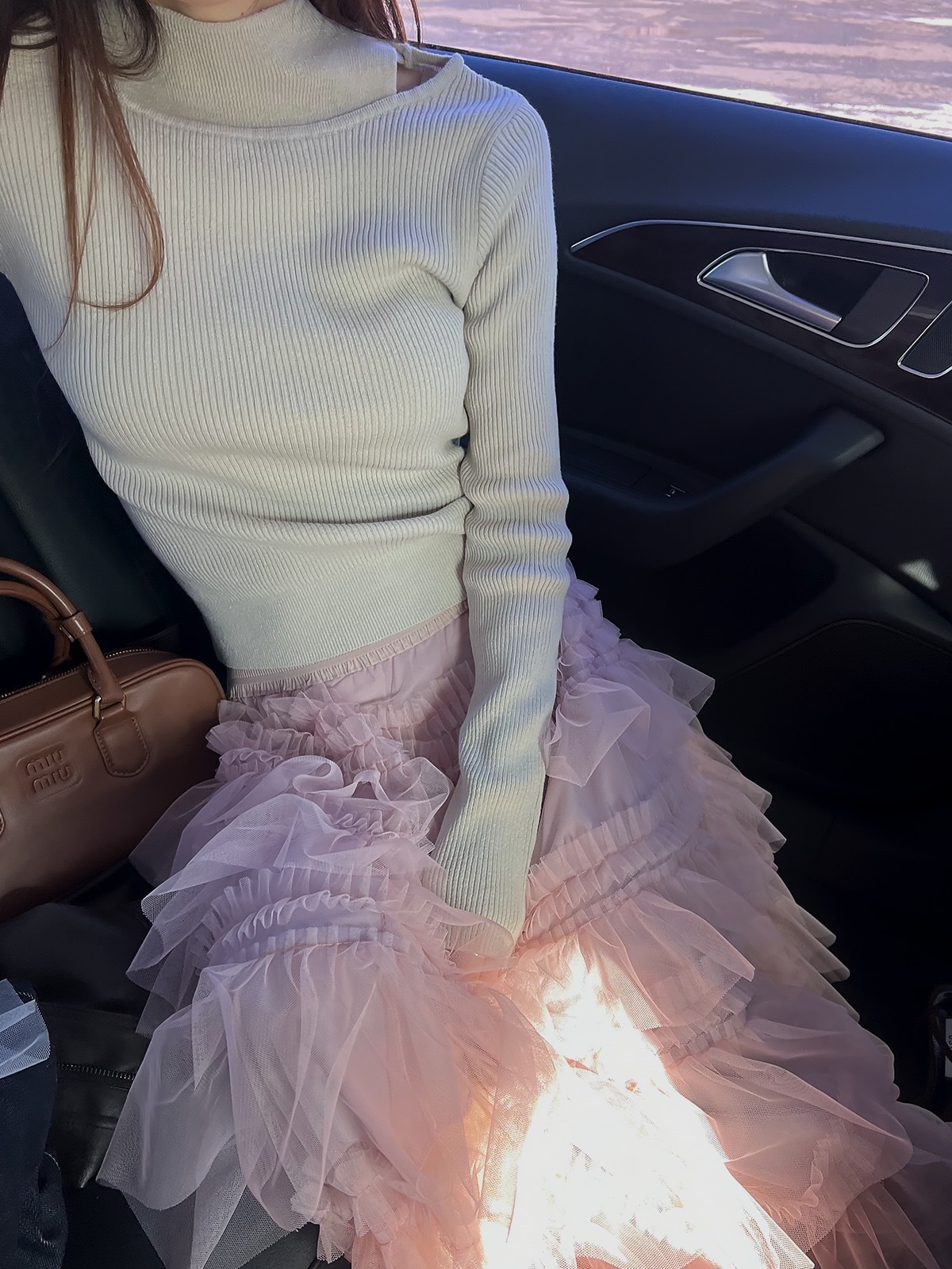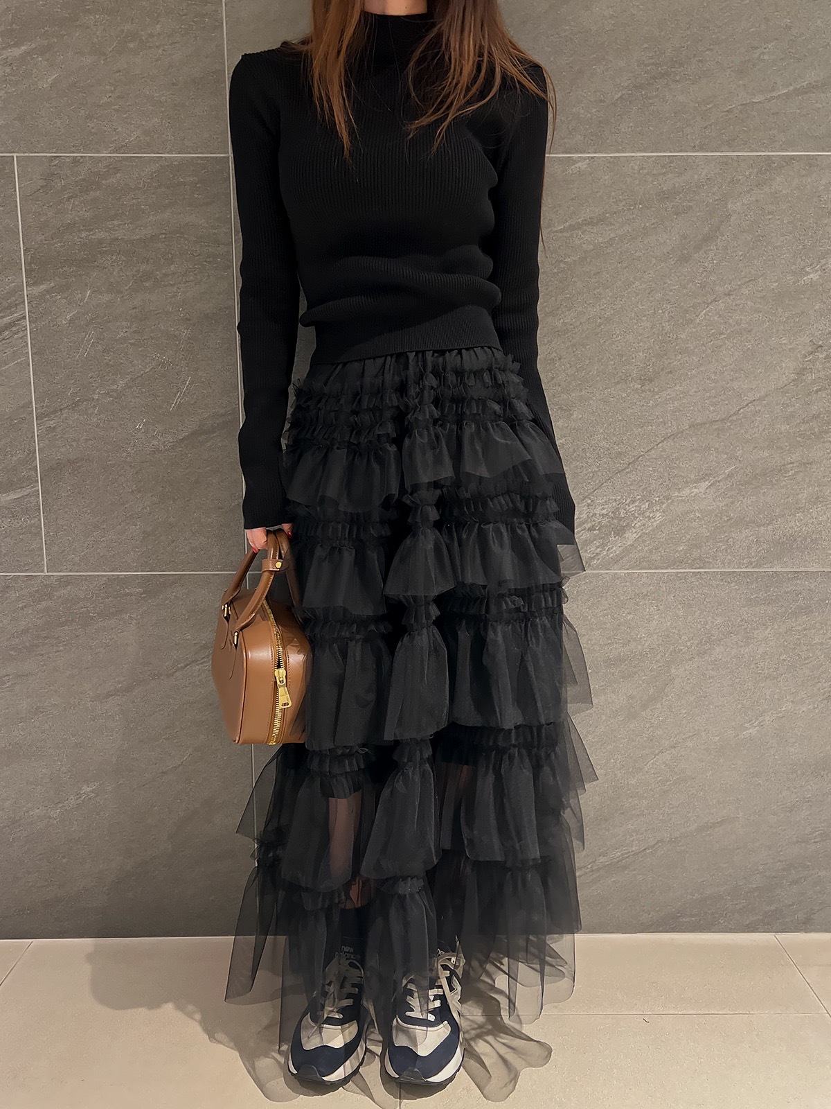 한국 세련된 여름 달콤한 기질 하이 웨이스트 다목적 레이어링 메쉬 케이크 스커트 여성용 롱 스커트