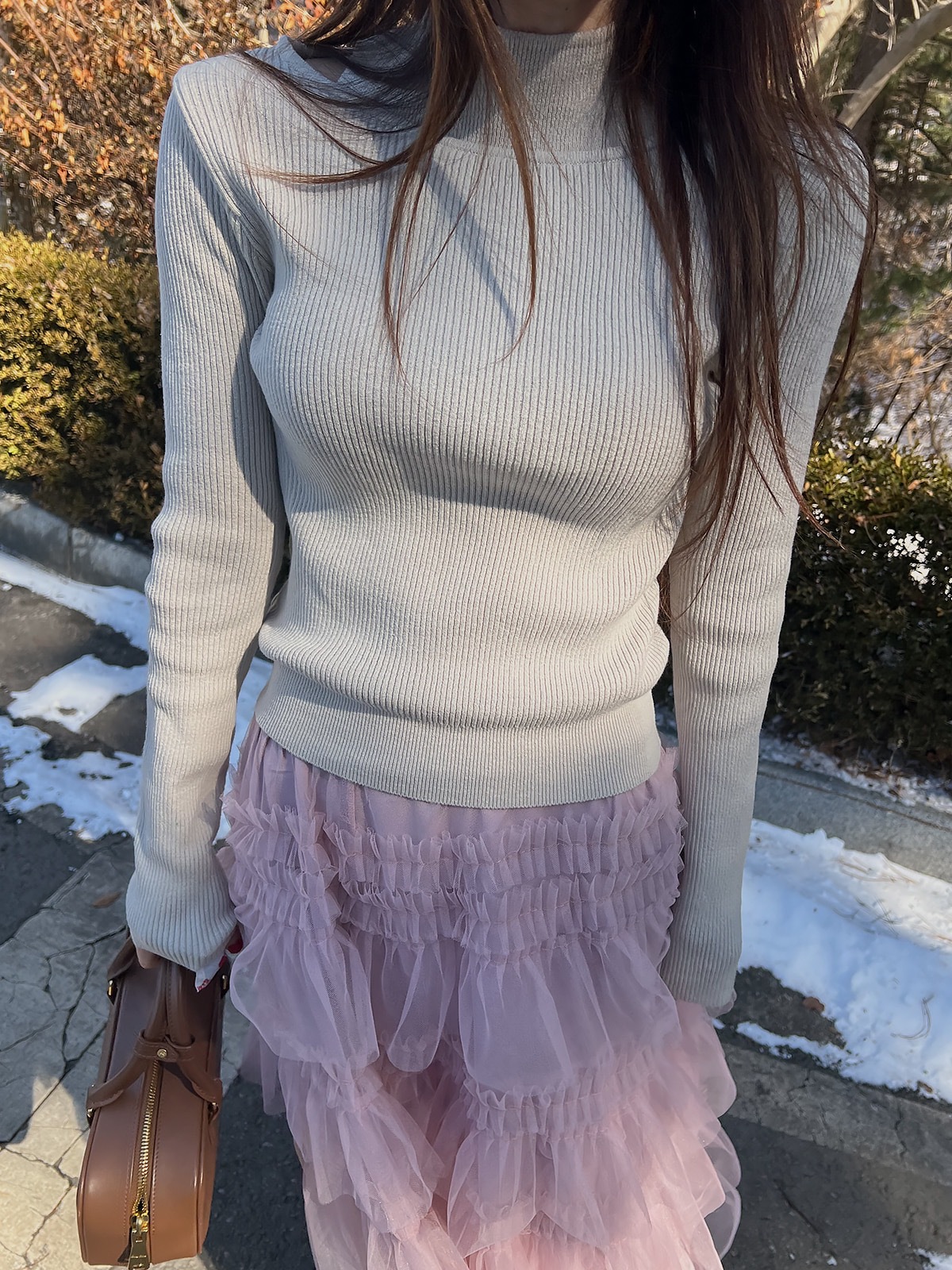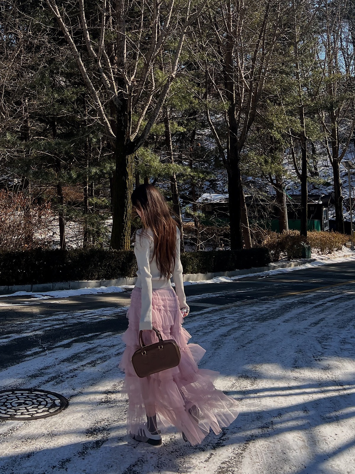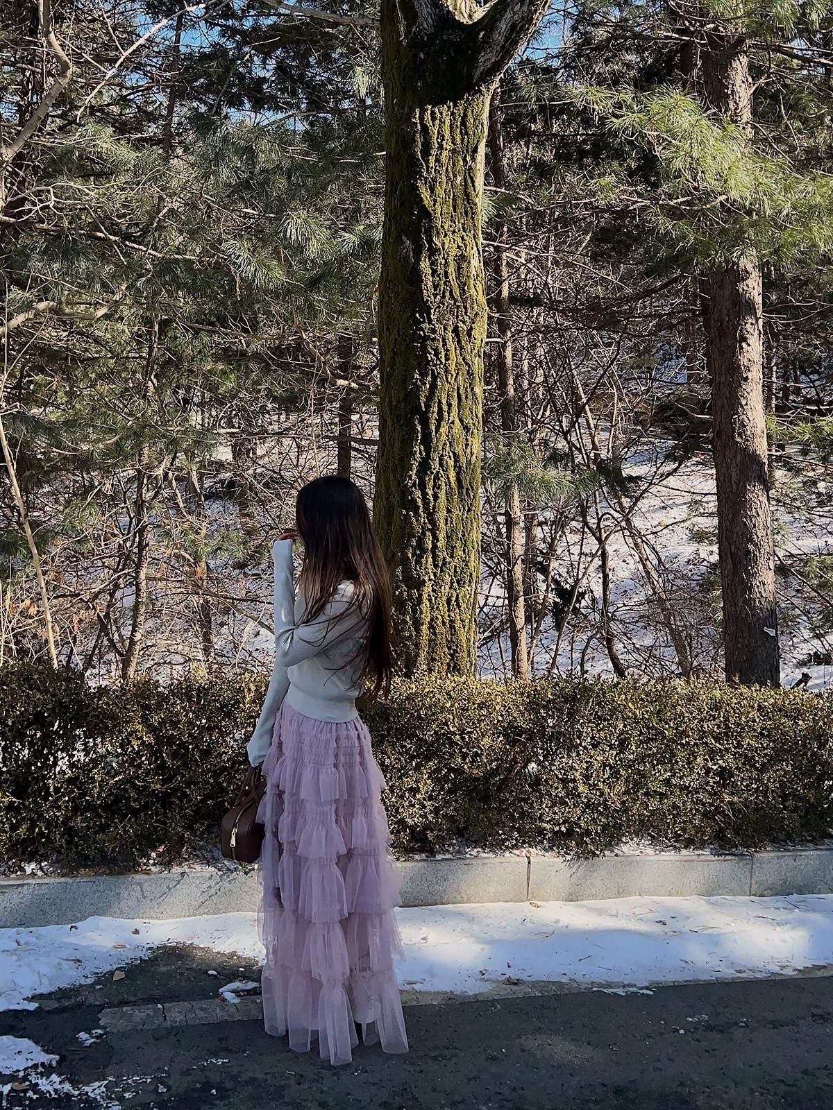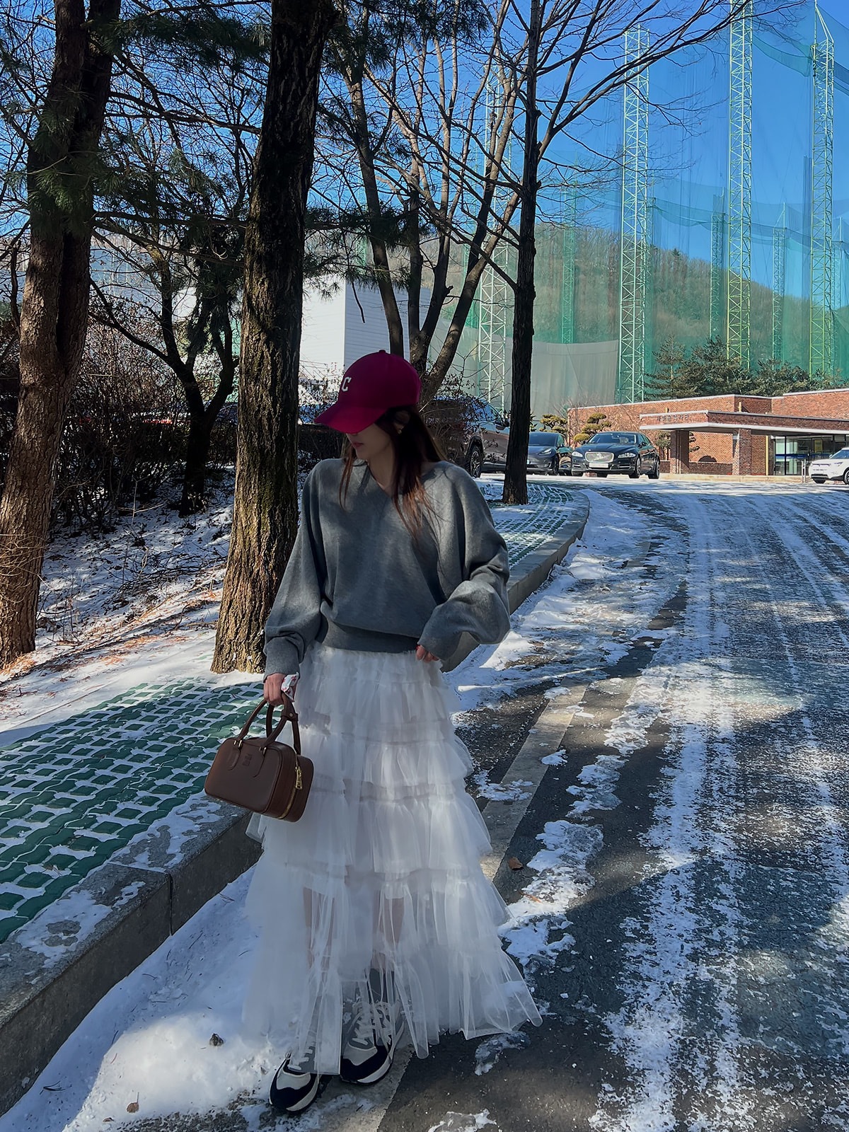 한국 세련된 여름 달콤한 기질 하이 웨이스트 다목적 레이어링 메쉬 케이크 스커트 여성용 롱 스커트