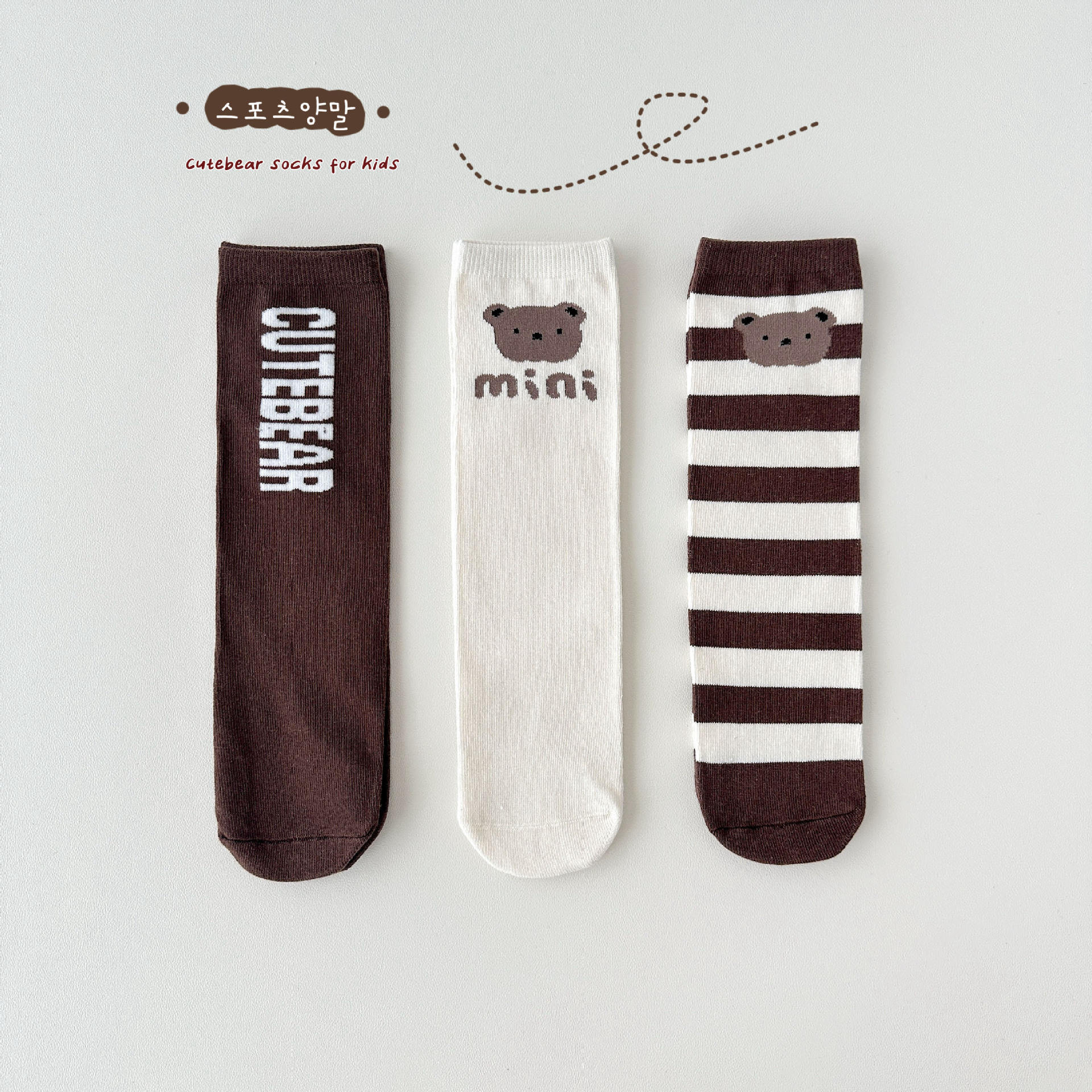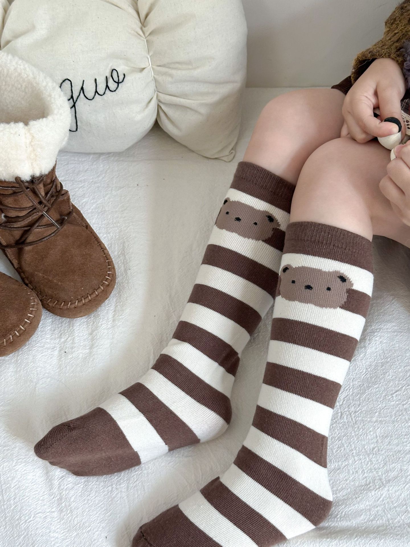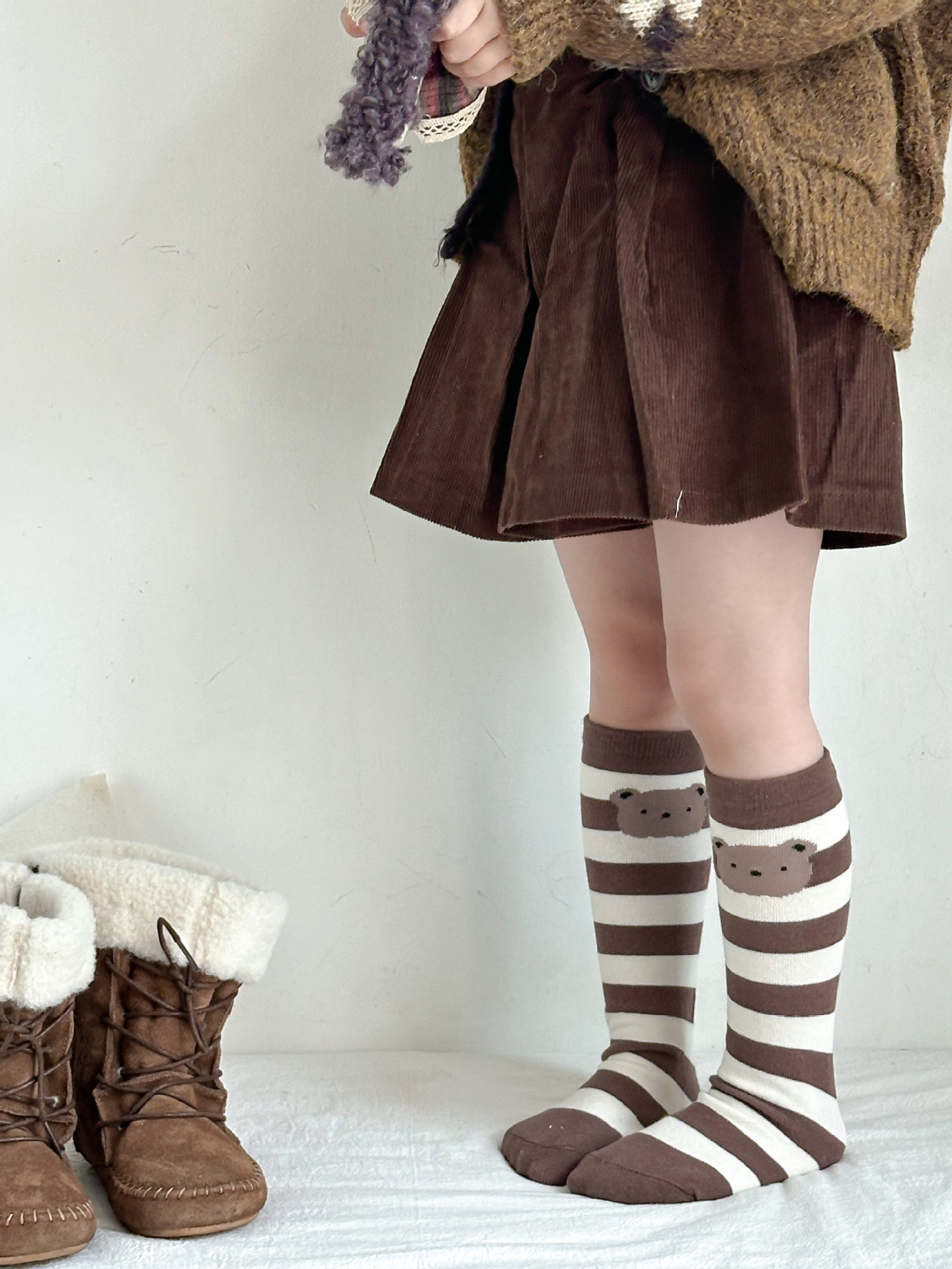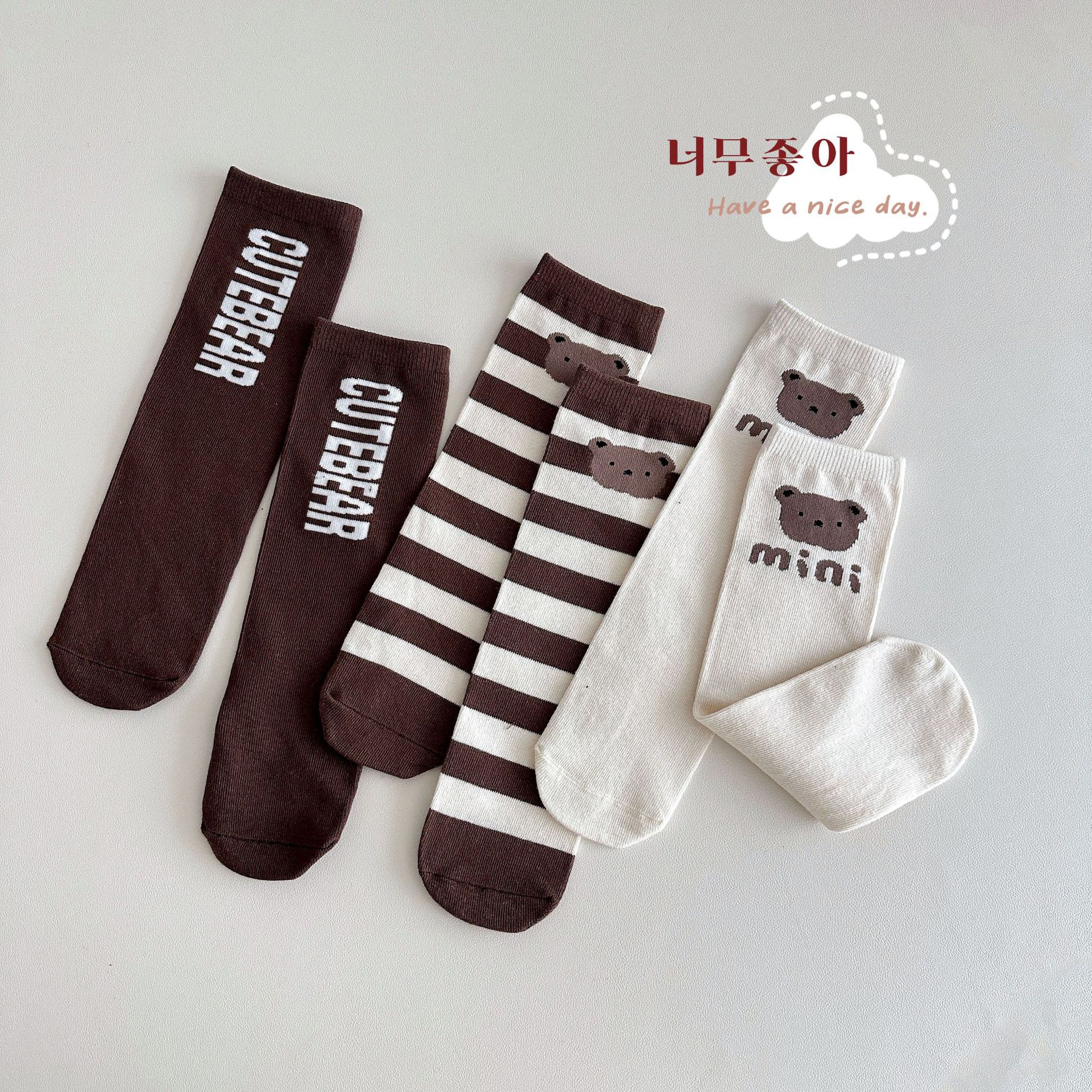 Sun Miss 어린이 양말 가을, 겨울 한국 스타일 긴면 양말 소년과 소녀를위한 귀여운 만화 곰 줄무늬 다리 양말
