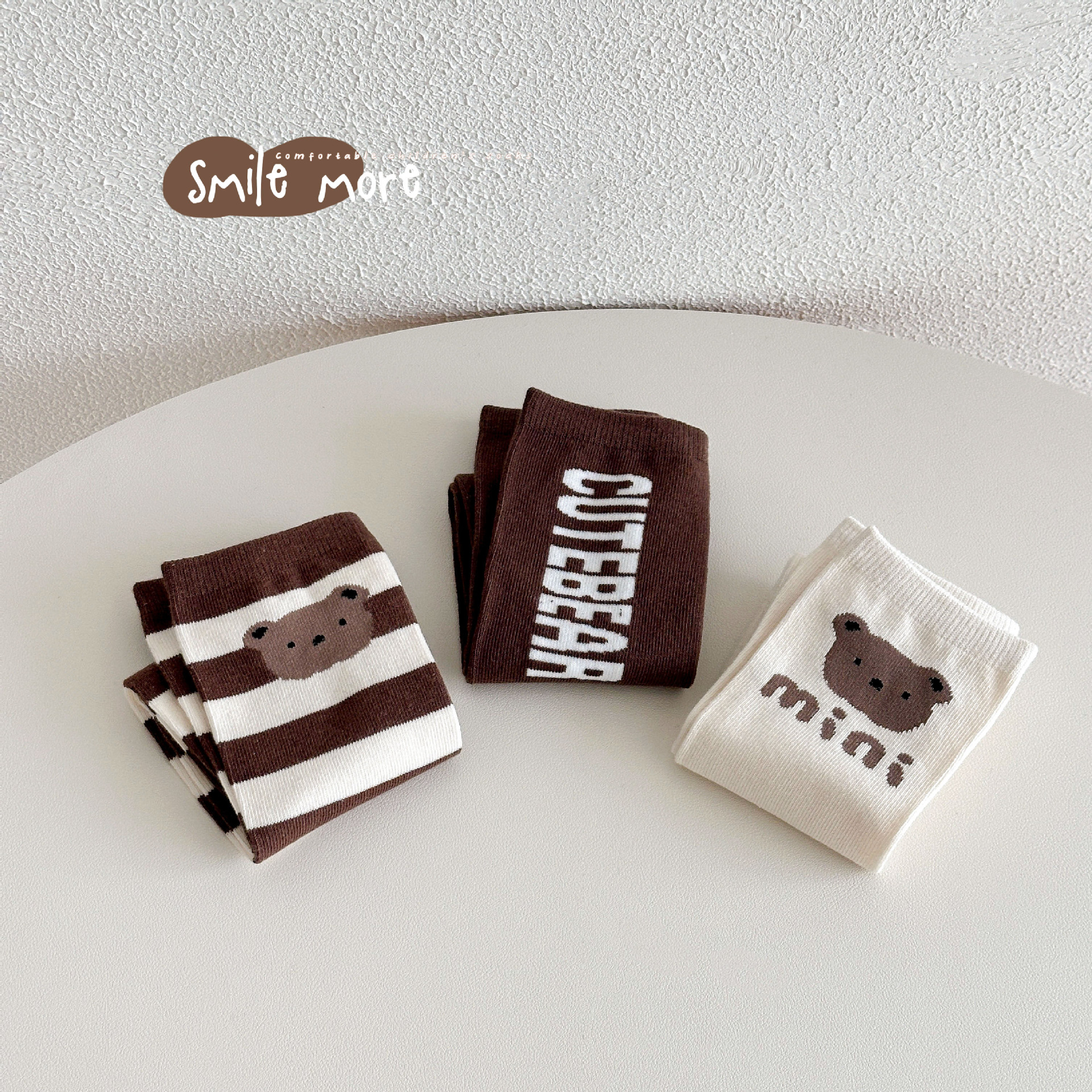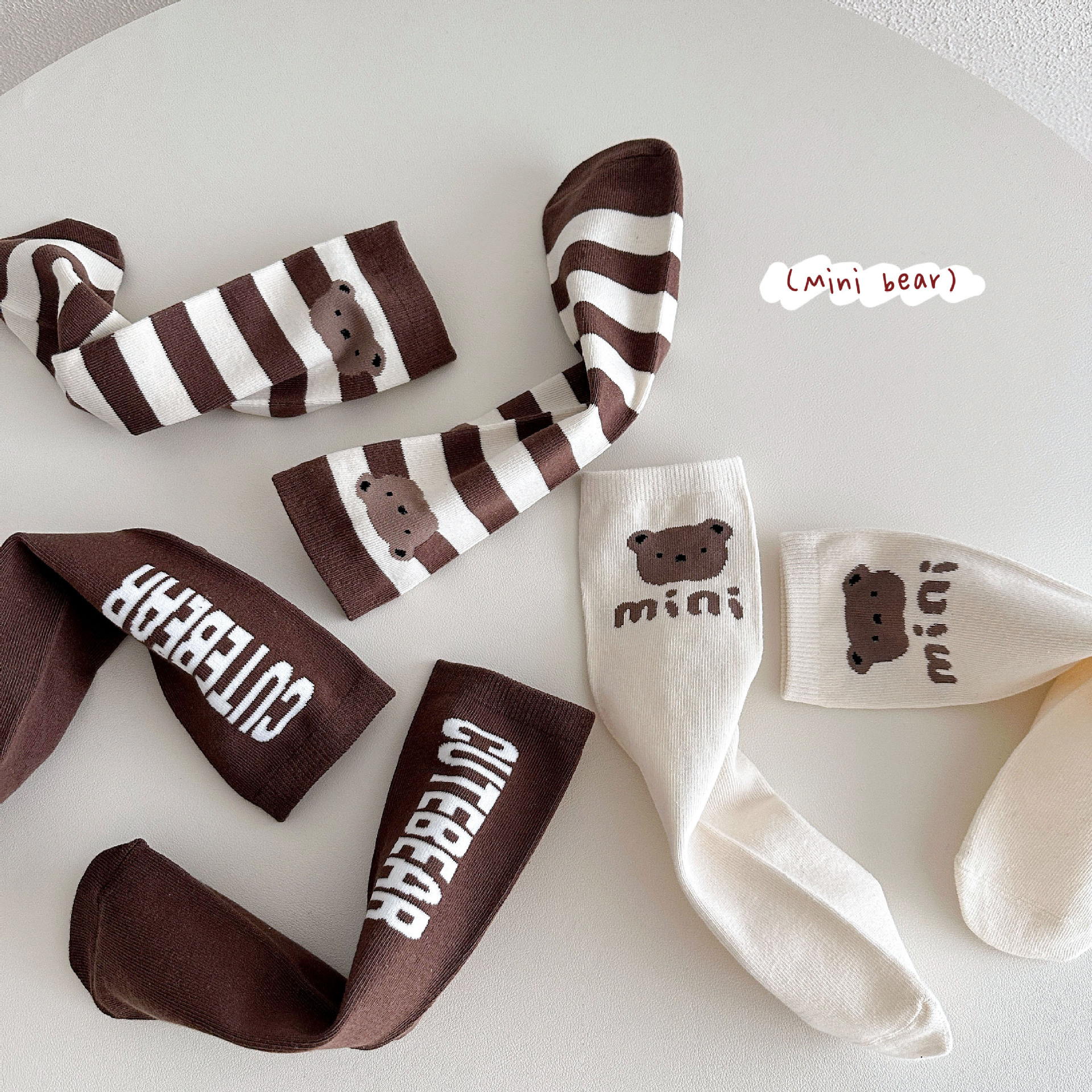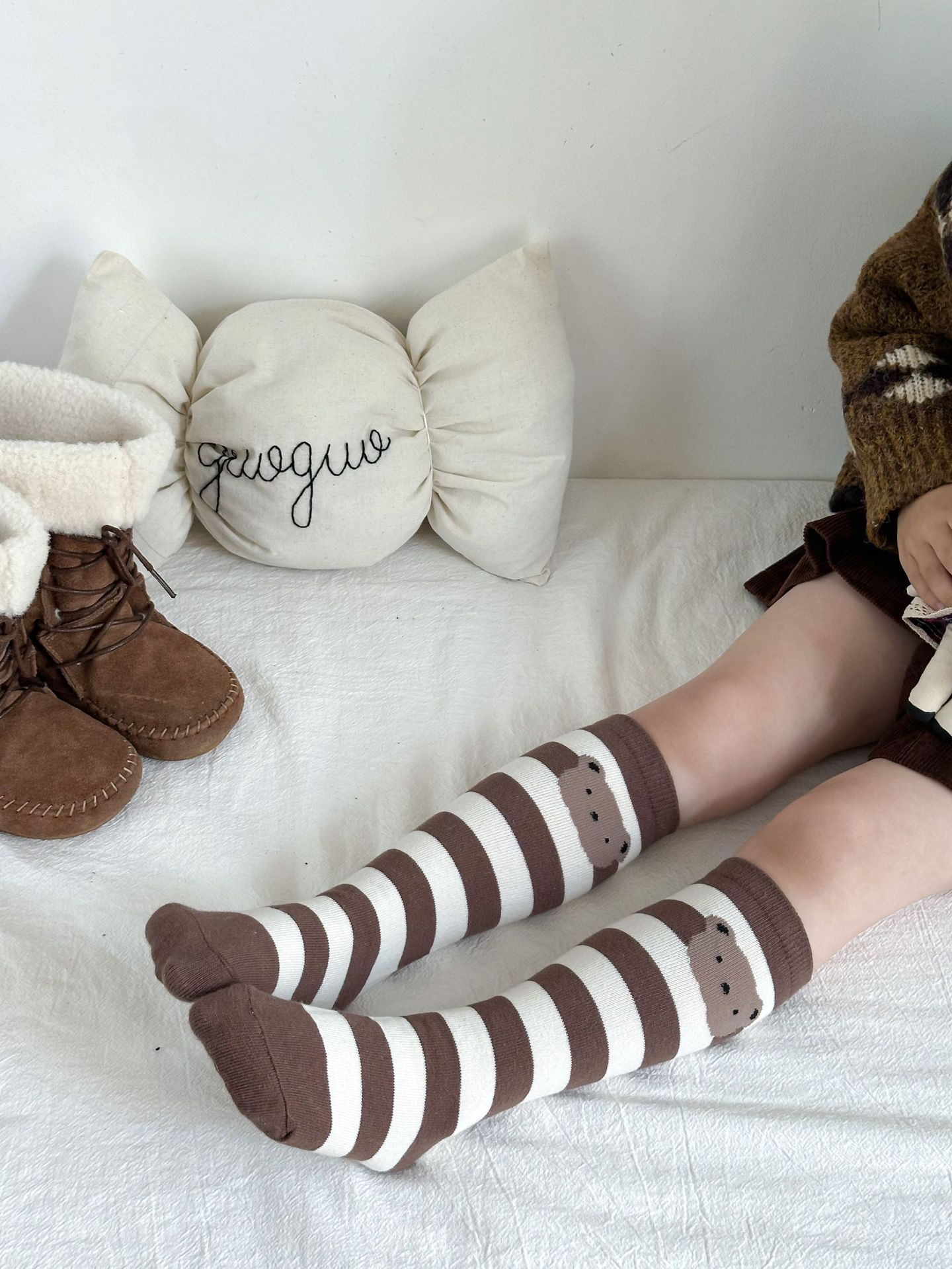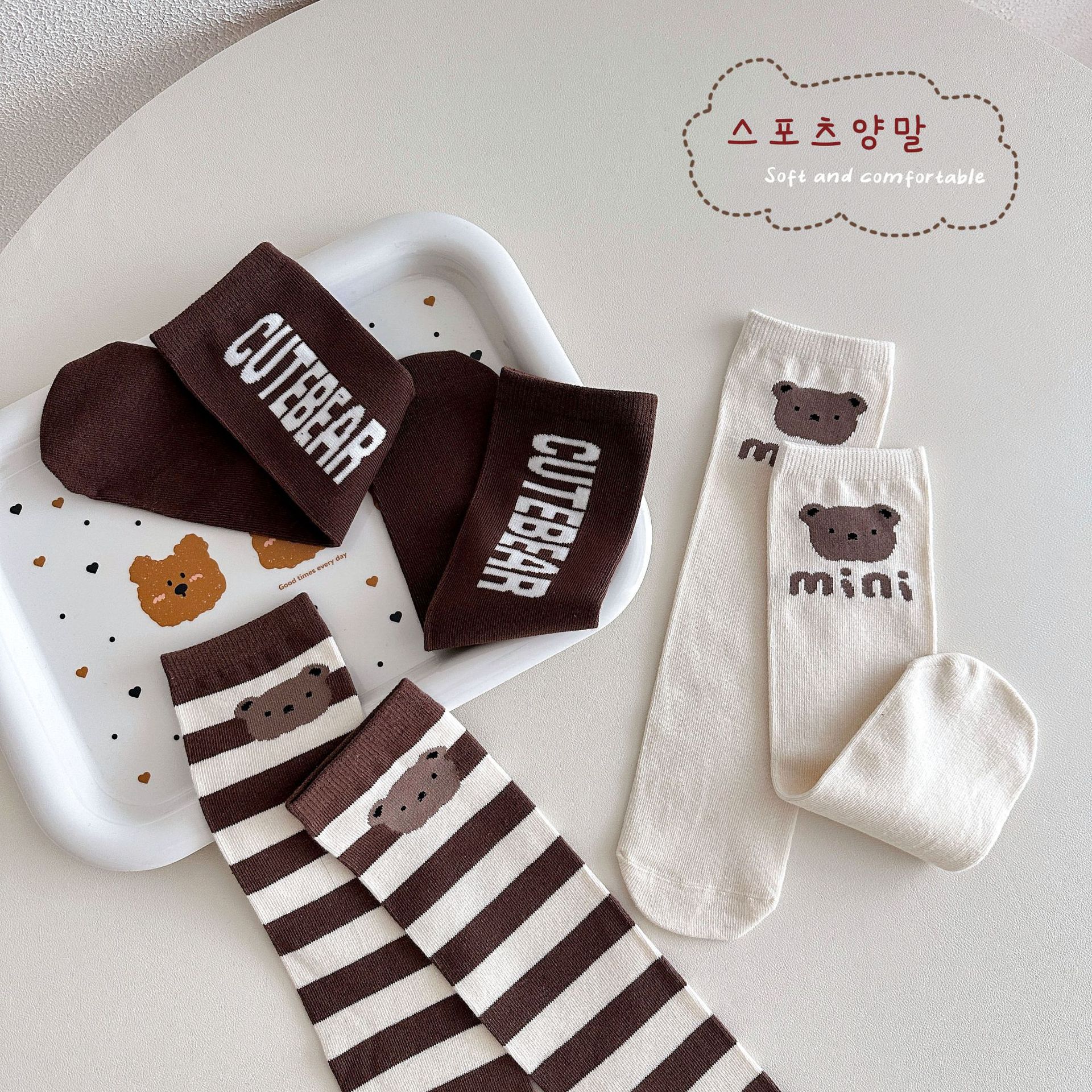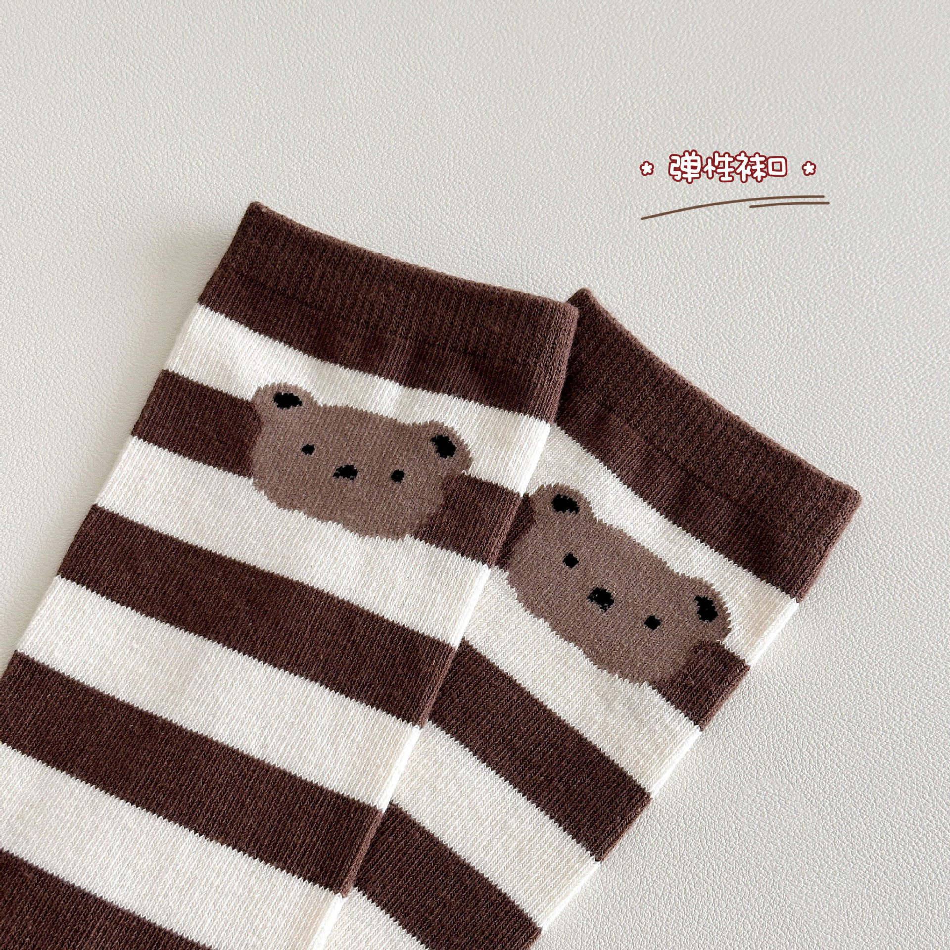 Sun Miss 어린이 양말 가을, 겨울 한국 스타일 긴면 양말 소년과 소녀를위한 귀여운 만화 곰 줄무늬 다리 양말