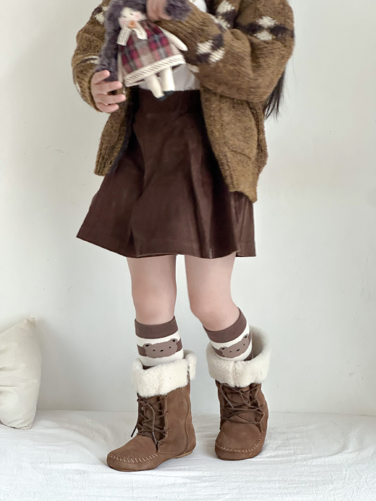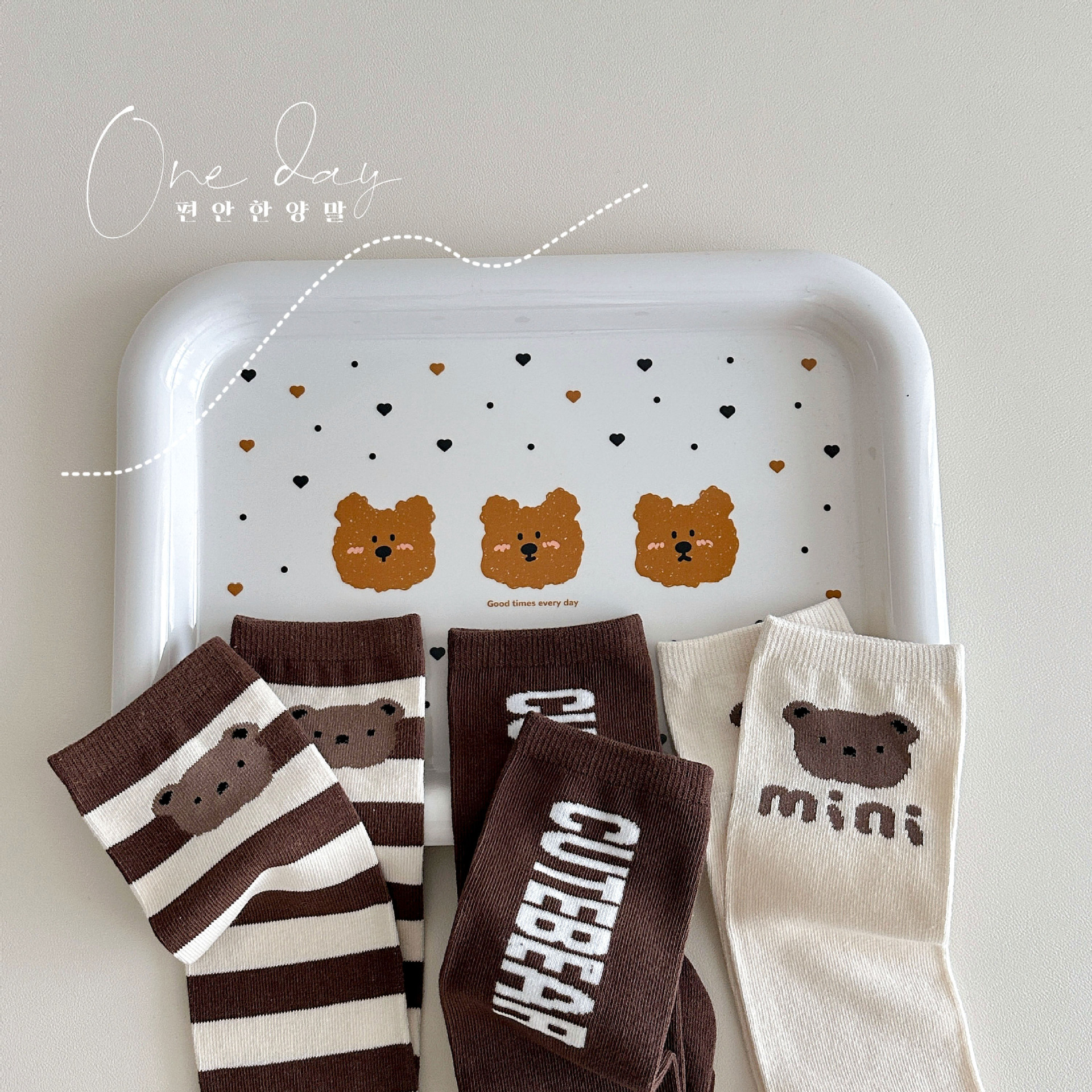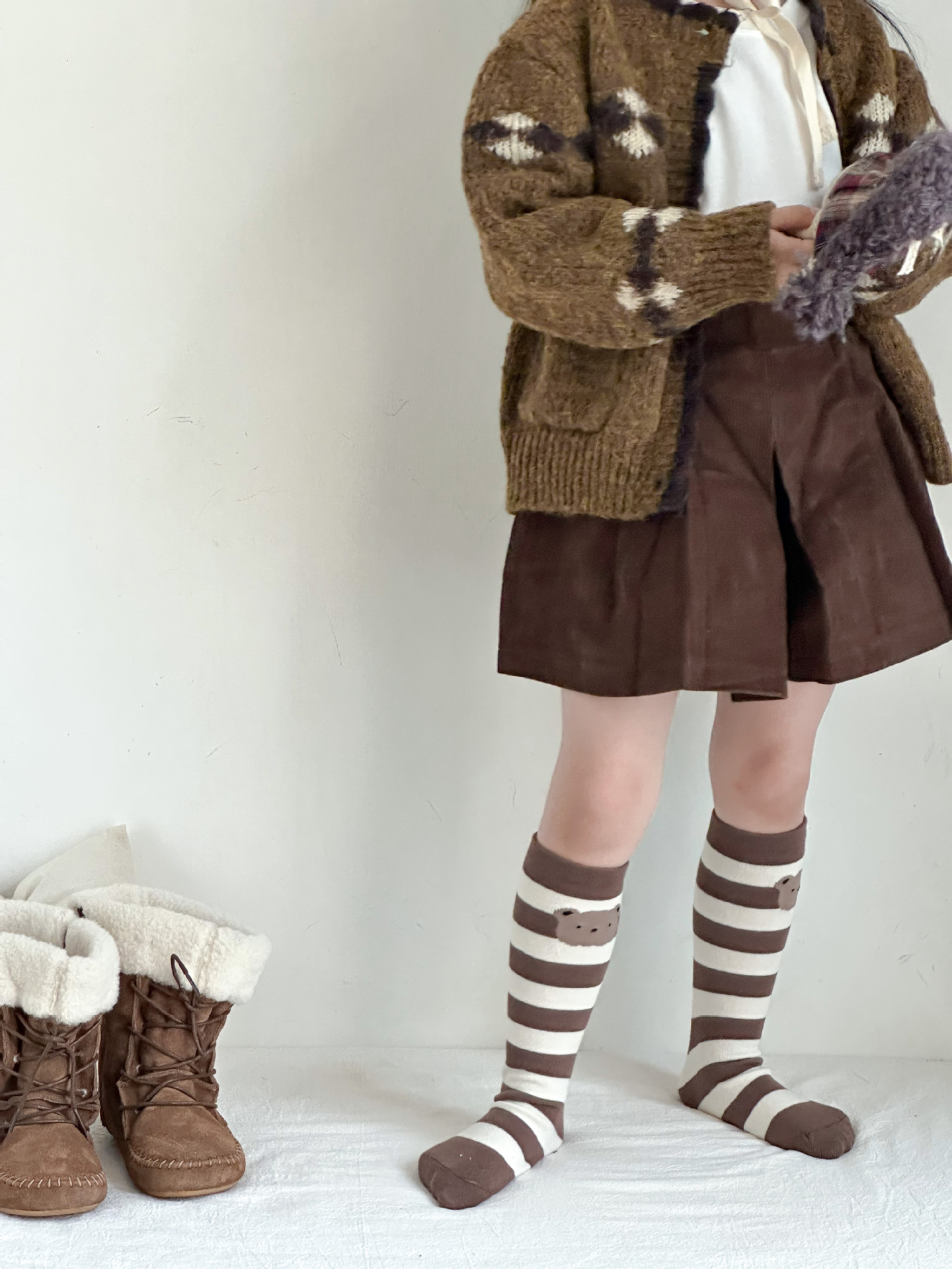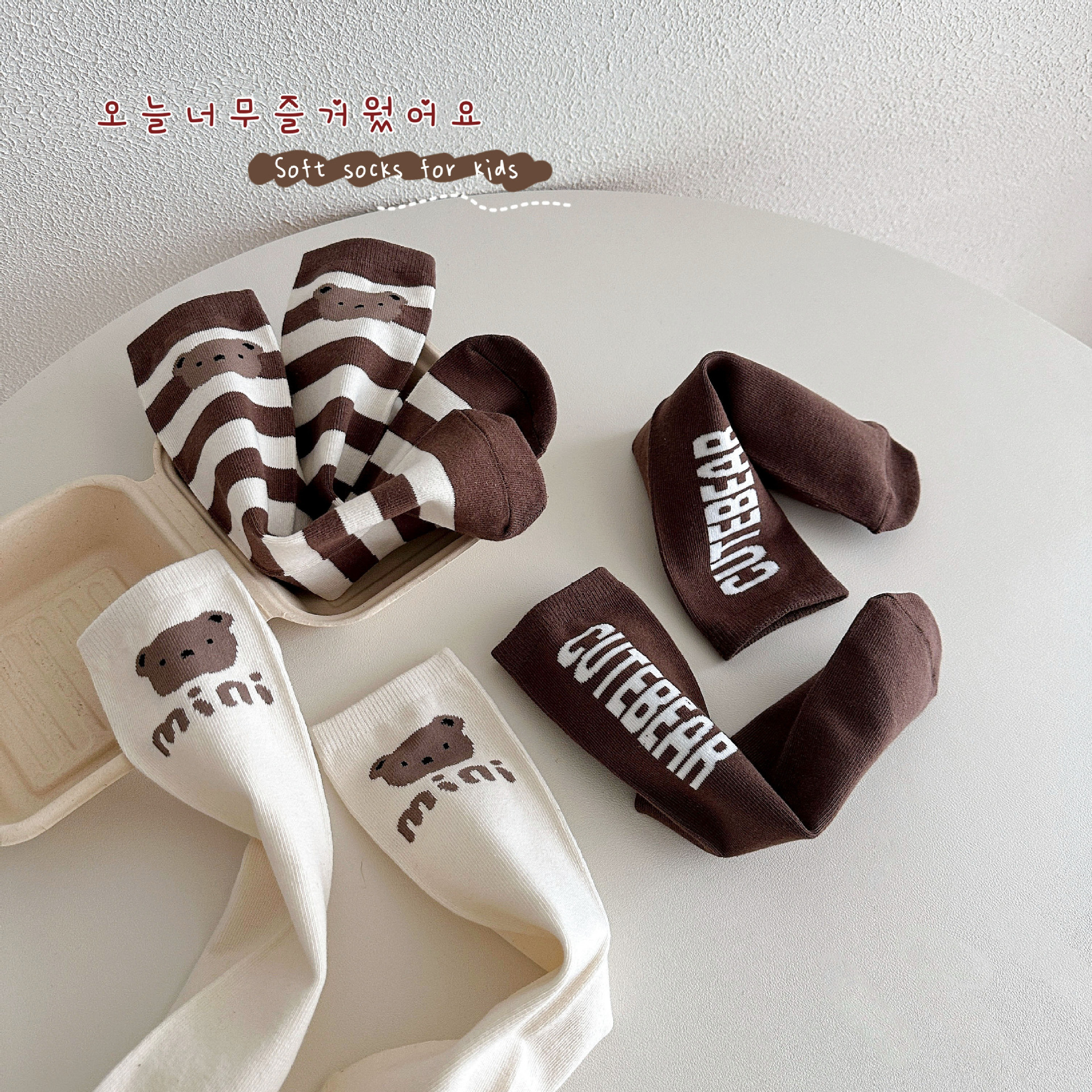 Sun Miss 어린이 양말 가을, 겨울 한국 스타일 긴면 양말 소년과 소녀를위한 귀여운 만화 곰 줄무늬 다리 양말