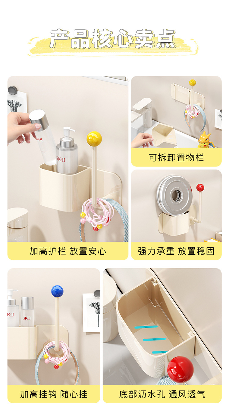 구멍이 없는 수납 선반, 욕실 수납 선반, 휴대용 욕실 벽걸이 수납, 탈착식 수납 선반