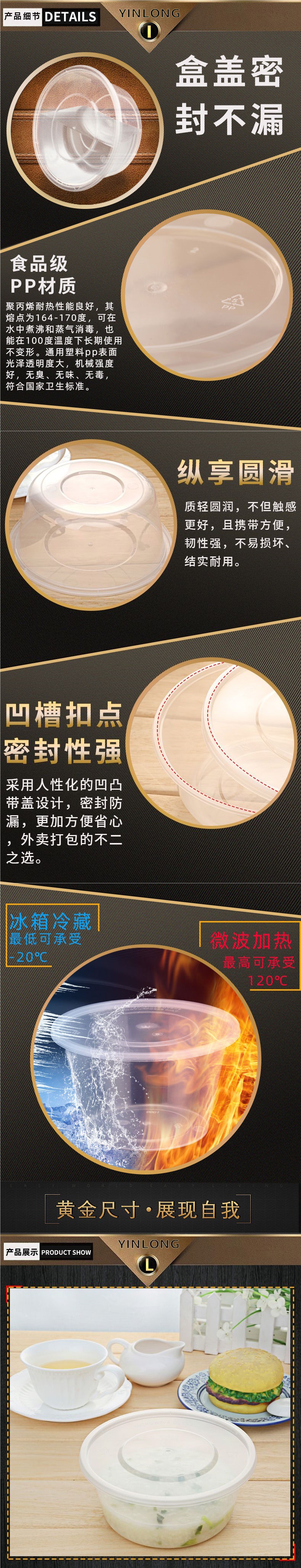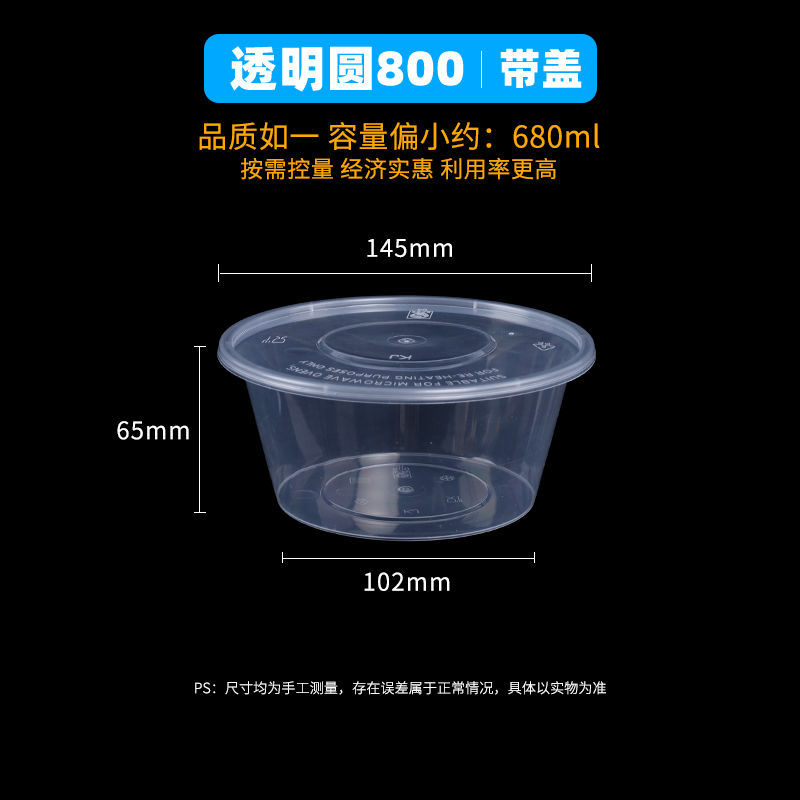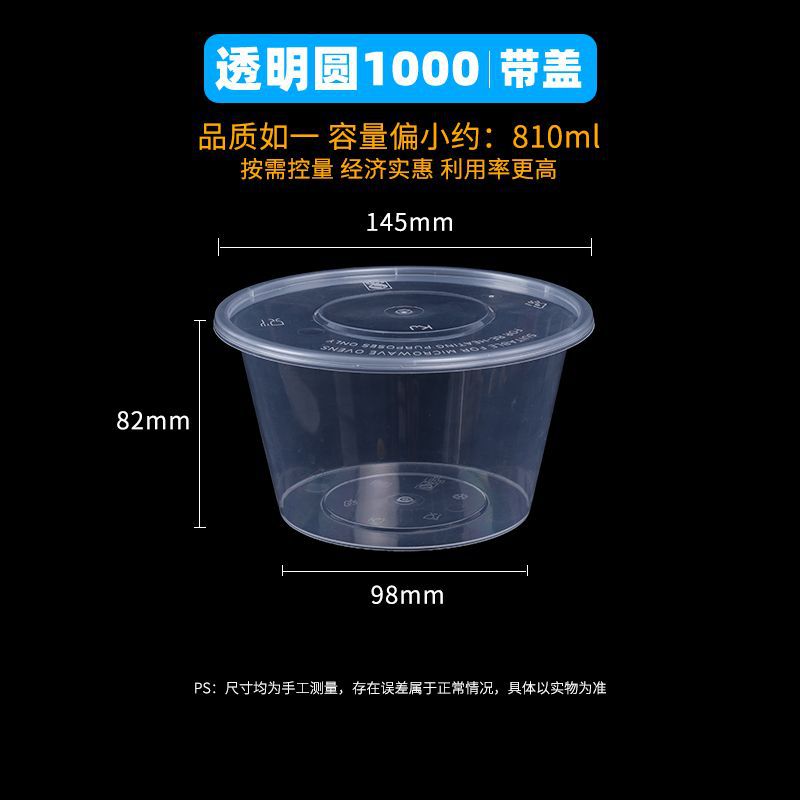 둥근 일회용 도시락 상자 플라스틱 포장 두꺼운 투명 테이크 아웃 도시락 뚜껑이있는 패스트 푸드 수프 그릇 도매스토어 가기