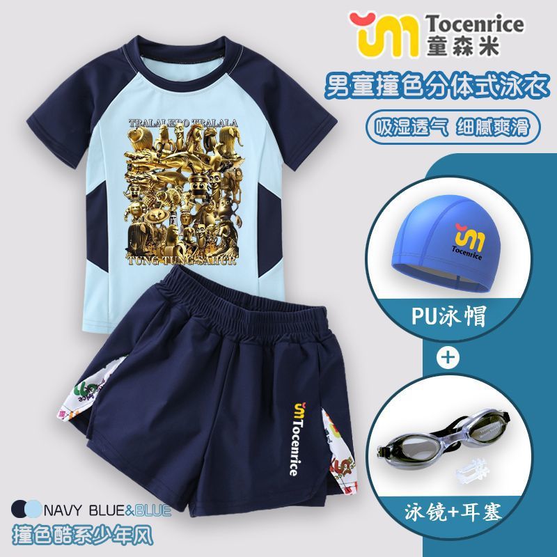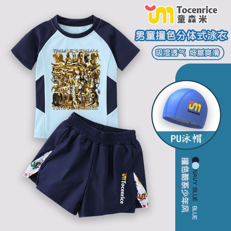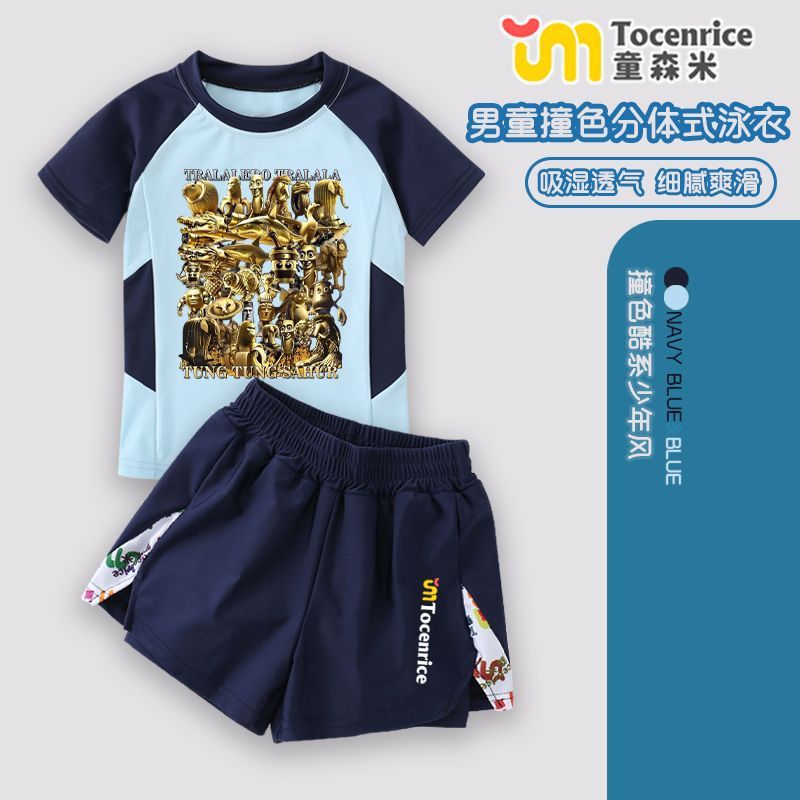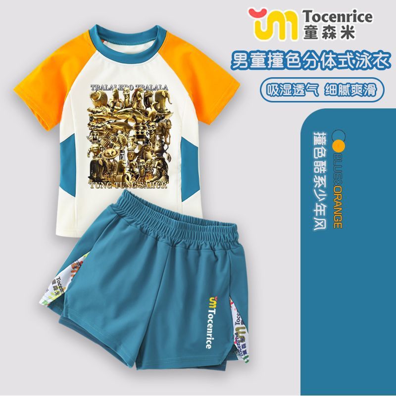 tungtungsahur Tongtongge 미국 골드 에디션 Shanhaijing 어린이 수영복 스플릿 소년 수영 트렁크 세트 7스토어 가기