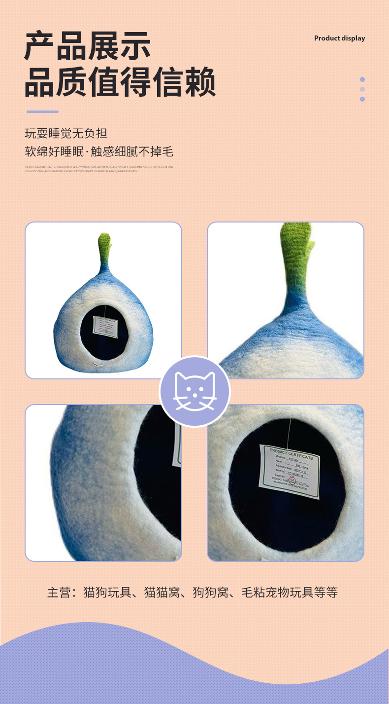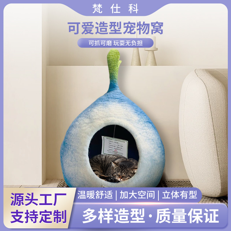 국경을 넘는 인기 상품 양모 펠트 고양이 집 네팔 스타일 수제 귀여운 애완동물 고양이 집 애완동물 집 고양이와 강아지 용품스토어 가기