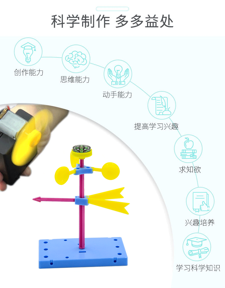 맞춤형 과학 실험 DIY 풍력 풍향계 어린이 교육 장난감 재료 세트 소스 공장 처리스토어 가기