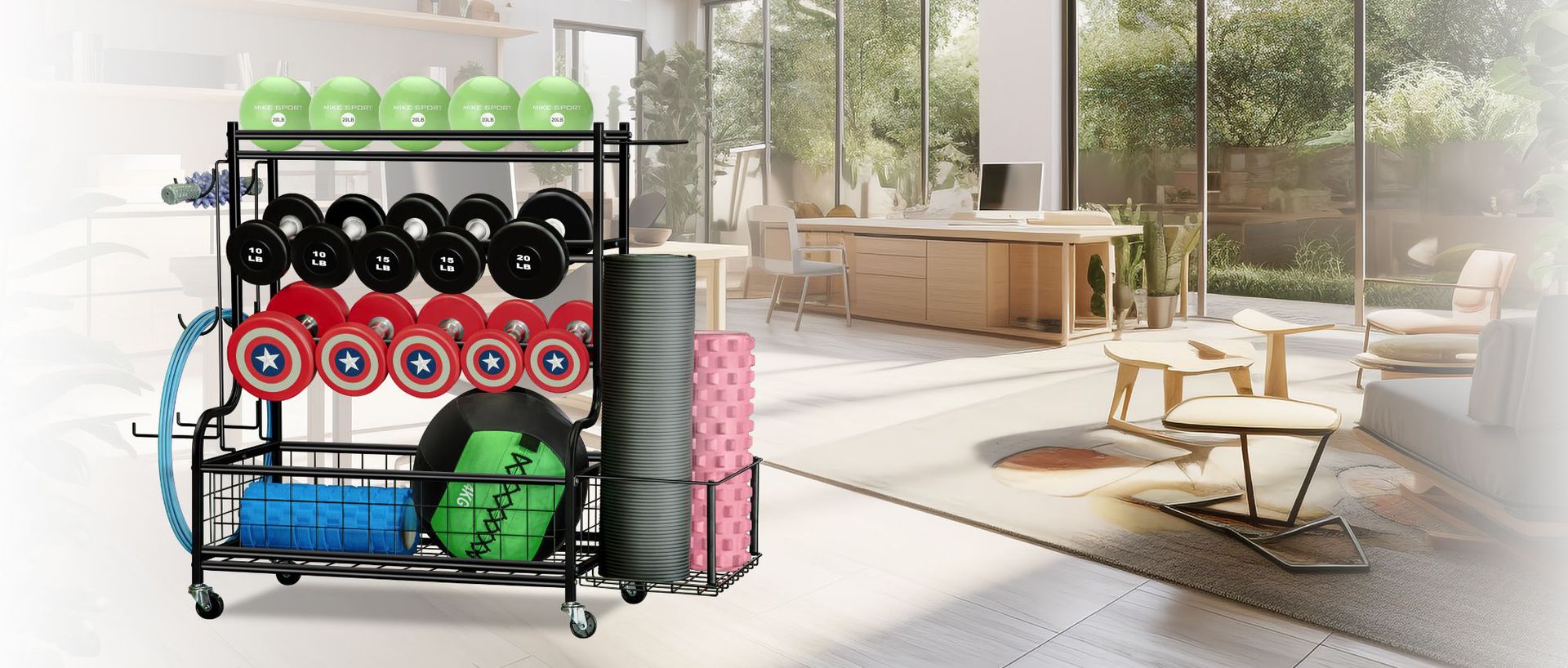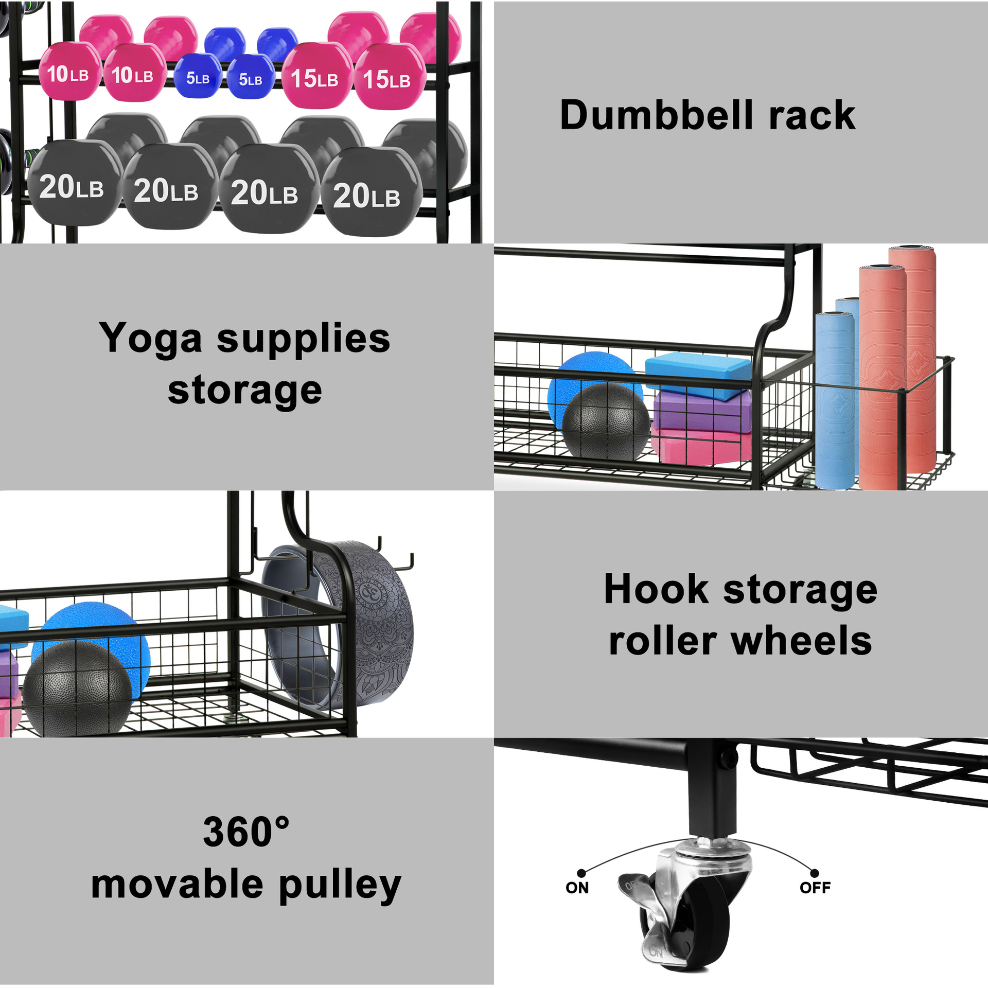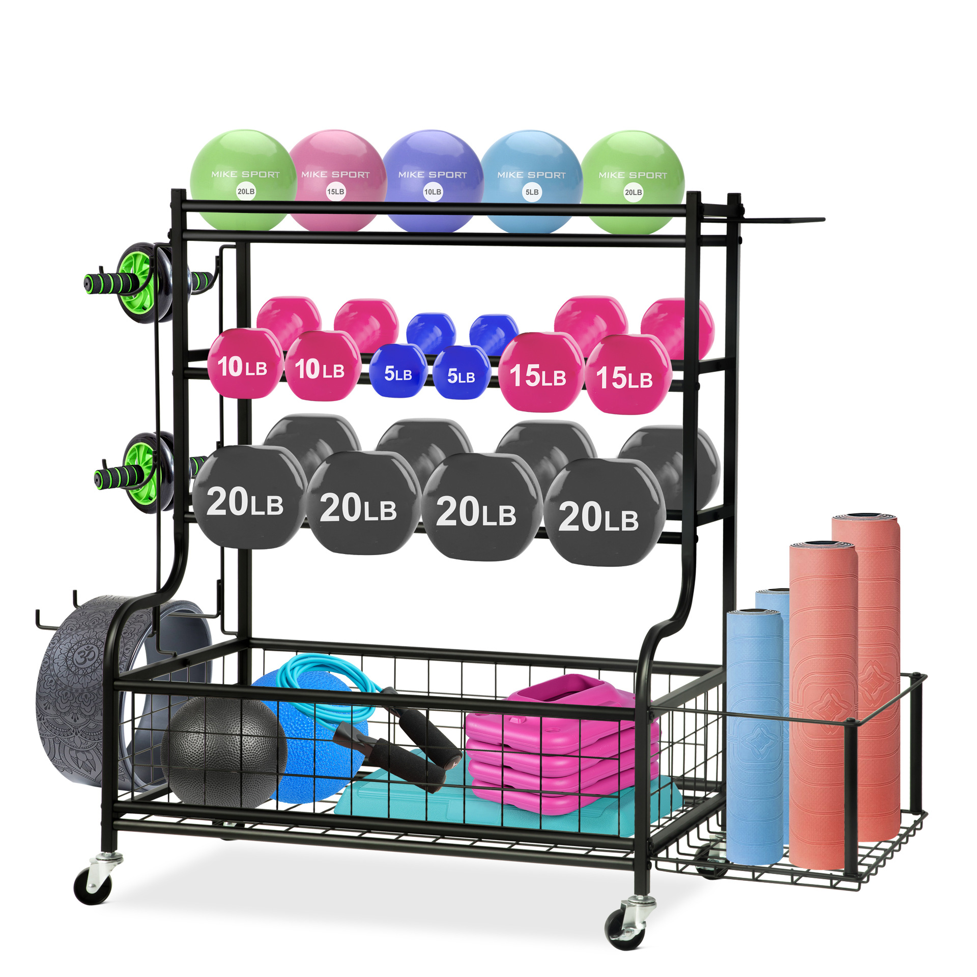 두꺼운 강철 덤벨 랙, 3층 홈 피트니스 장비 보관 랙, 덤벨 농구 줄넘기 보관 랙을 보관할 수 있음