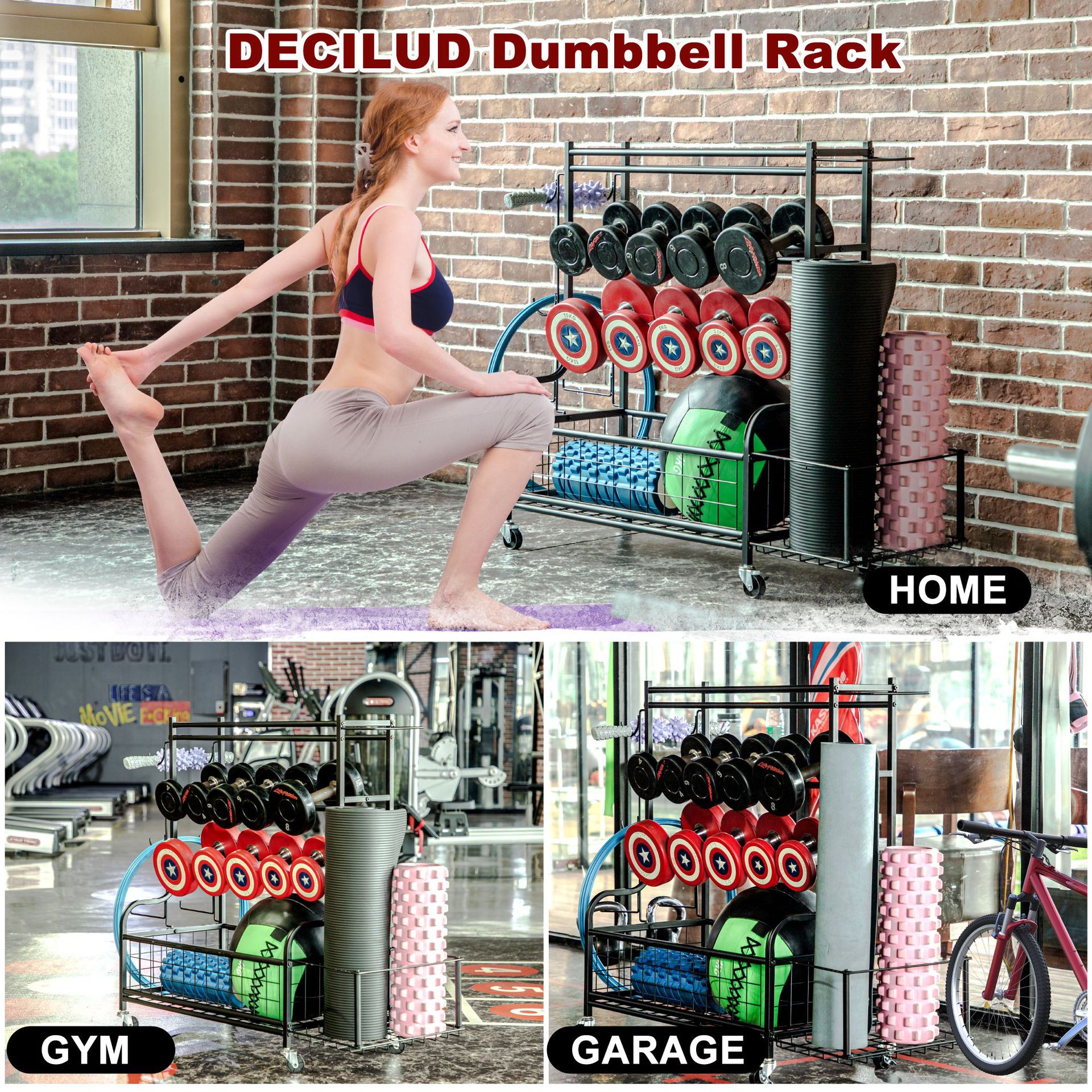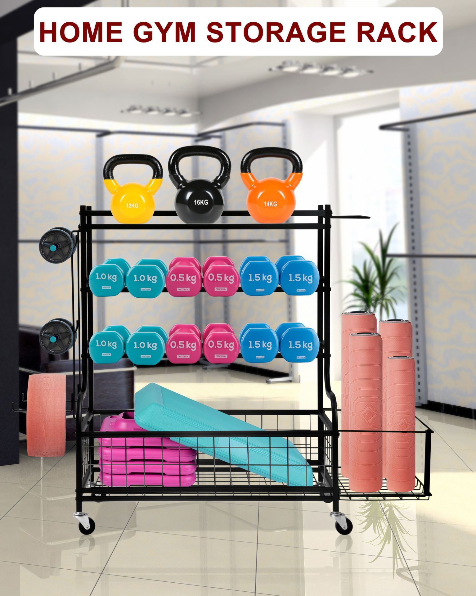 두꺼운 강철 덤벨 랙, 3층 홈 피트니스 장비 보관 랙, 덤벨 농구 줄넘기 보관 랙을 보관할 수 있음스토어 가기