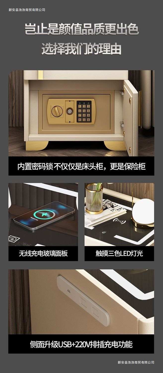 스마트 침대 옆 테이블 안전 다기능 단단한 나무 비밀번호 잠금 보이지 않는 안전 올인원 침실 작은 침대 옆 테이블