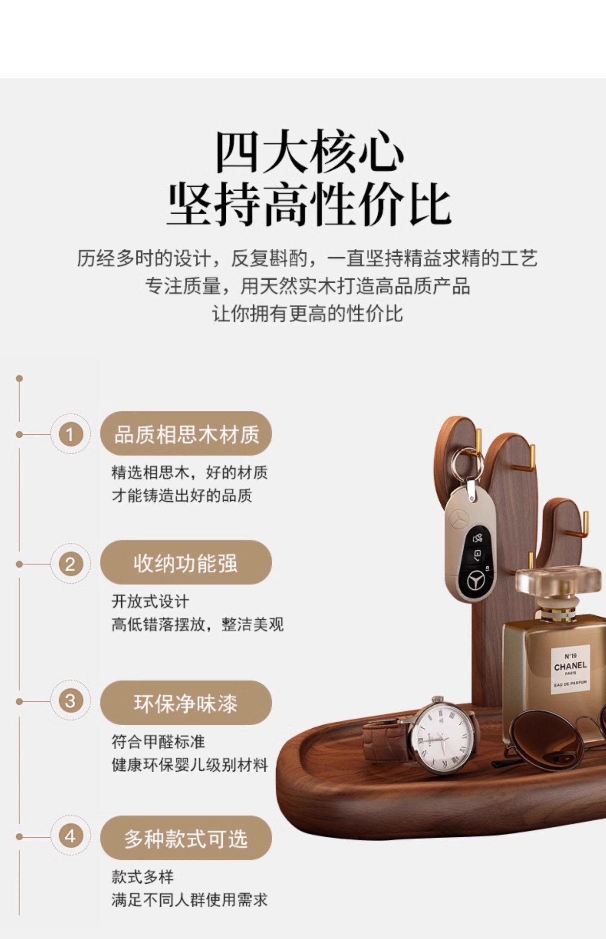 현관 수납 선반, 출입문 열쇠 걸이, 복고풍 스타일 테이블 원목 수납 선반, 장식용 안경 및 시계 진열대