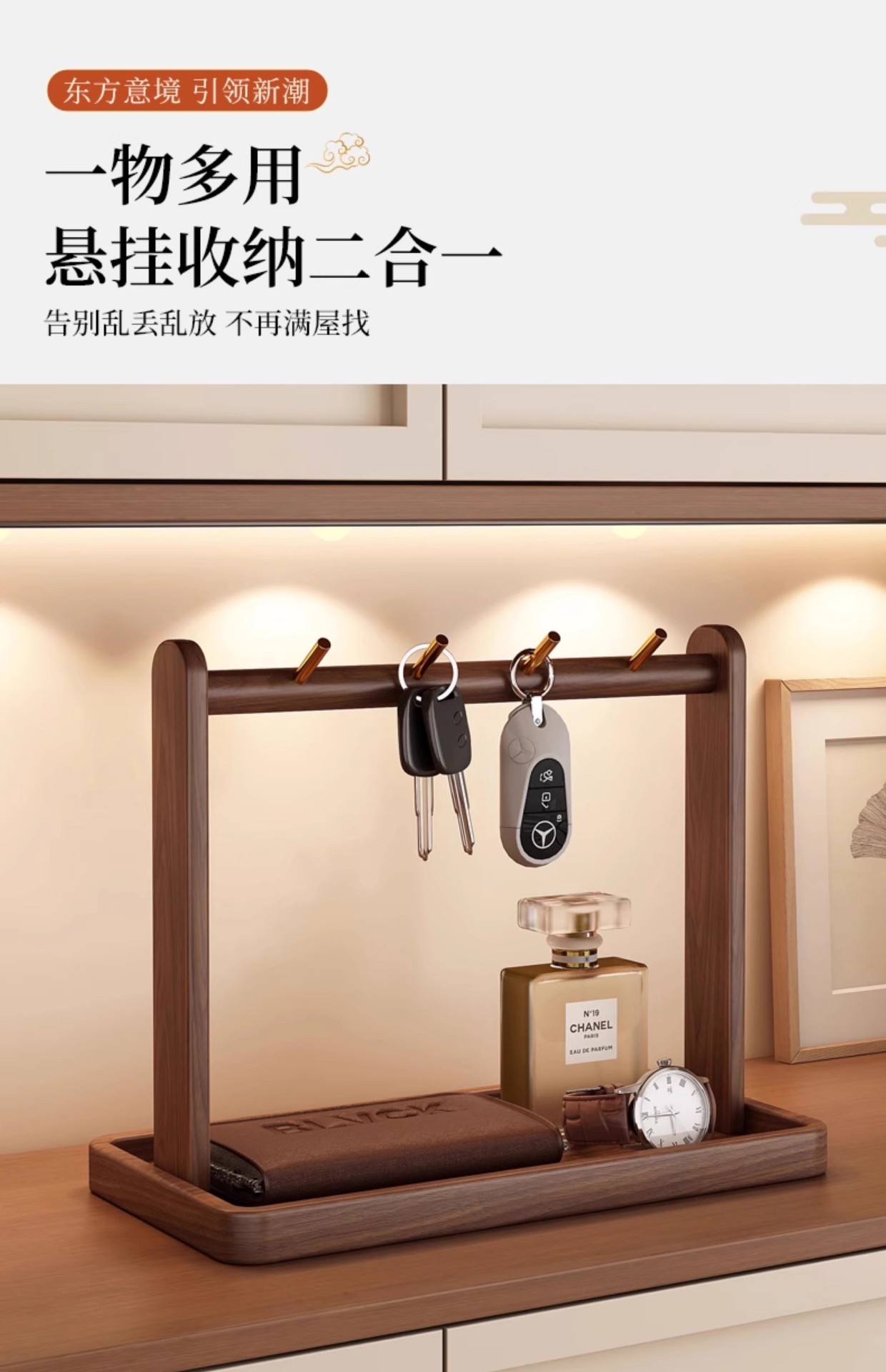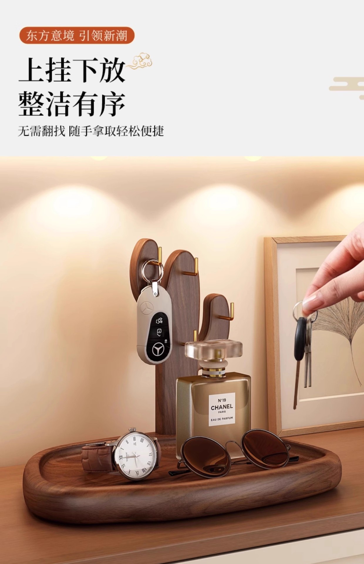현관 수납 선반, 출입문 열쇠 걸이, 복고풍 스타일 테이블 원목 수납 선반, 장식용 안경 및 시계 진열대스토어 가기