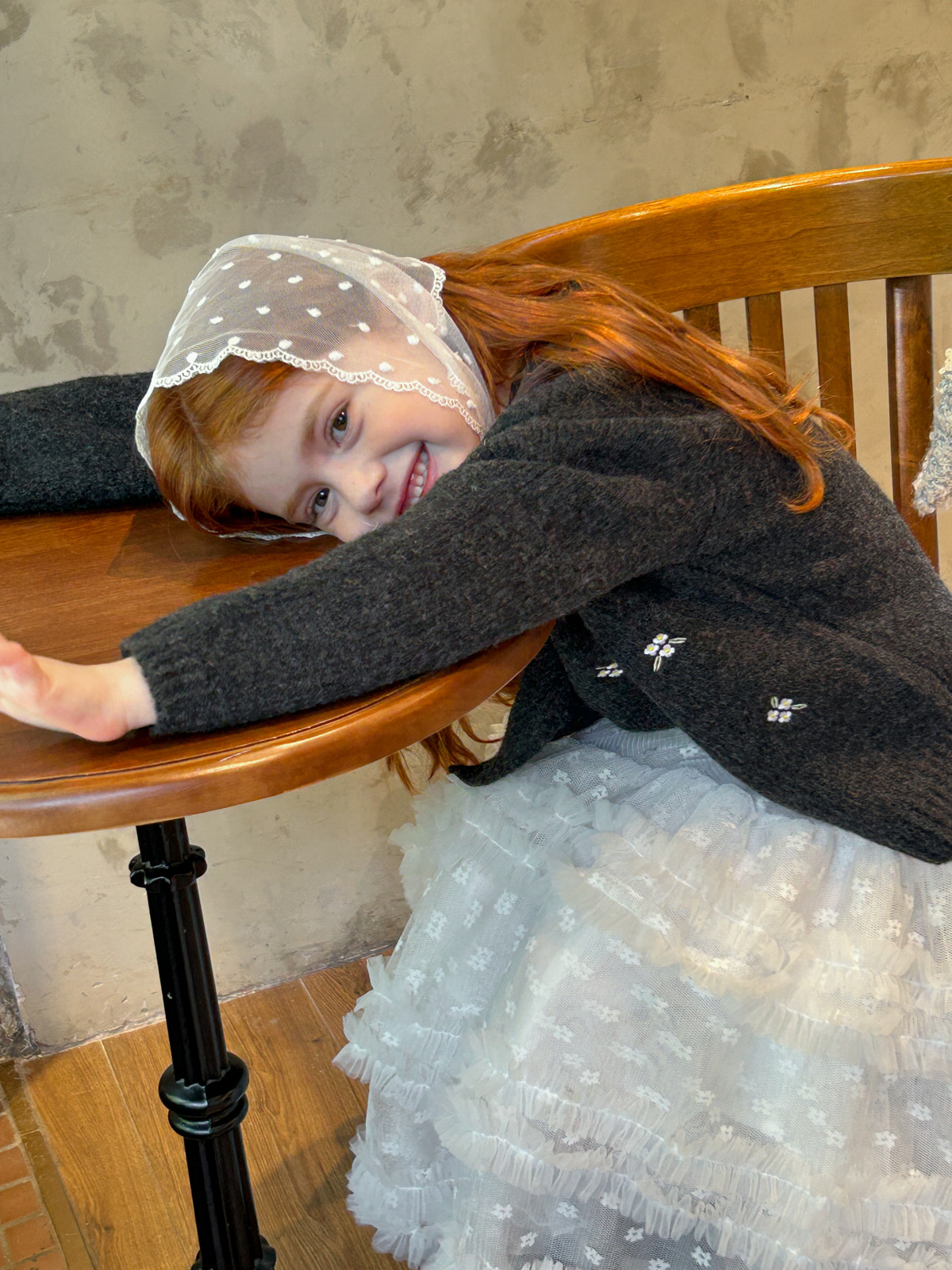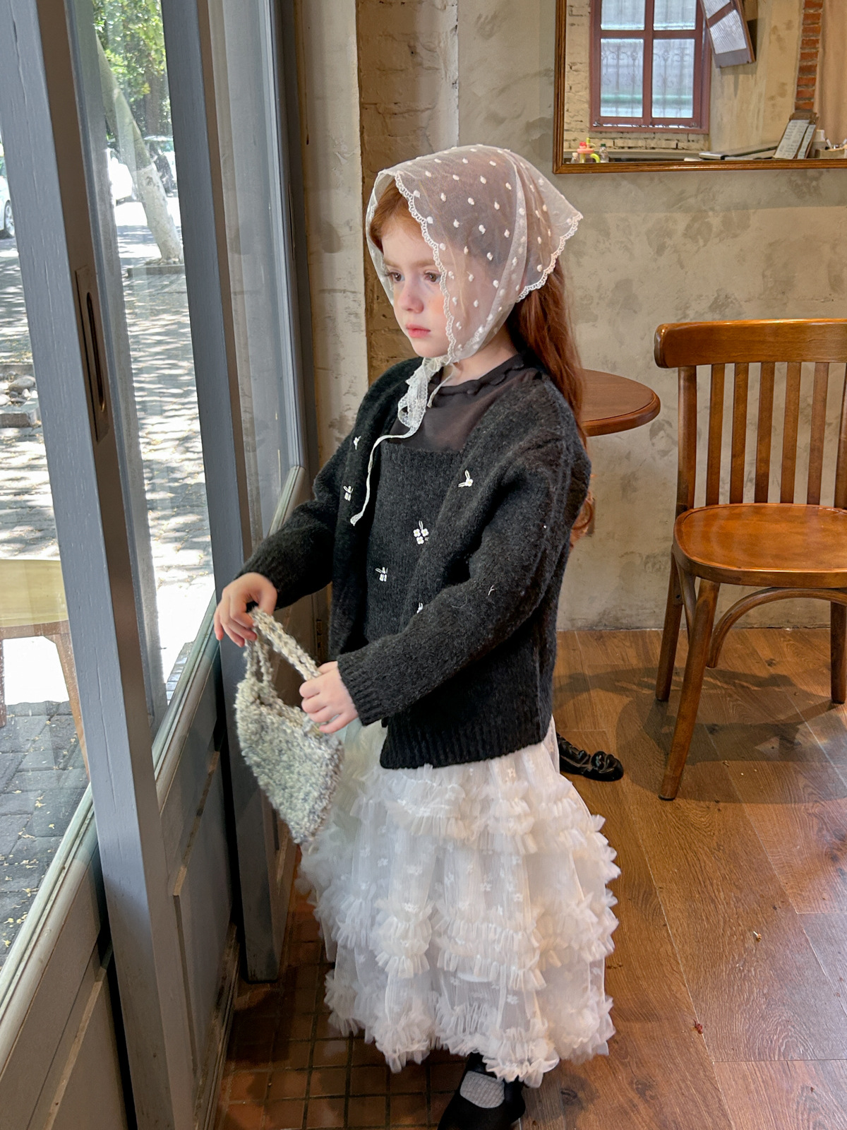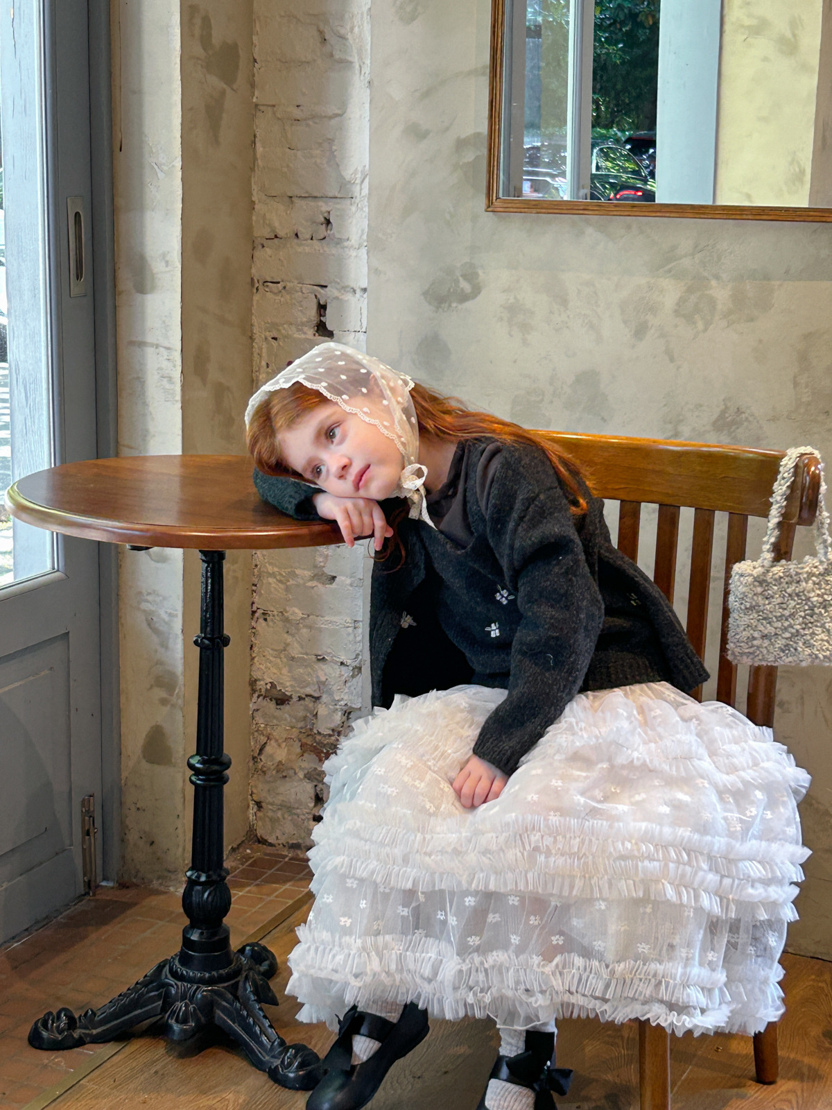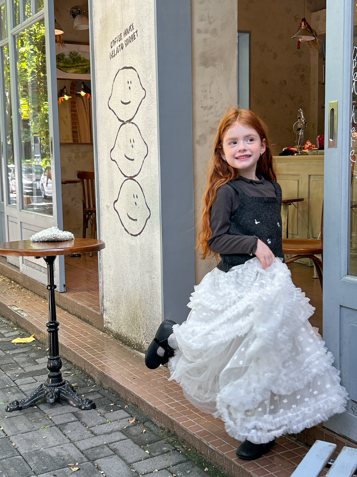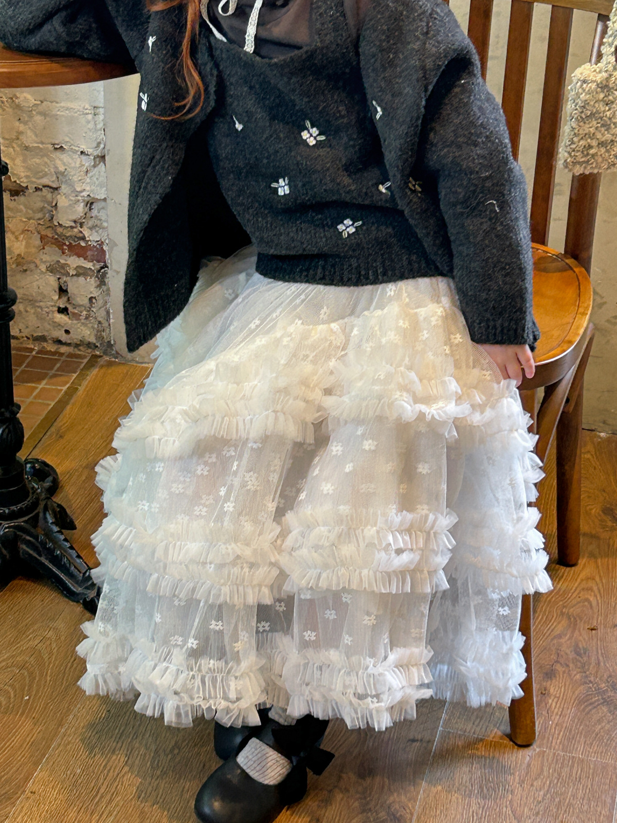 2025 새로운 가을 아동복 한국 스타일 소녀의 레이어드 하프 길이 스커트 달콤한 어린이 레이스 자카드 스커트
