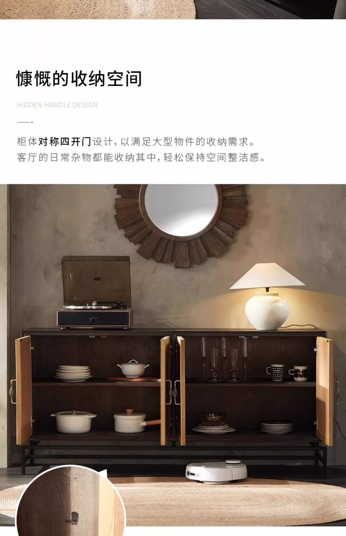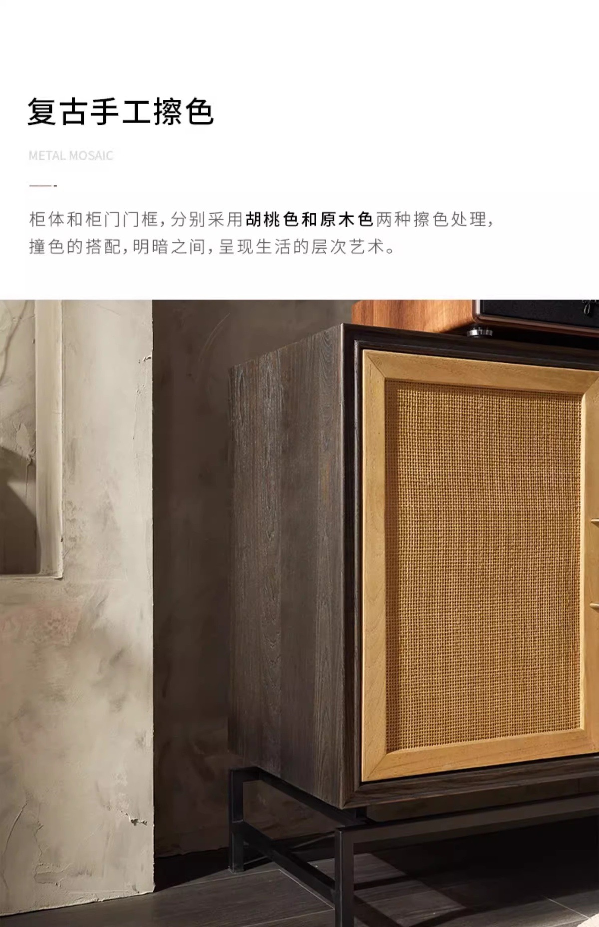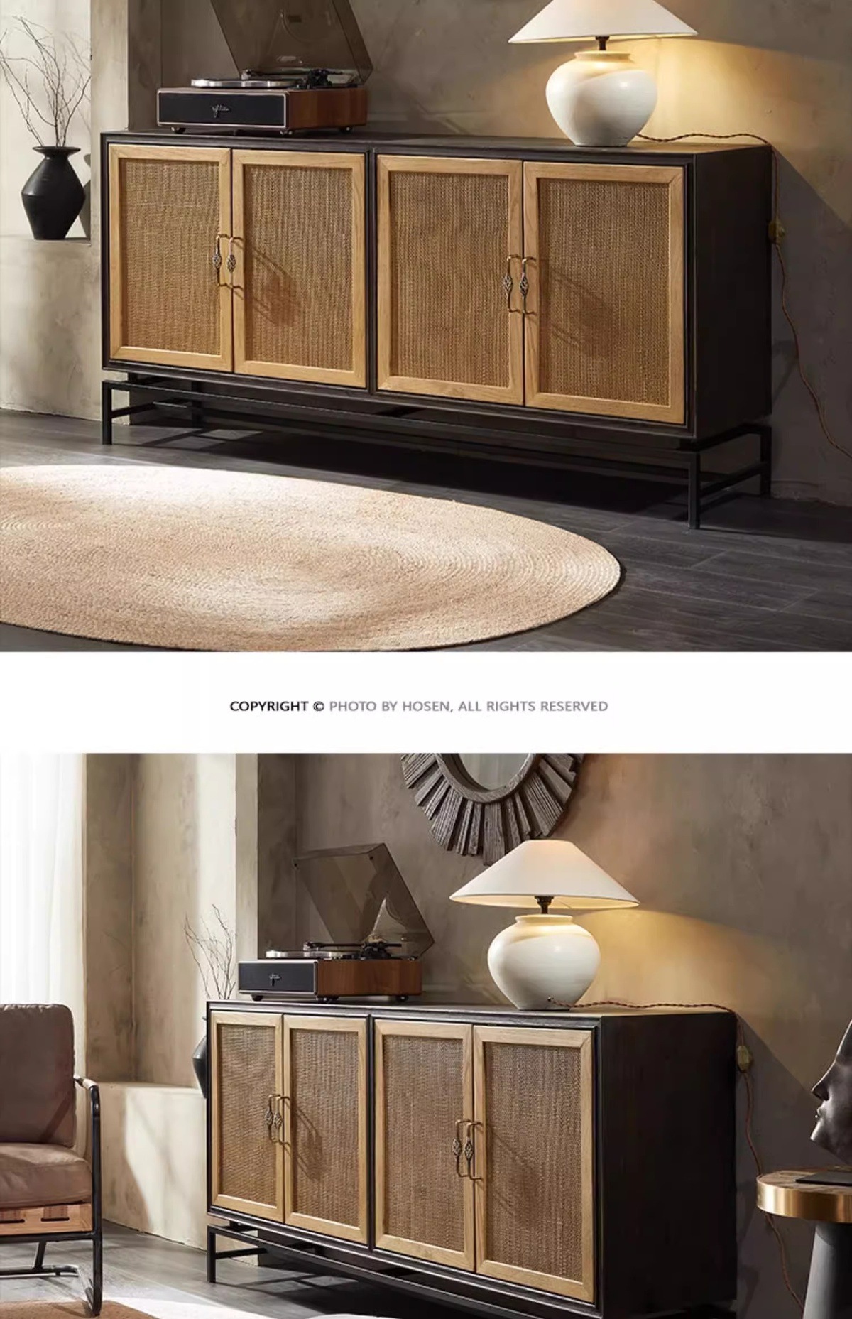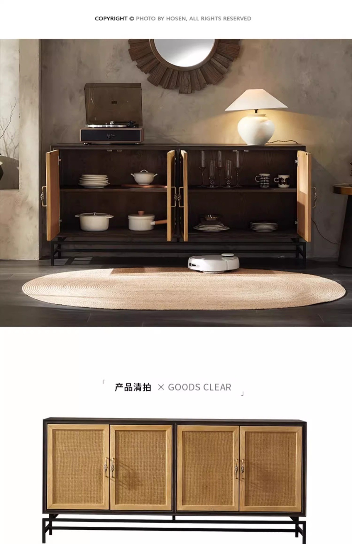 와비사비 스타일 복고풍 단단한 나무 찬장 디자이너 B&B 주방 보관 캐비닛 중고 호텔 라이트 럭셔리 등나무 와인 캐비닛스토어 가기