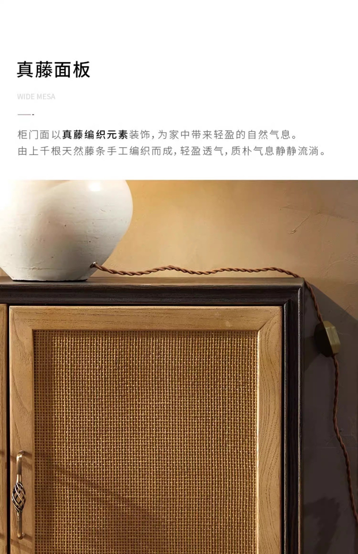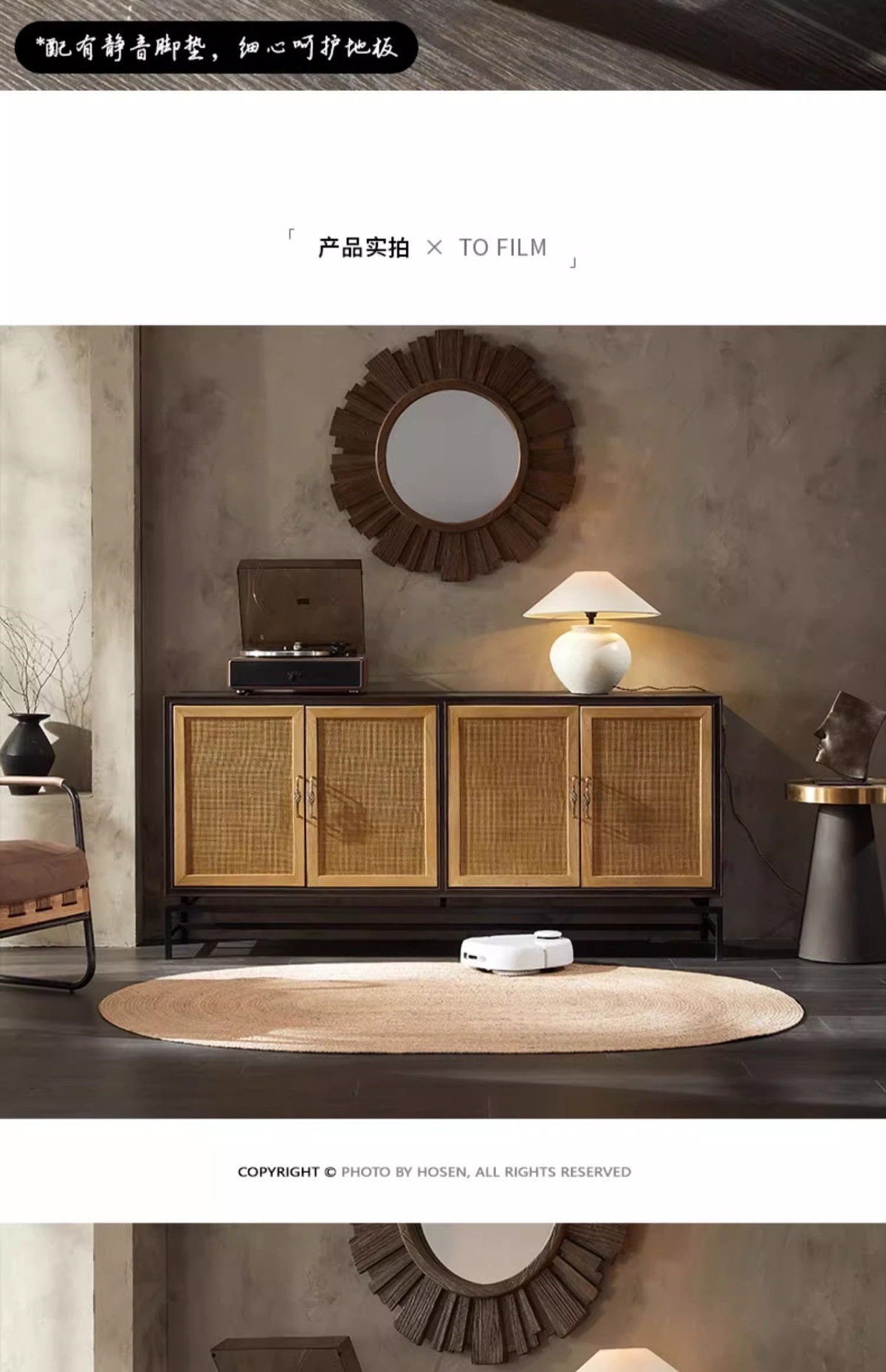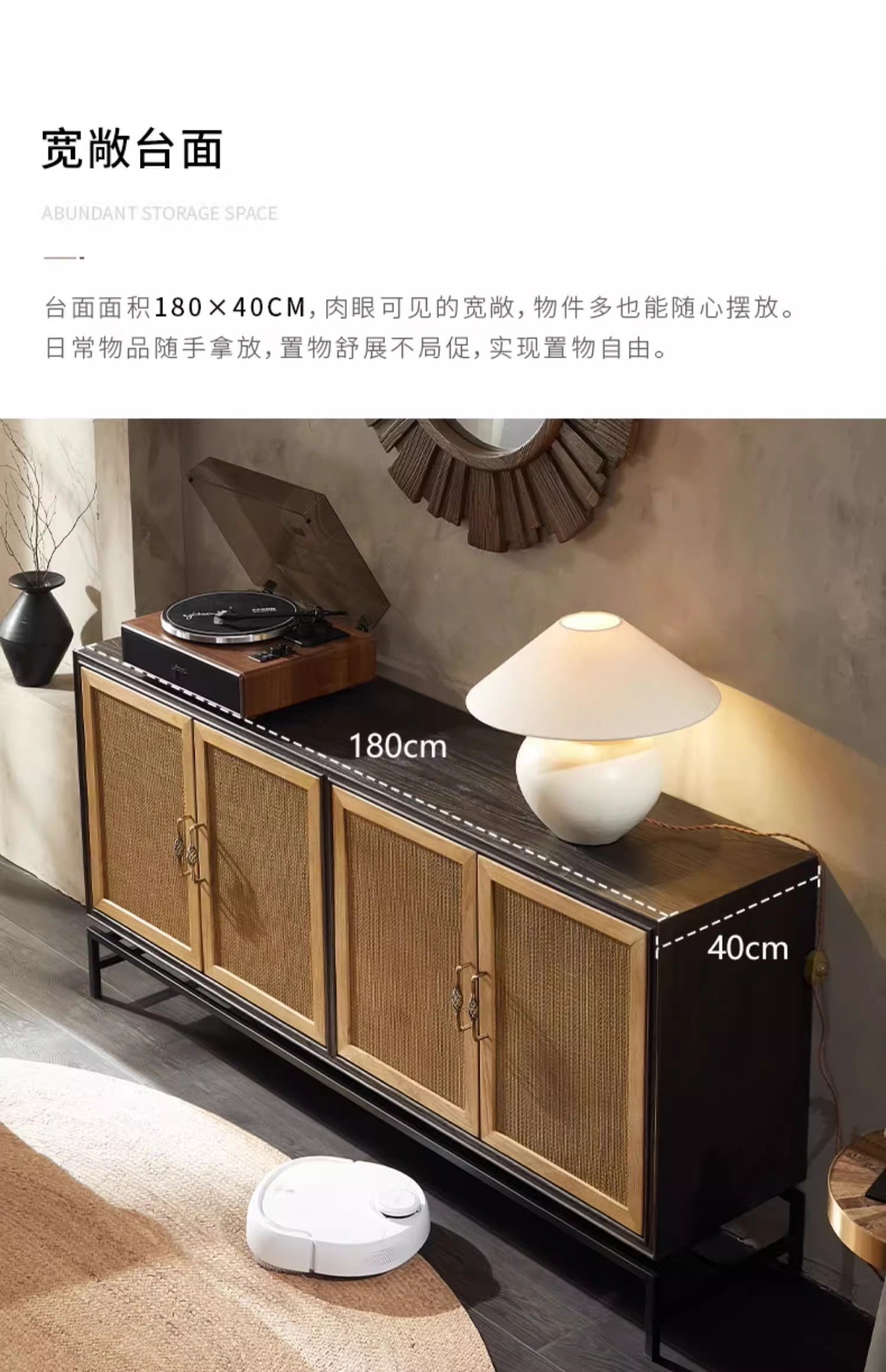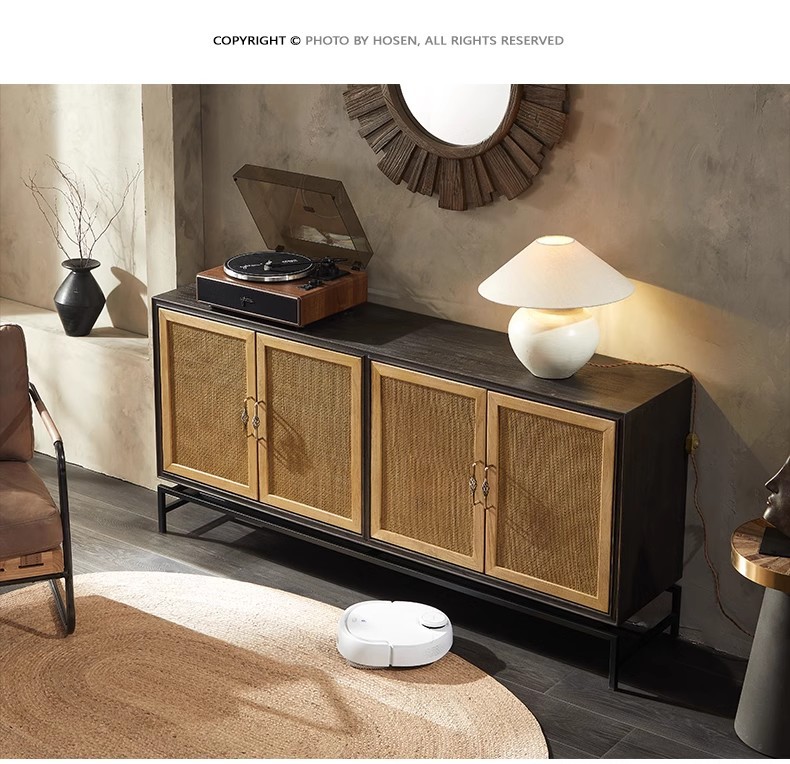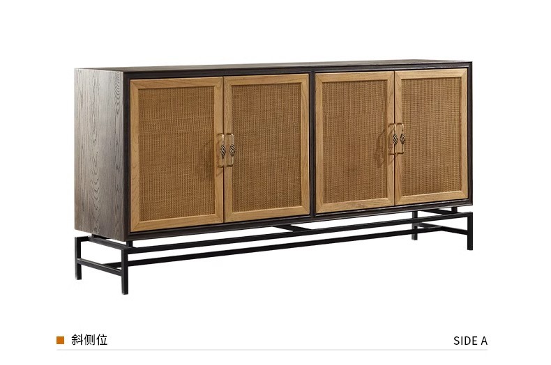 와비사비 스타일 복고풍 단단한 나무 찬장 디자이너 B&B 주방 보관 캐비닛 중고 호텔 라이트 럭셔리 등나무 와인 캐비닛스토어 가기