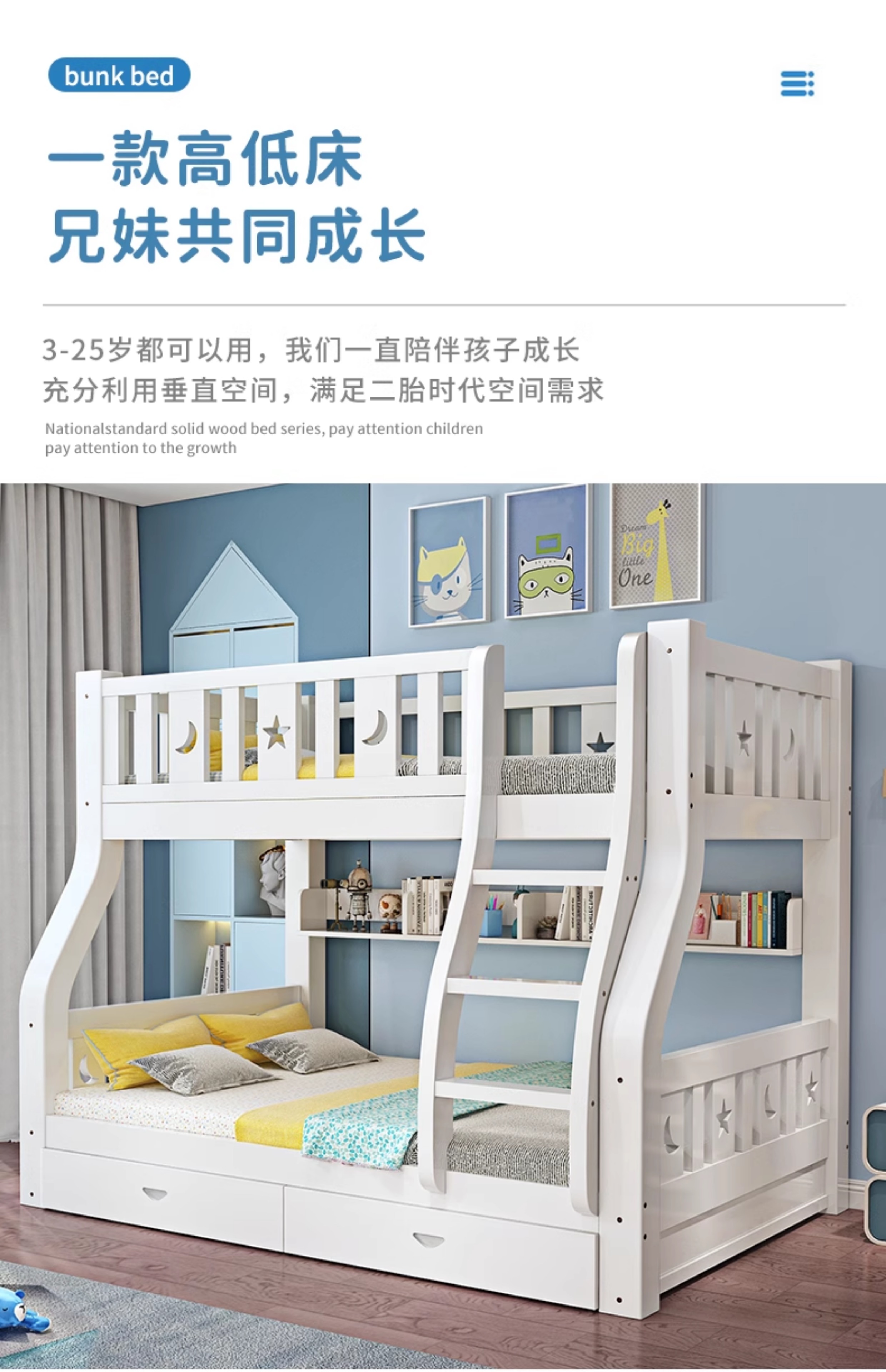 성인과 어린이를 위한 원목 이층침대, 다기능 이층침대, 높낮이 이층침대, 이층침대스토어 가기