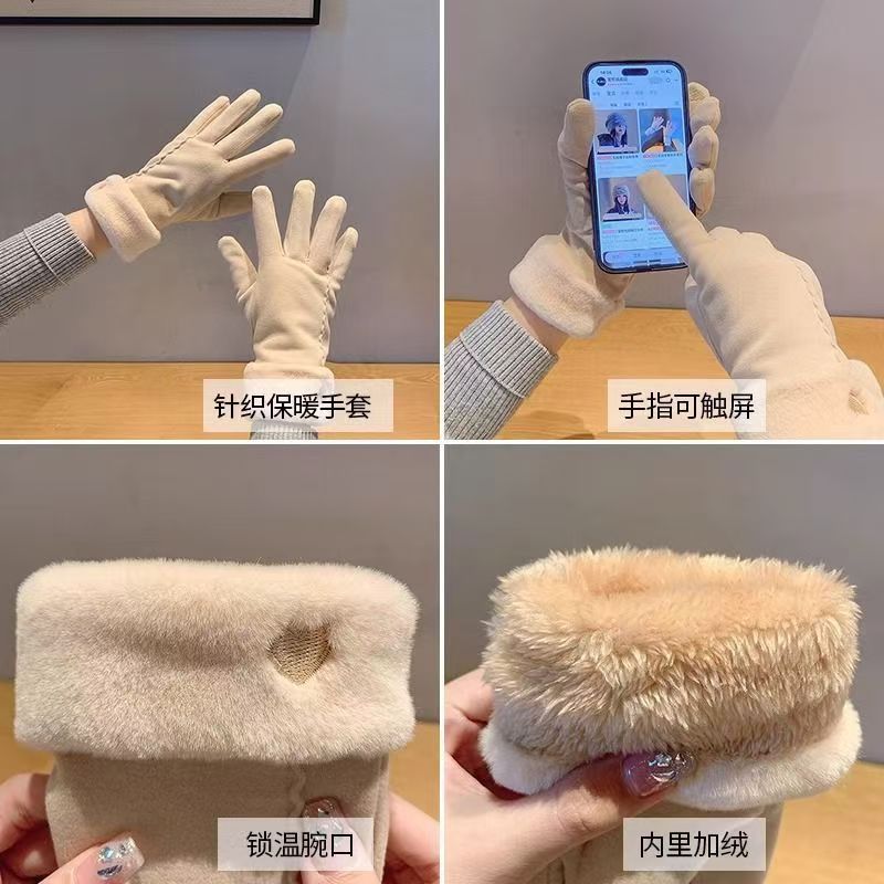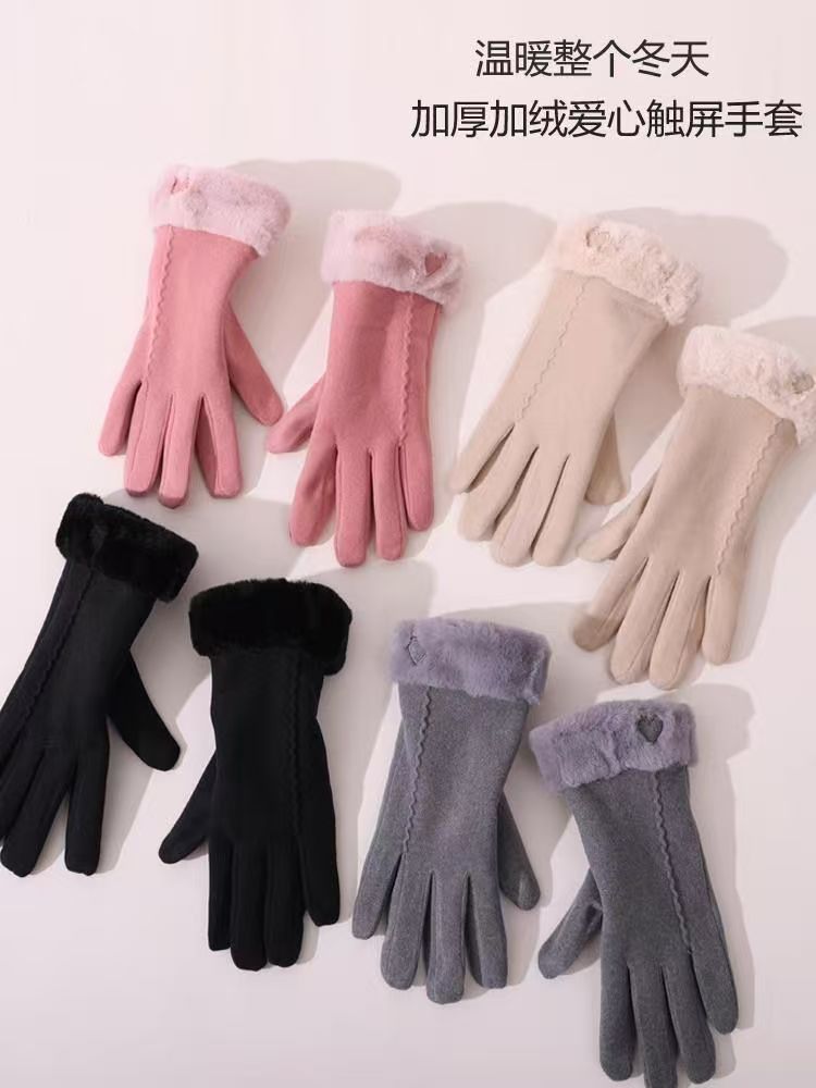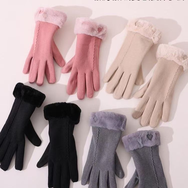 여성용 신상 겨울장갑, 방한, 방풍, 보온, 벨벳, 두꺼워진 터치스크린, 사이클링, 멋스럽고 귀여운 복숭아 하트 트렌디 스타일스토어 가기