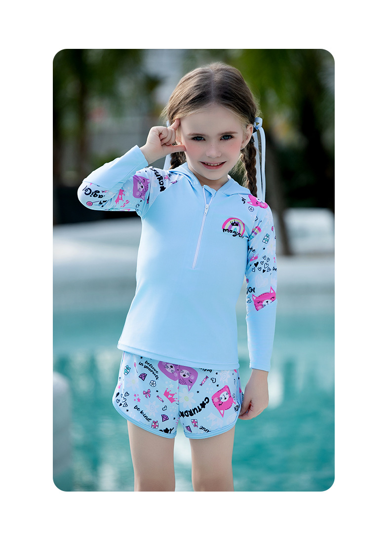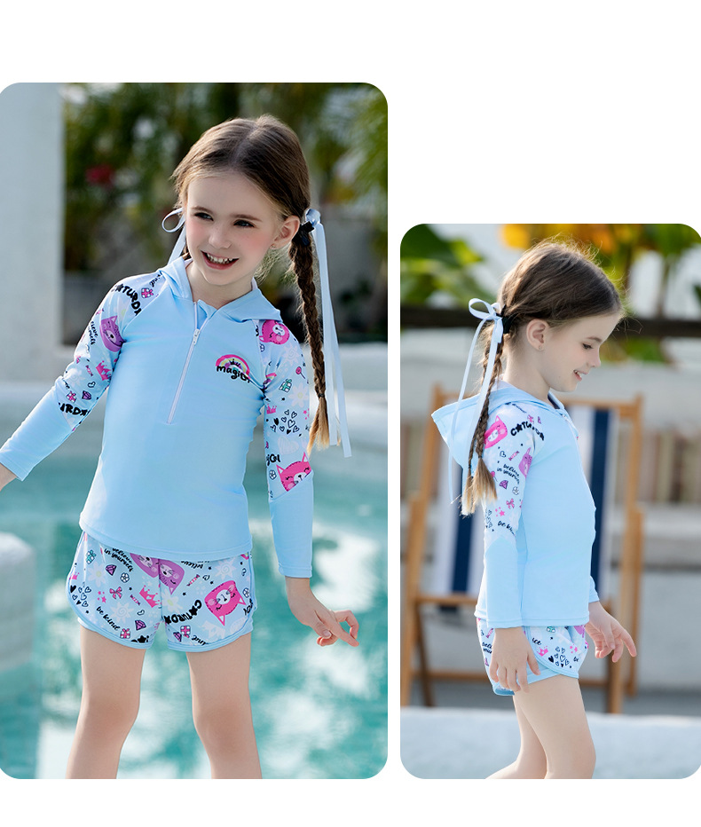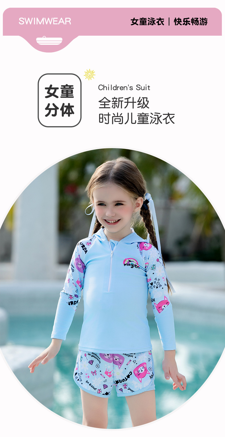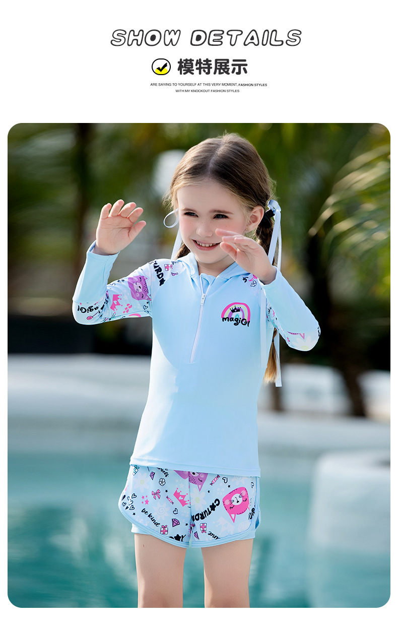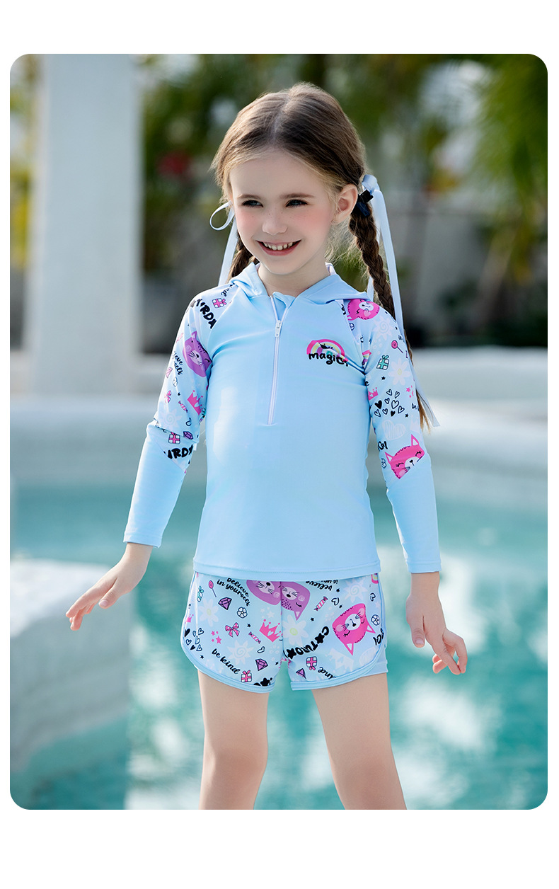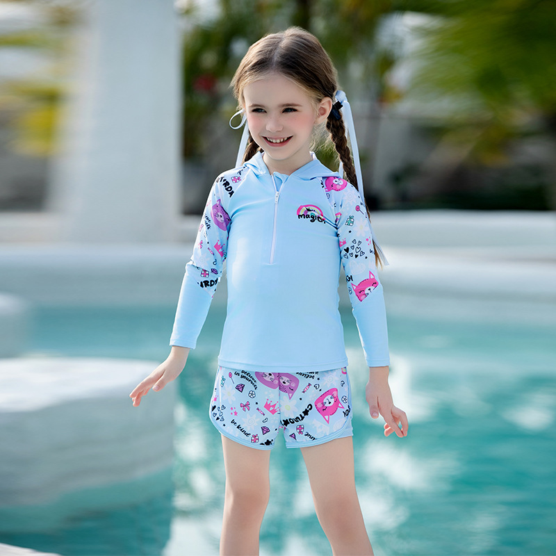 어린이 수영복, 여아, 중대형 어린이 원피스 자외선 차단 속건 잠수복, 여아, 학생 귀여운 수영복 세트