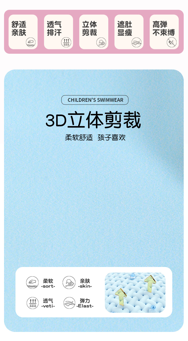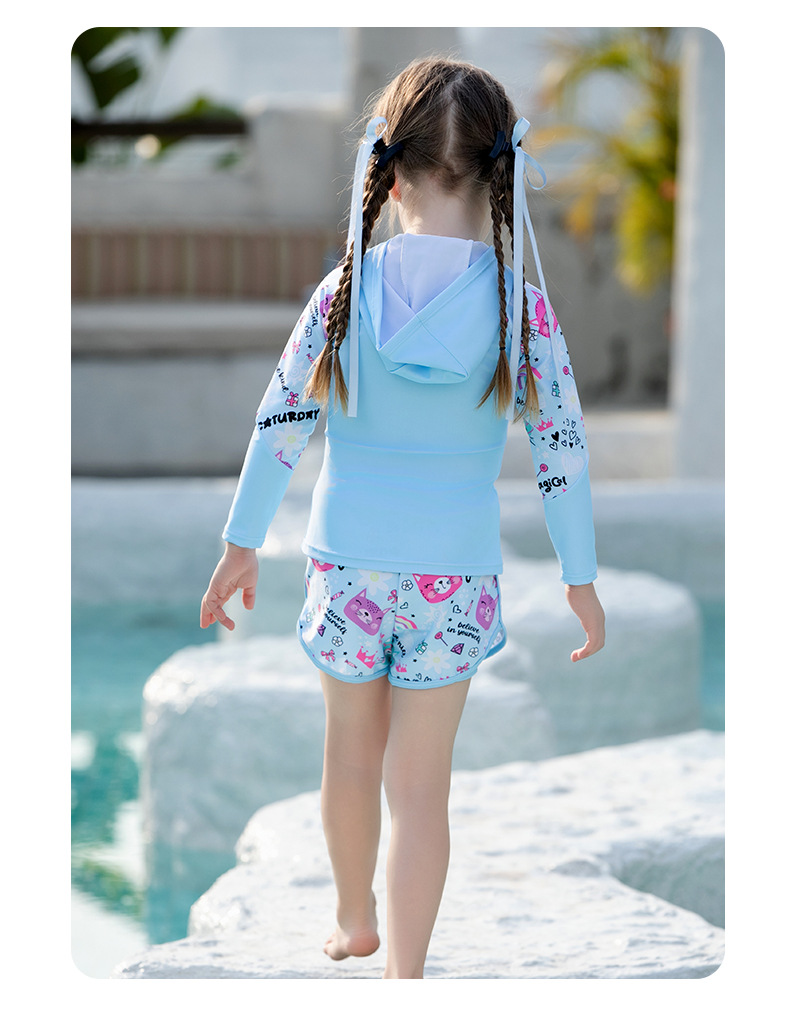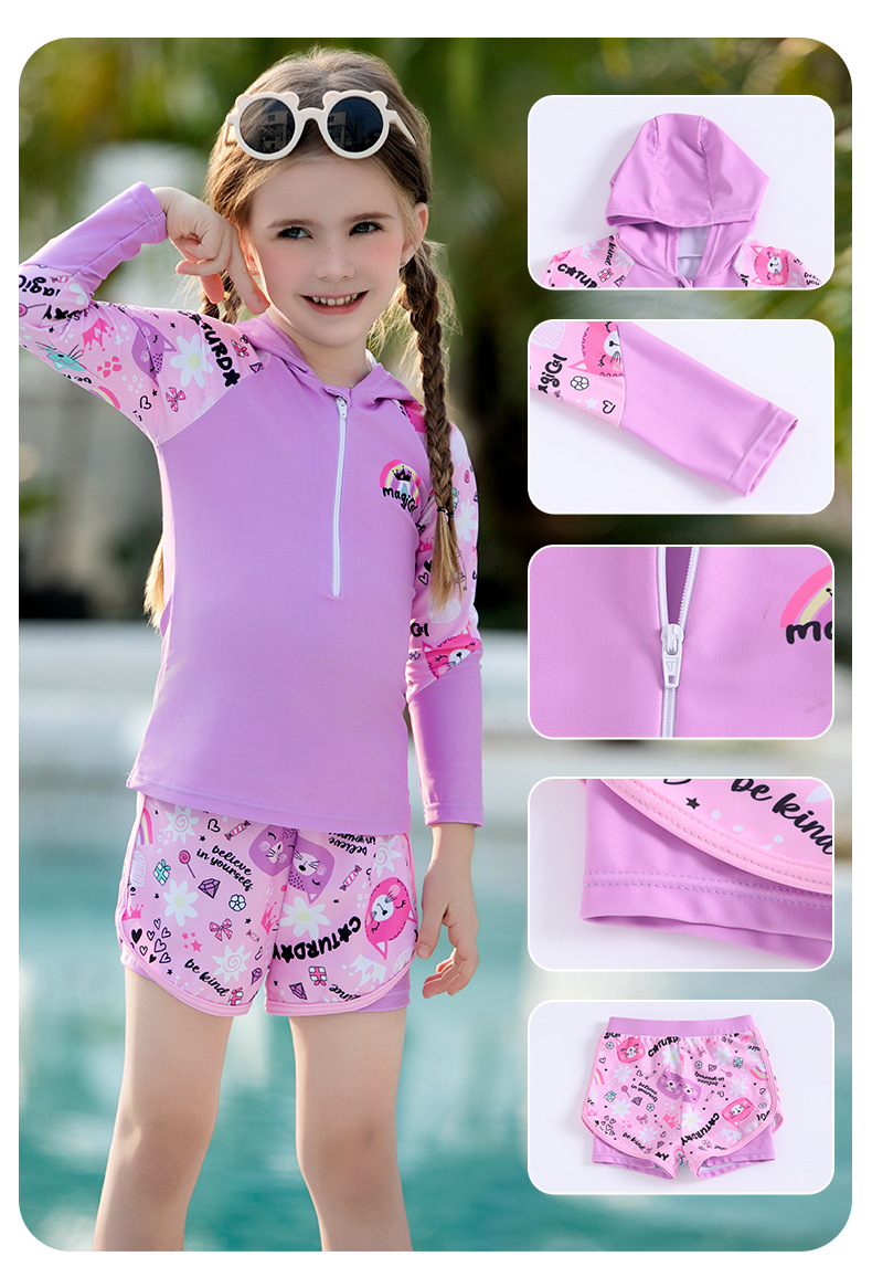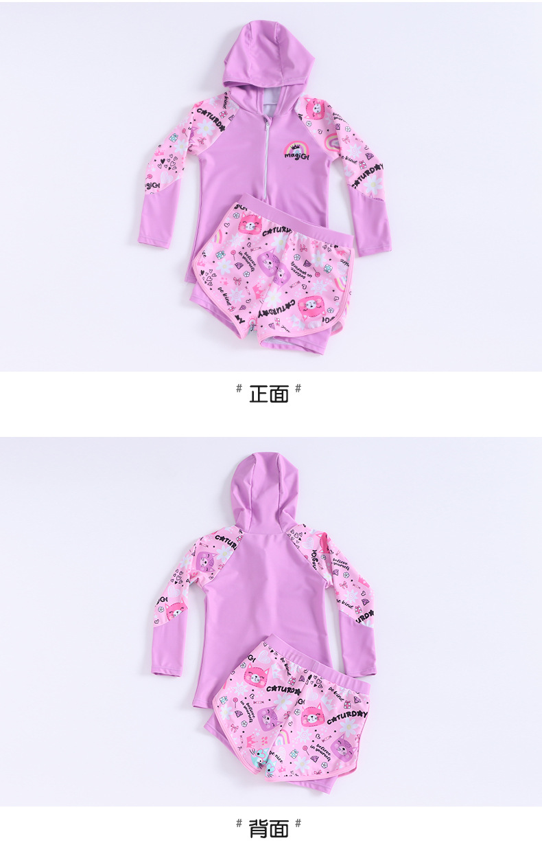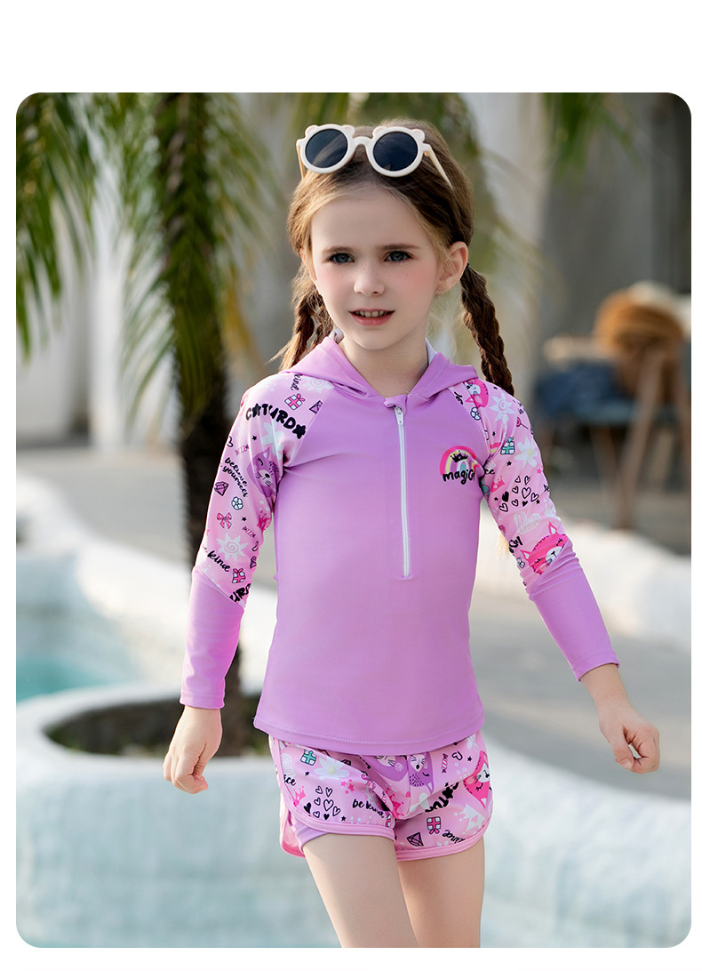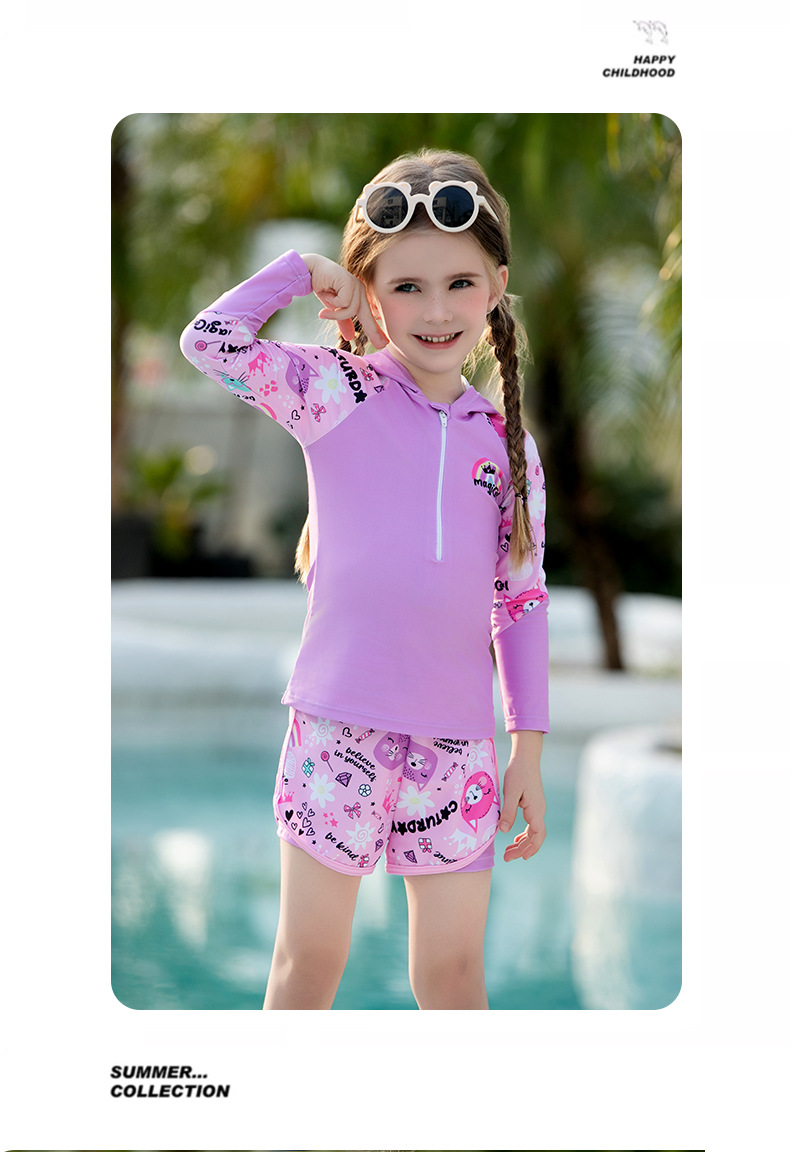 어린이 수영복, 여아, 중대형 어린이 원피스 자외선 차단 속건 잠수복, 여아, 학생 귀여운 수영복 세트