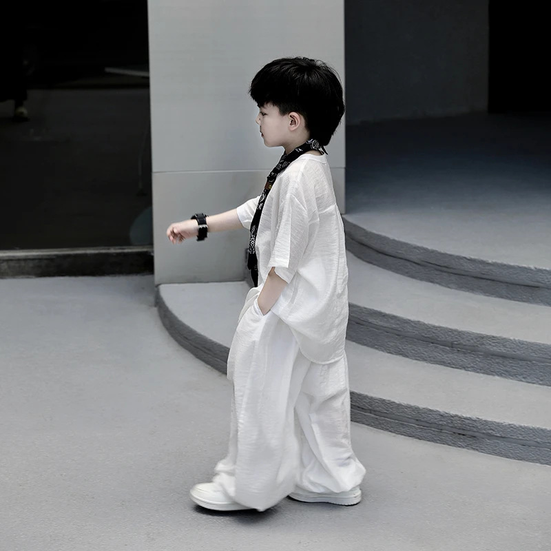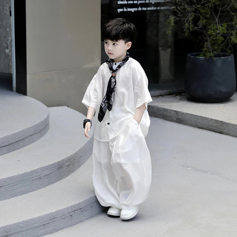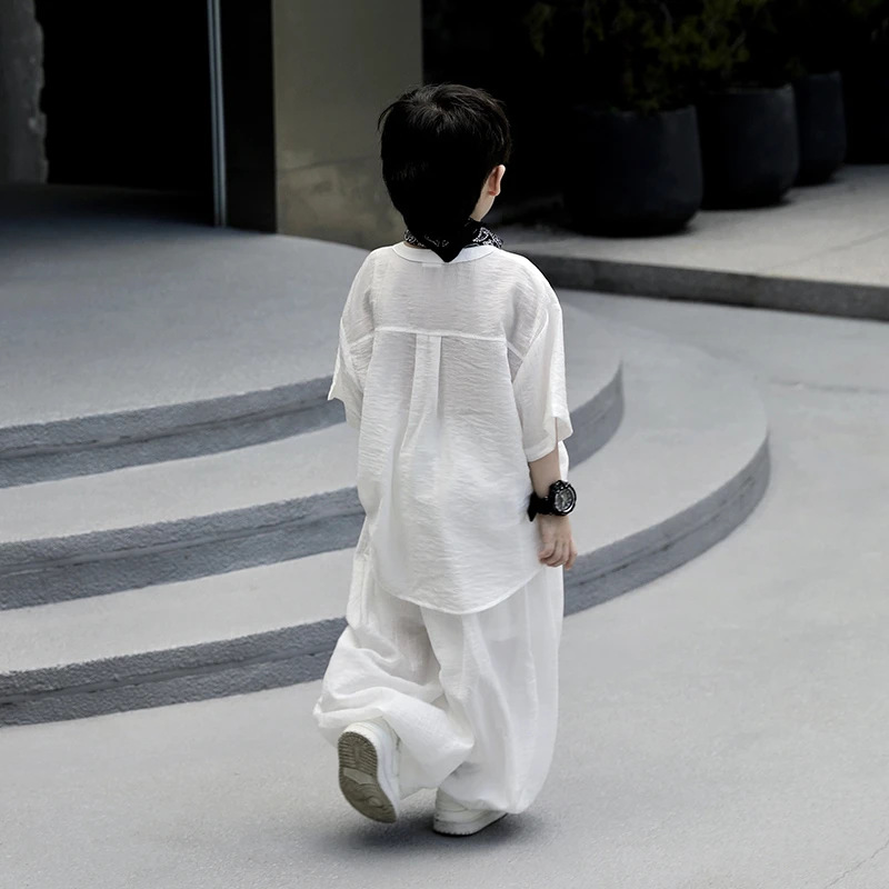 소년 여름 반팔 얇은 통기성 셔츠 정장 2025 새로운 어린이 여름 투피스 세트 중대형 아동복스토어 가기