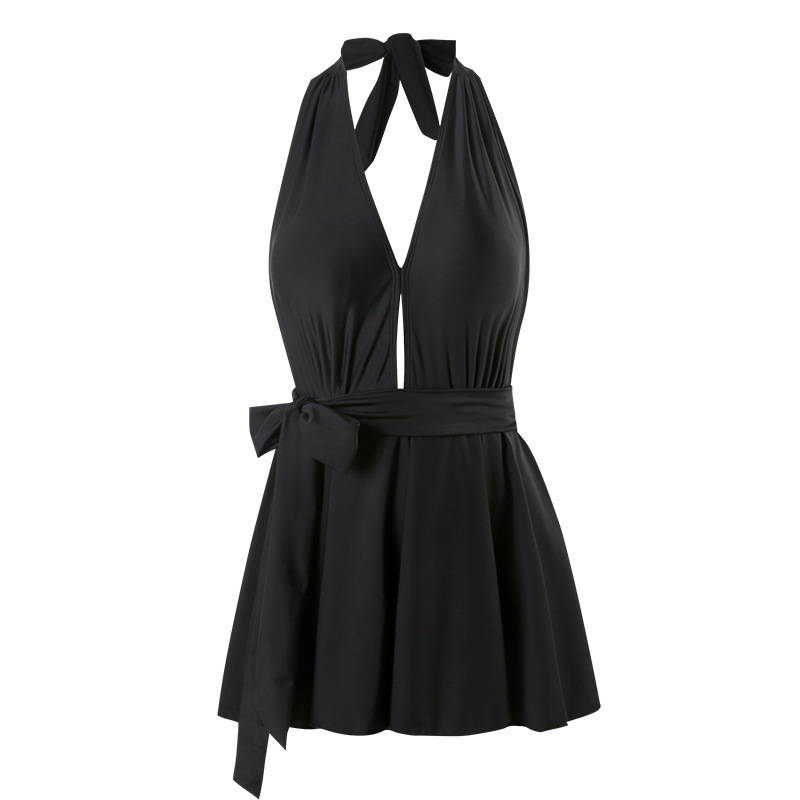 复古性感露背连体裙款游泳衣女 厂家韩国ins风温泉度假泳装