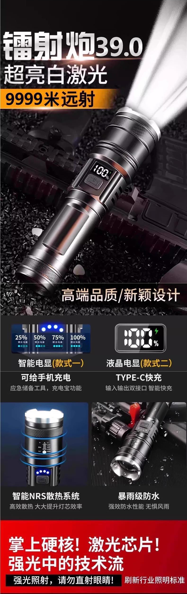 강한 빛 손전등 야외 손전등 레이저 장거리 장거리 야외 내구성 작은 손전등 도매스토어 가기
